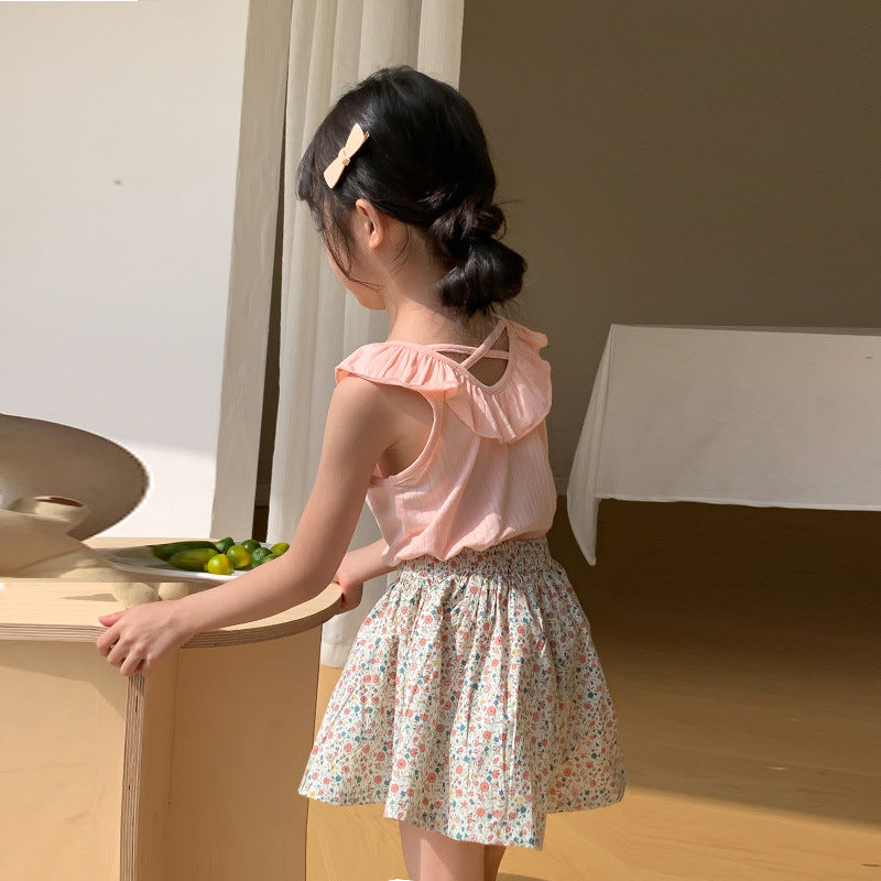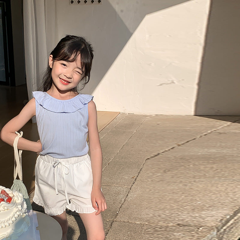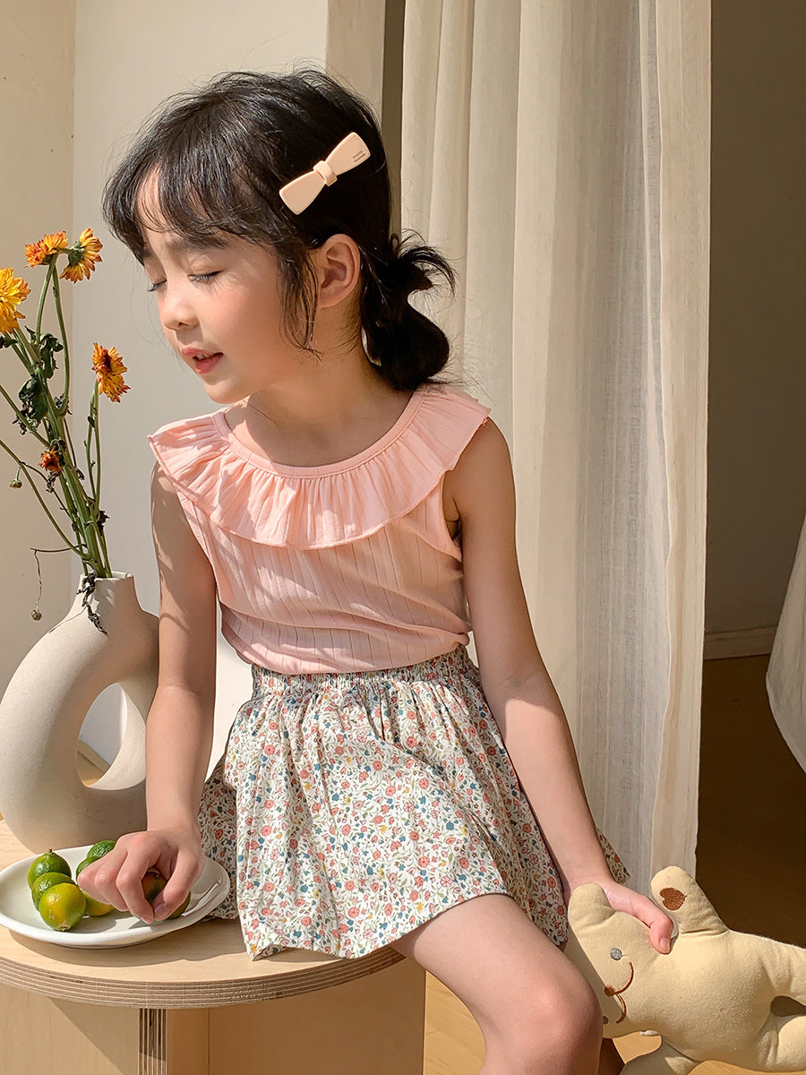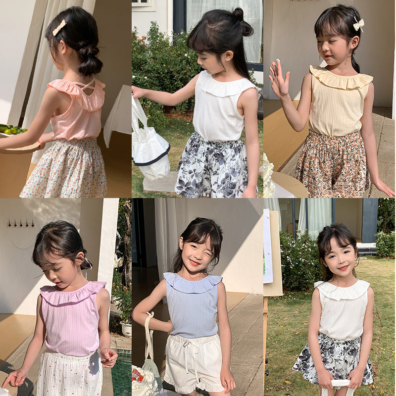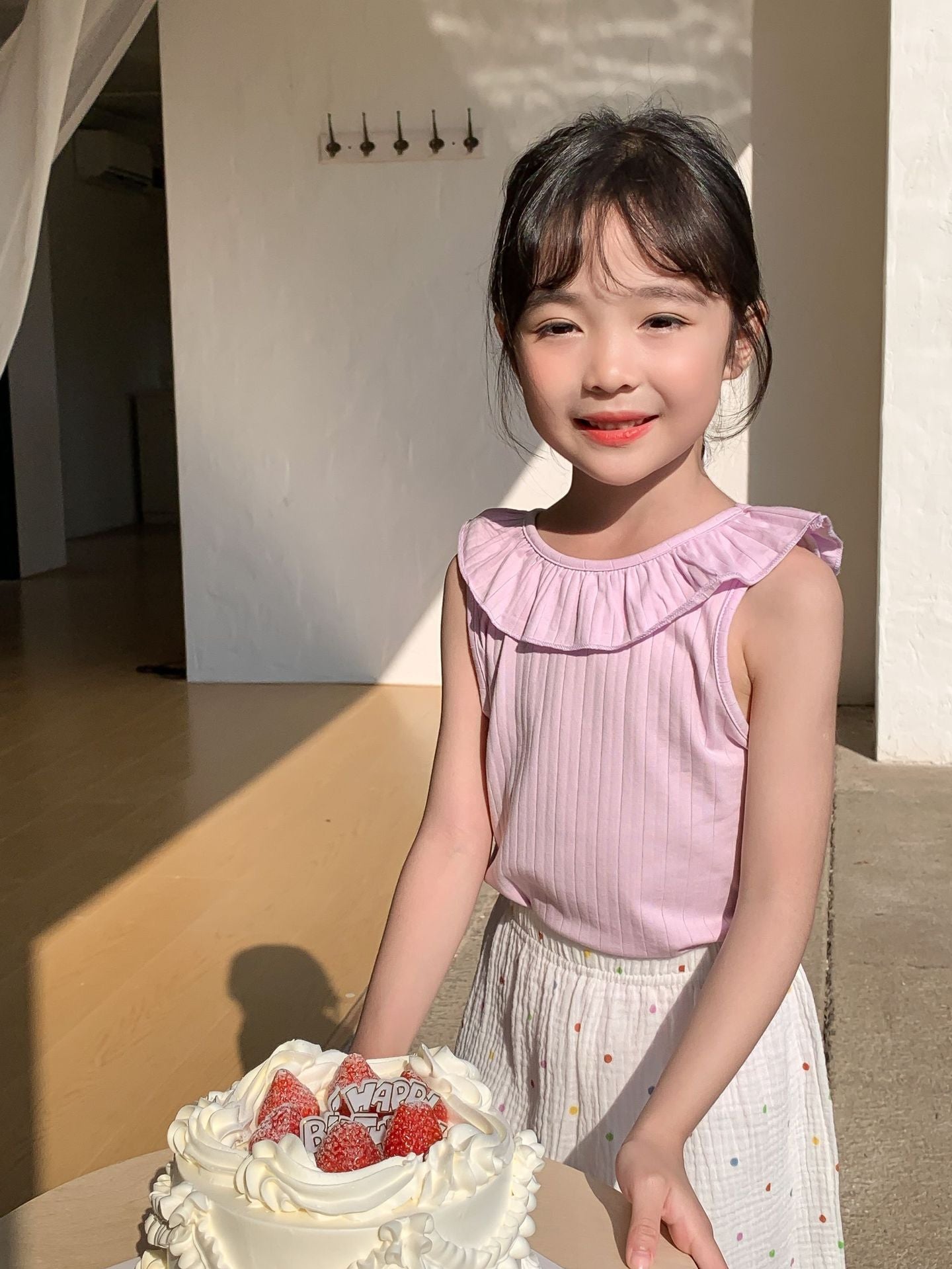 J24022915 ins夏季2-7女童短袖t卹兒童寶寶百搭糖果娃娃翻領打底衫短袖外貿