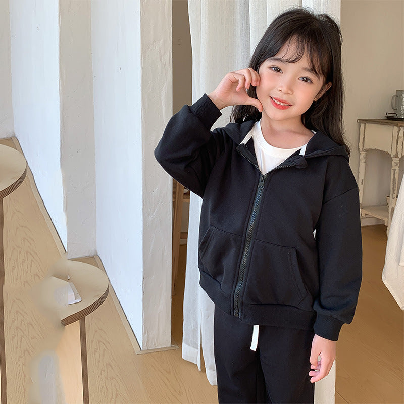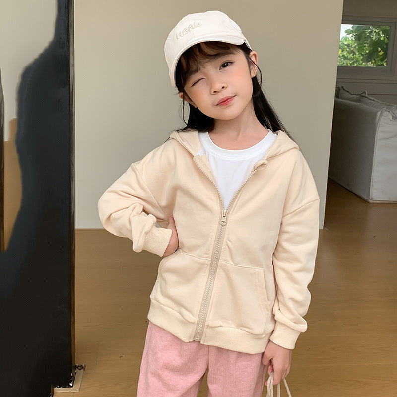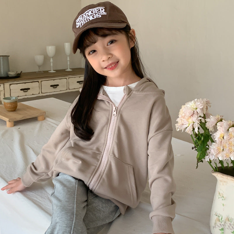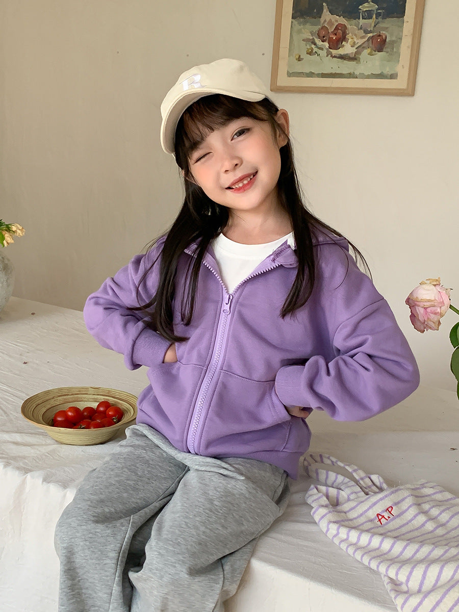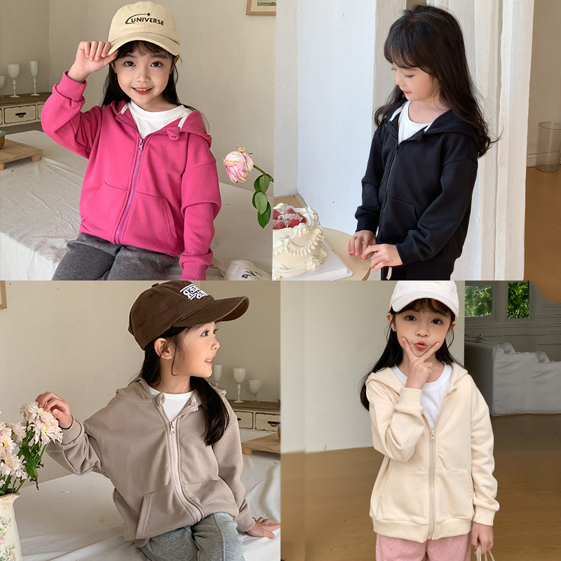 J24022917韓版童裝連帽衛衣2024春季兒童洋氣拉鍊棉開襟衫男女孩休閒外套上衣