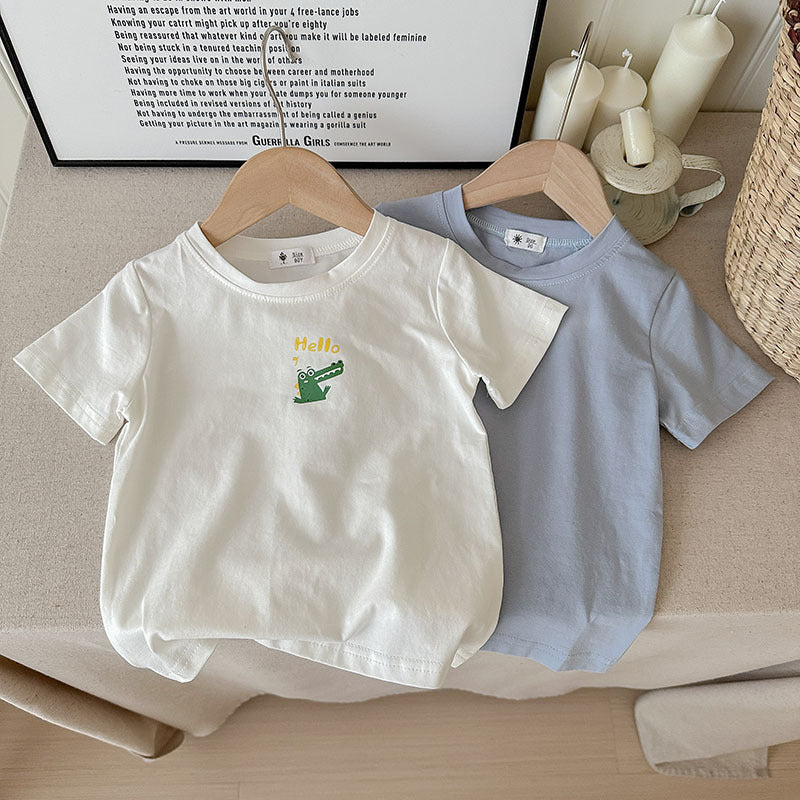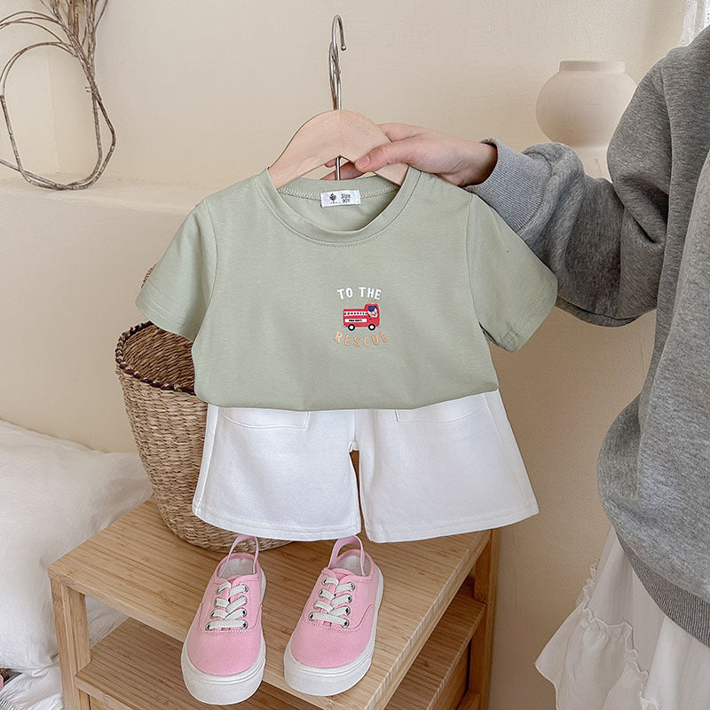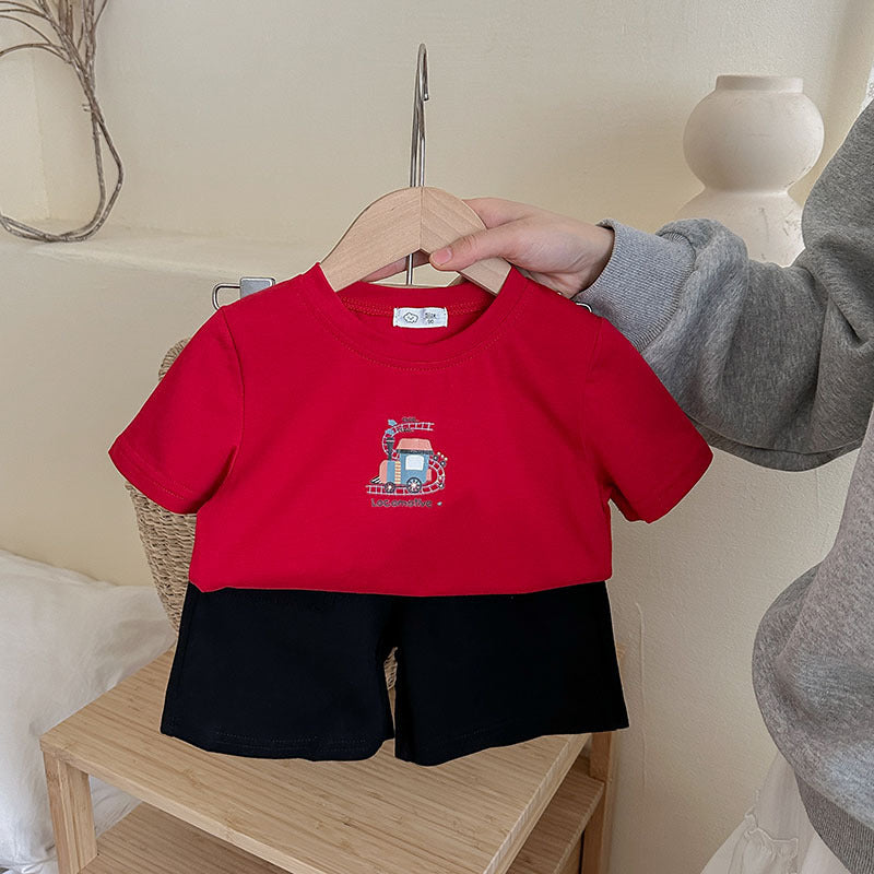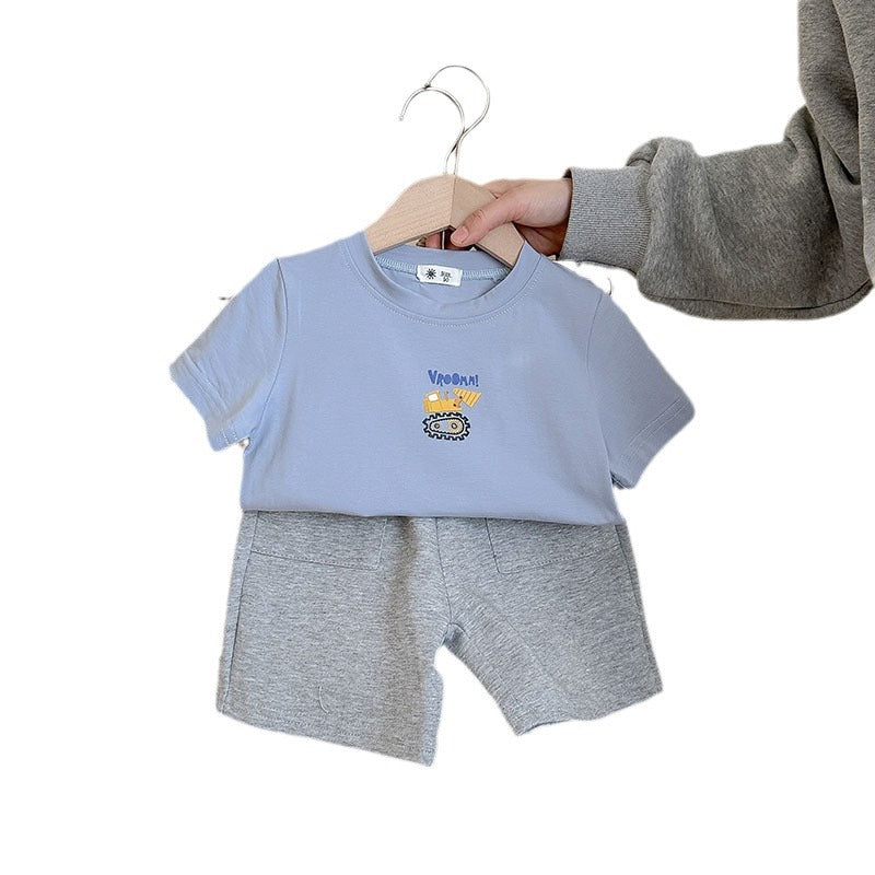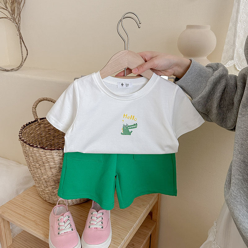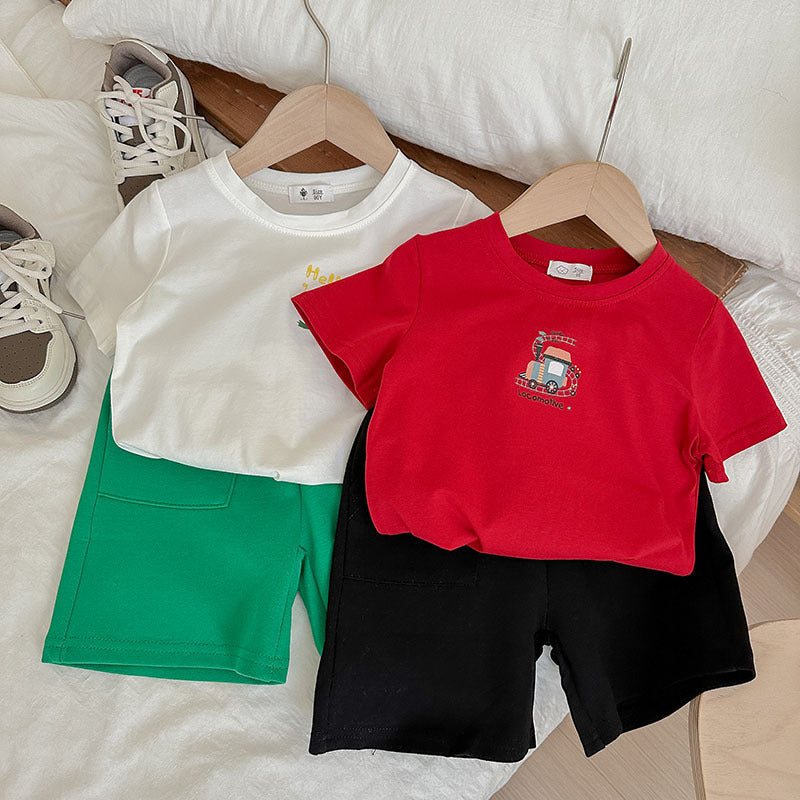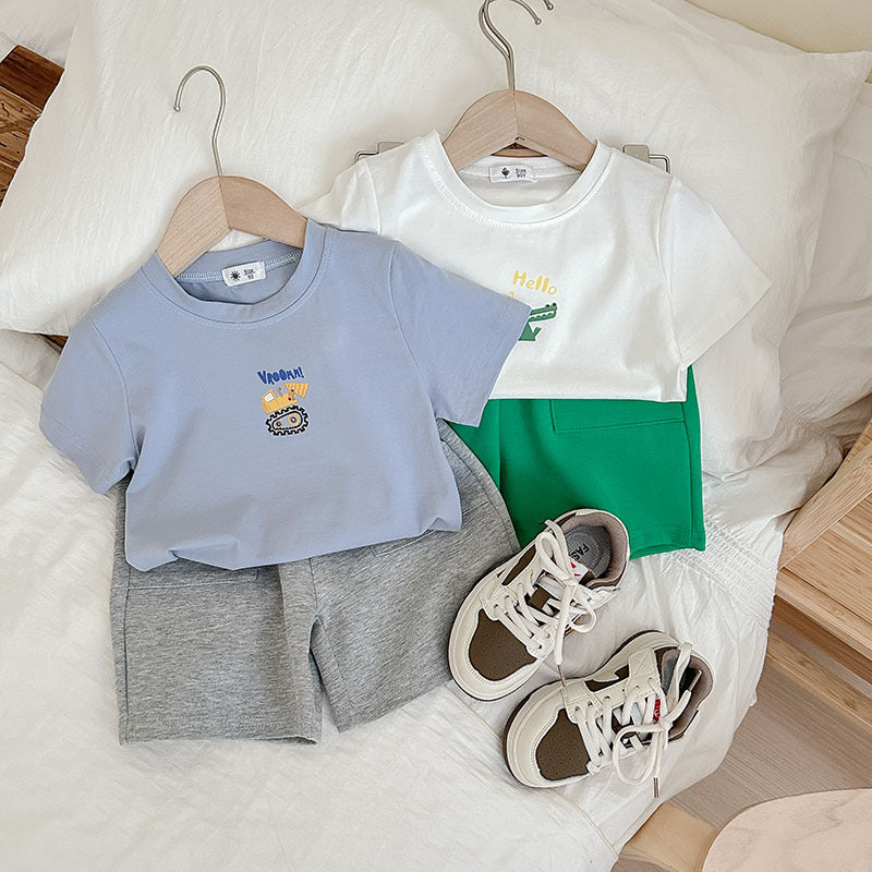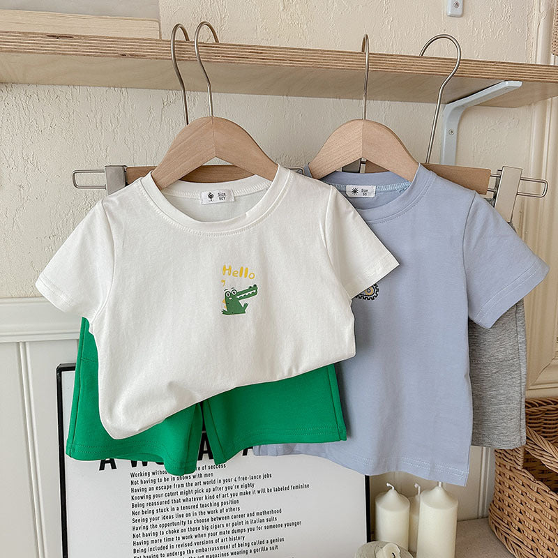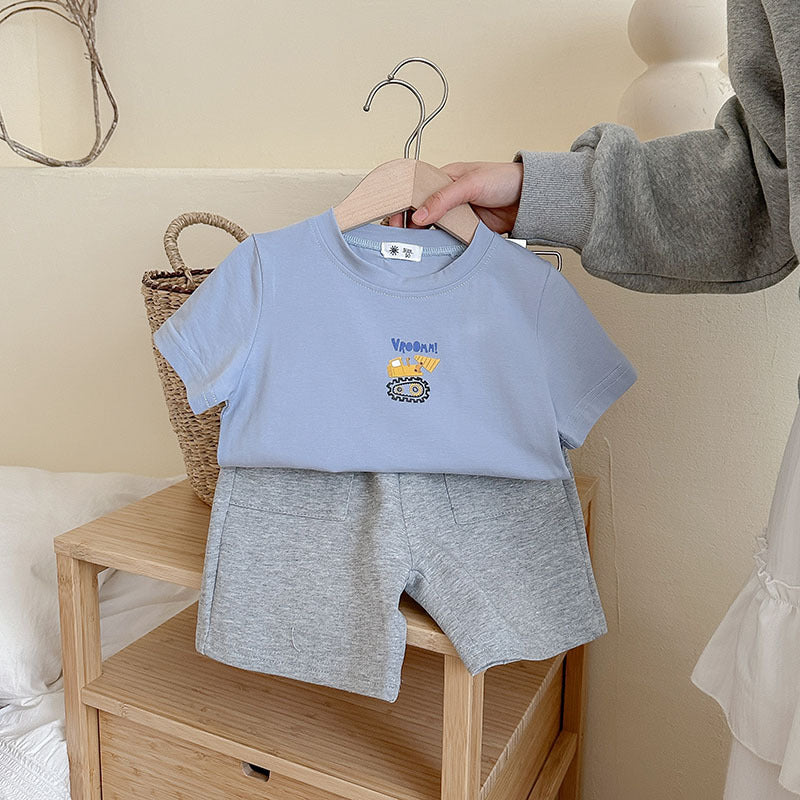 J24022918韓版童裝新款跨國電商外貿夏季男童卡通印花圓領T恤+褲子兩件套