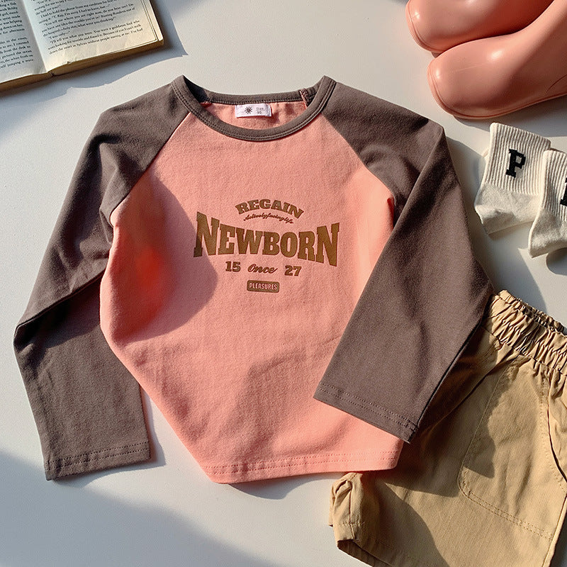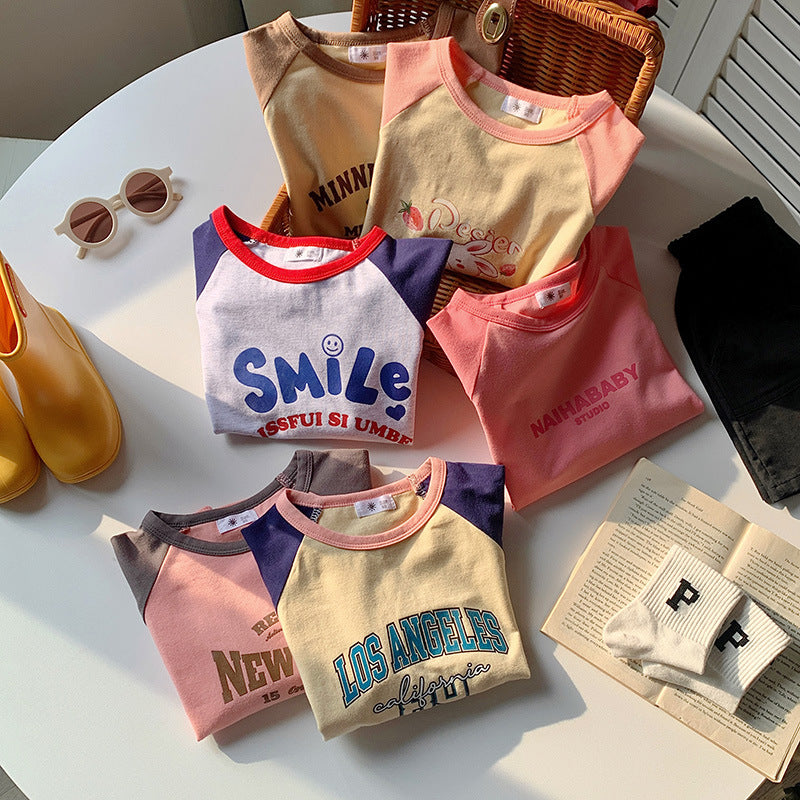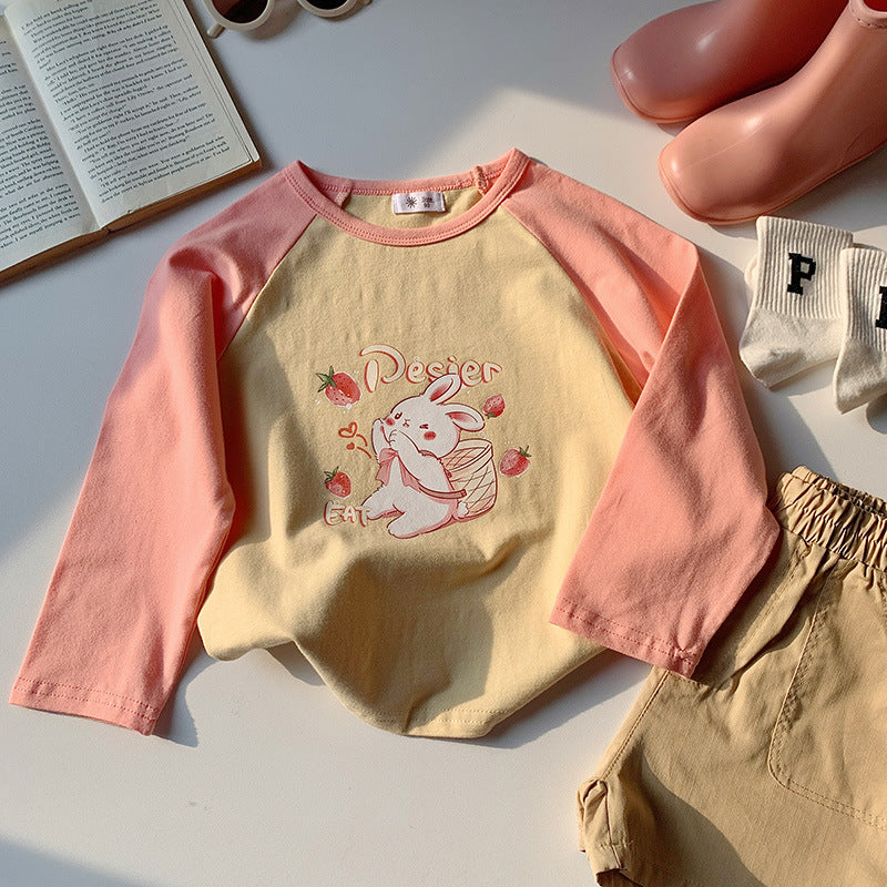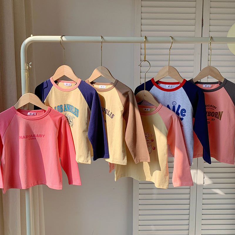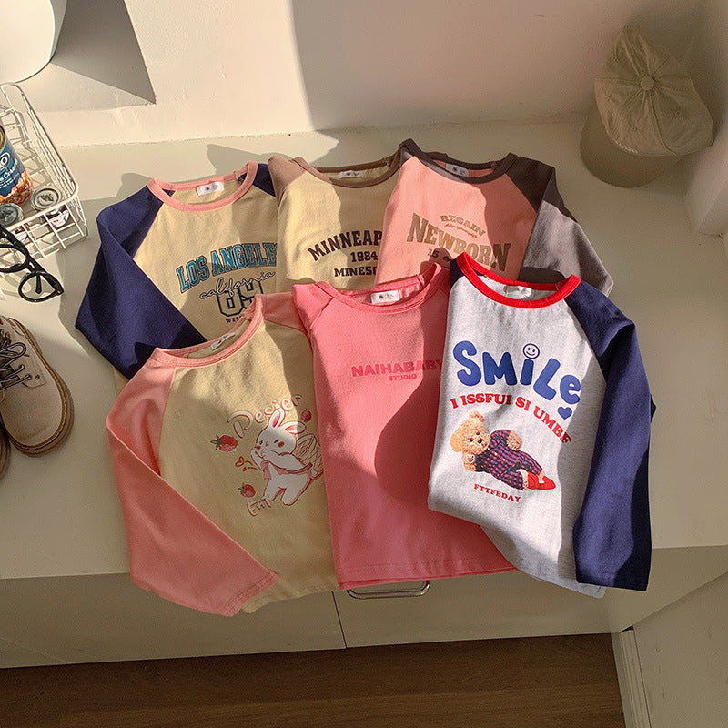 J24022921童裝2024春款男女童T長恤袖打底衫撞色卡通上衣外貿專供