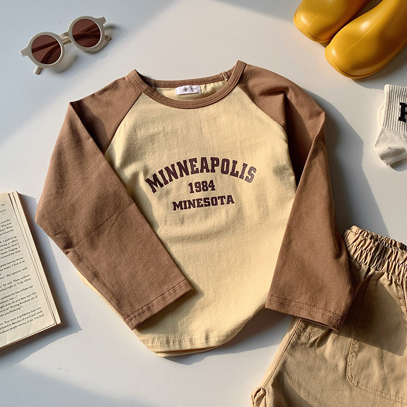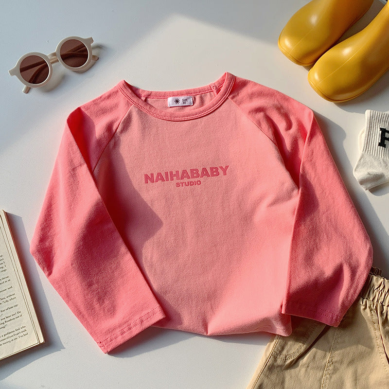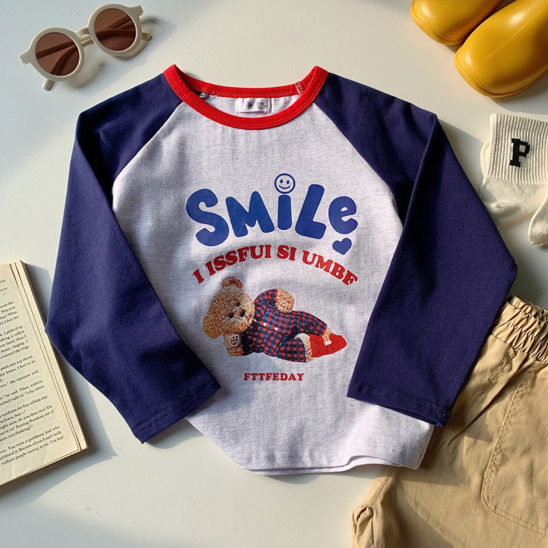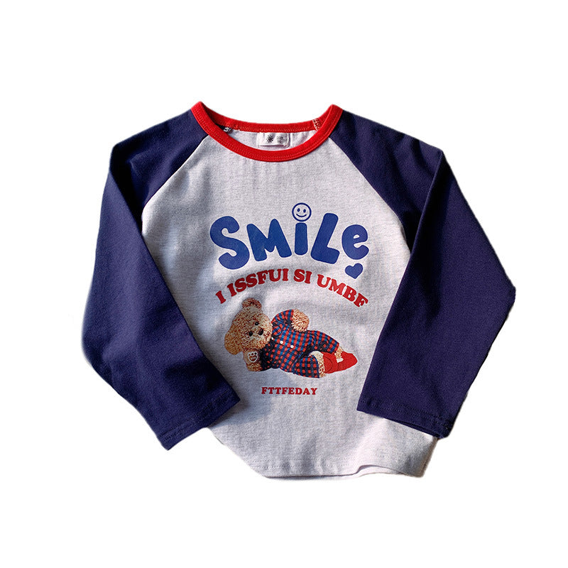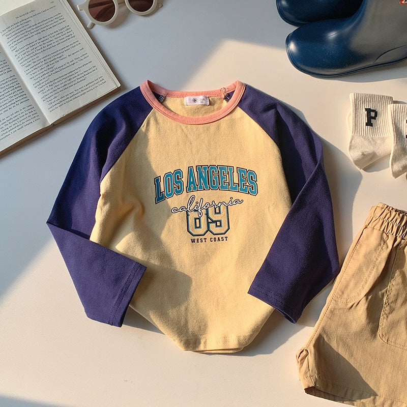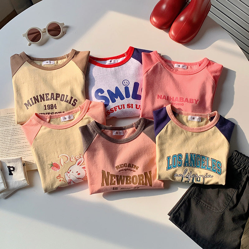 J24022921童裝2024春款男女童T長恤袖打底衫撞色卡通上衣外貿專供