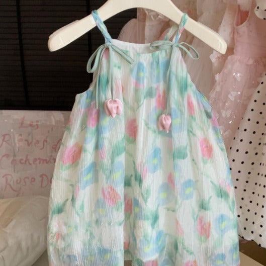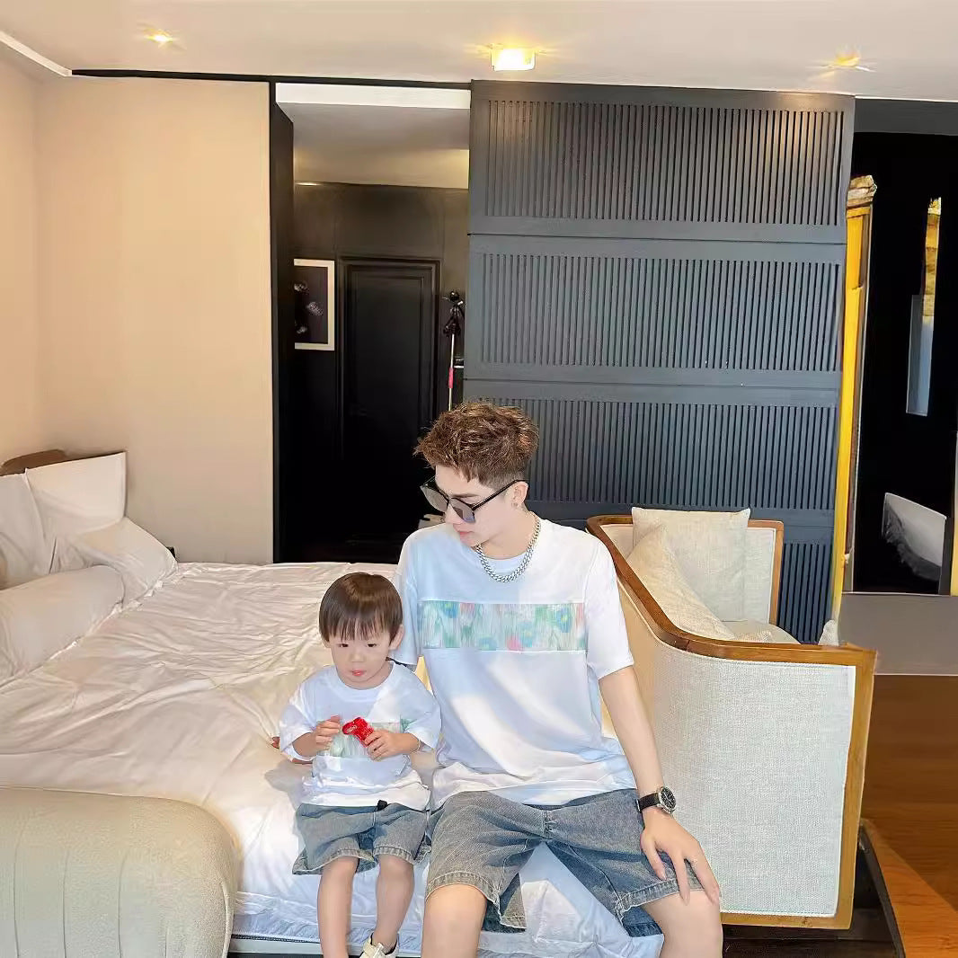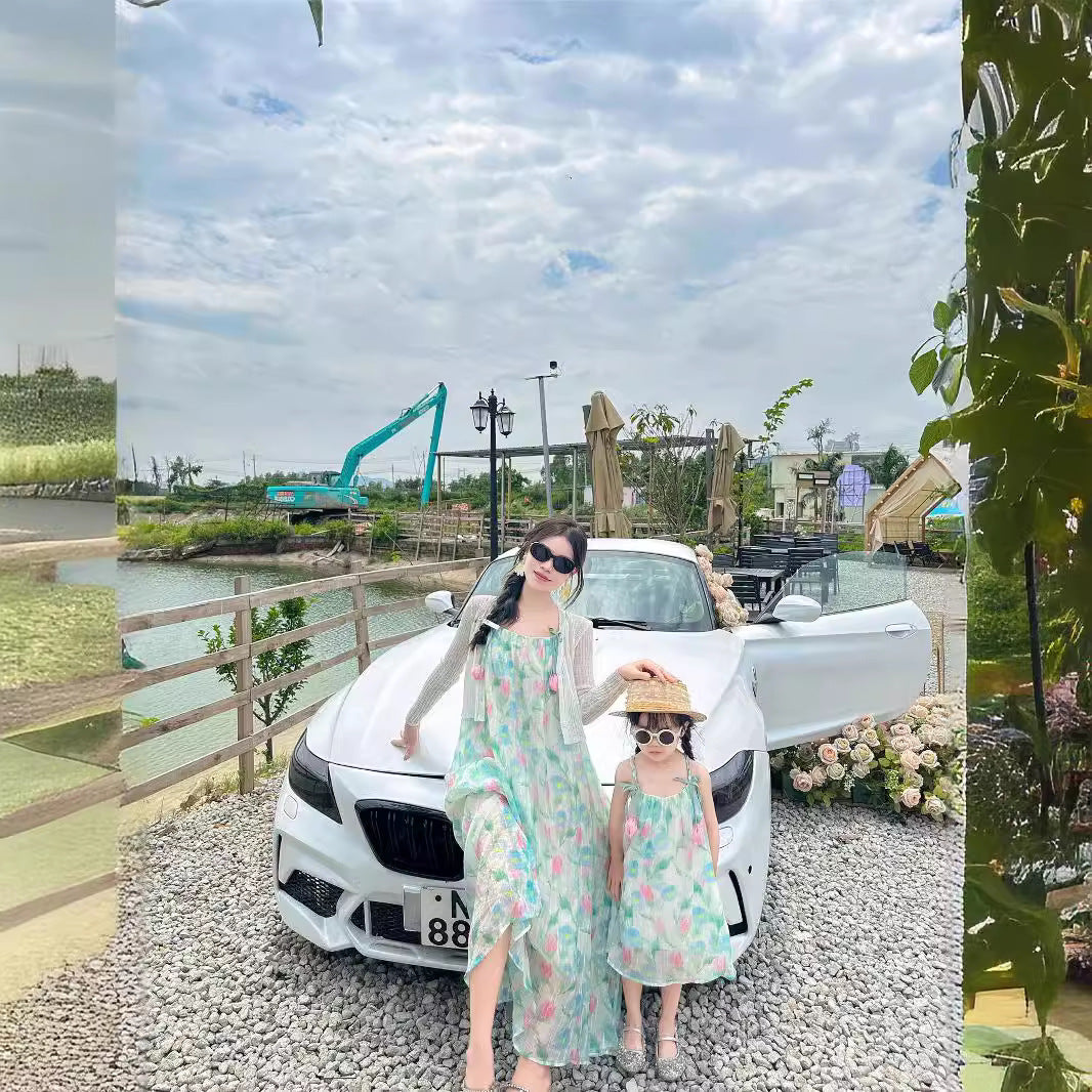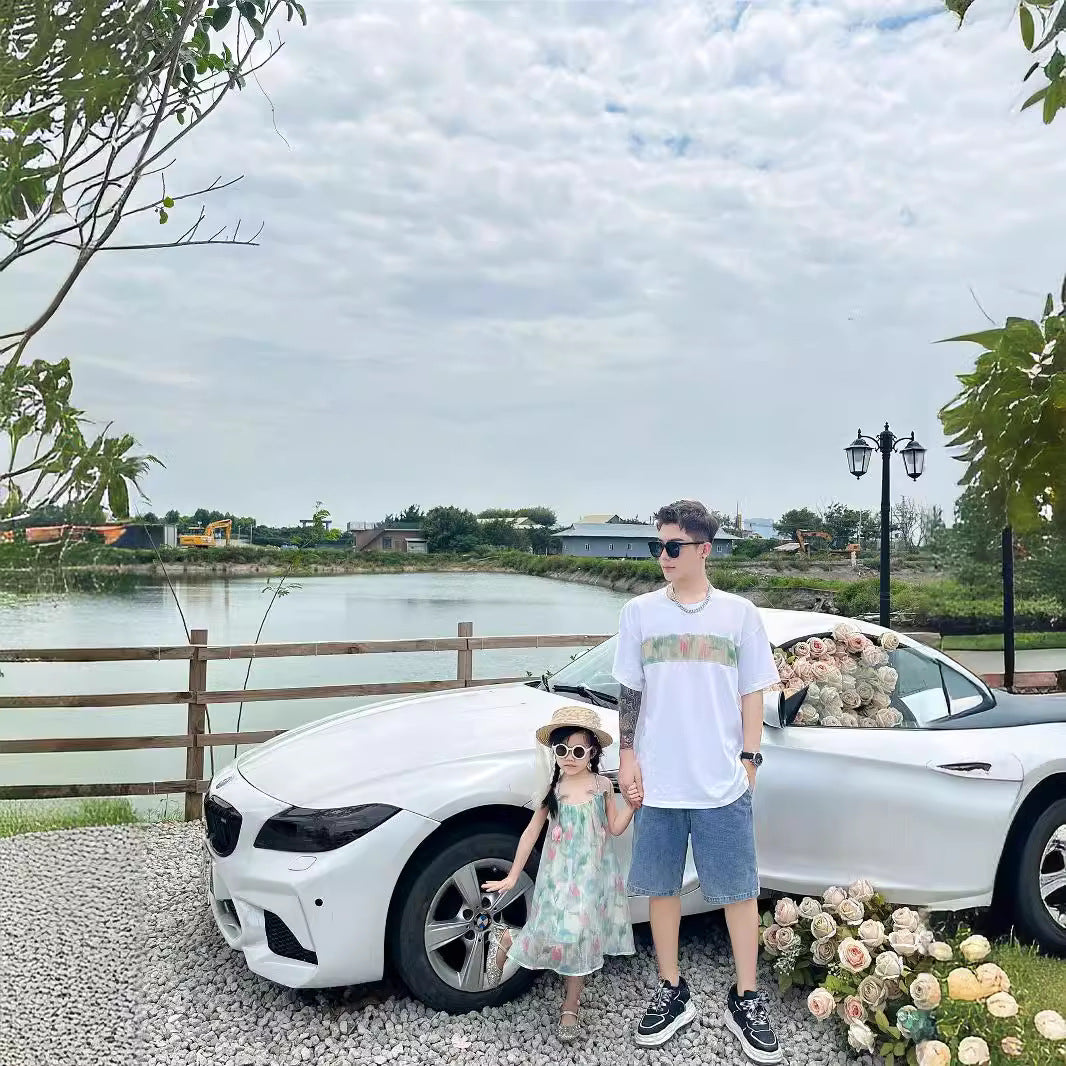 L24071401親子裝夏裝一家三口海濱度假全家裝T恤母女紅吊帶洋氣公主裙潮