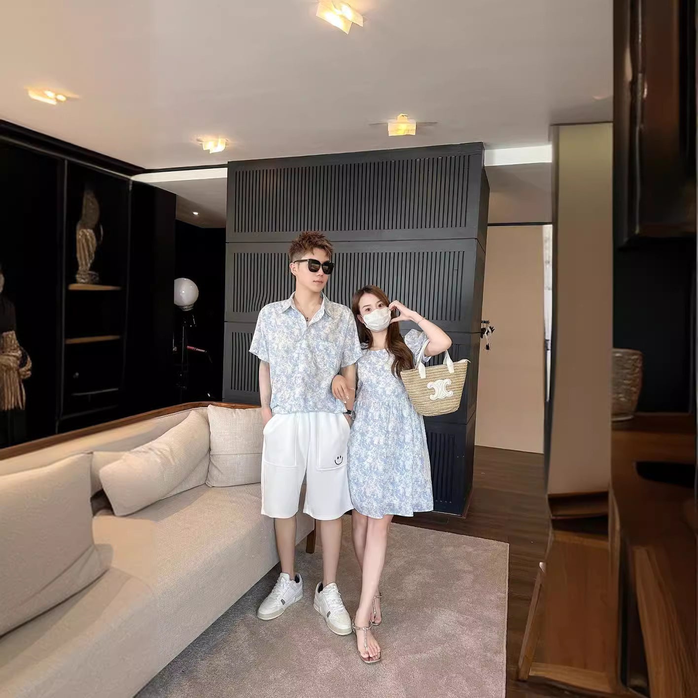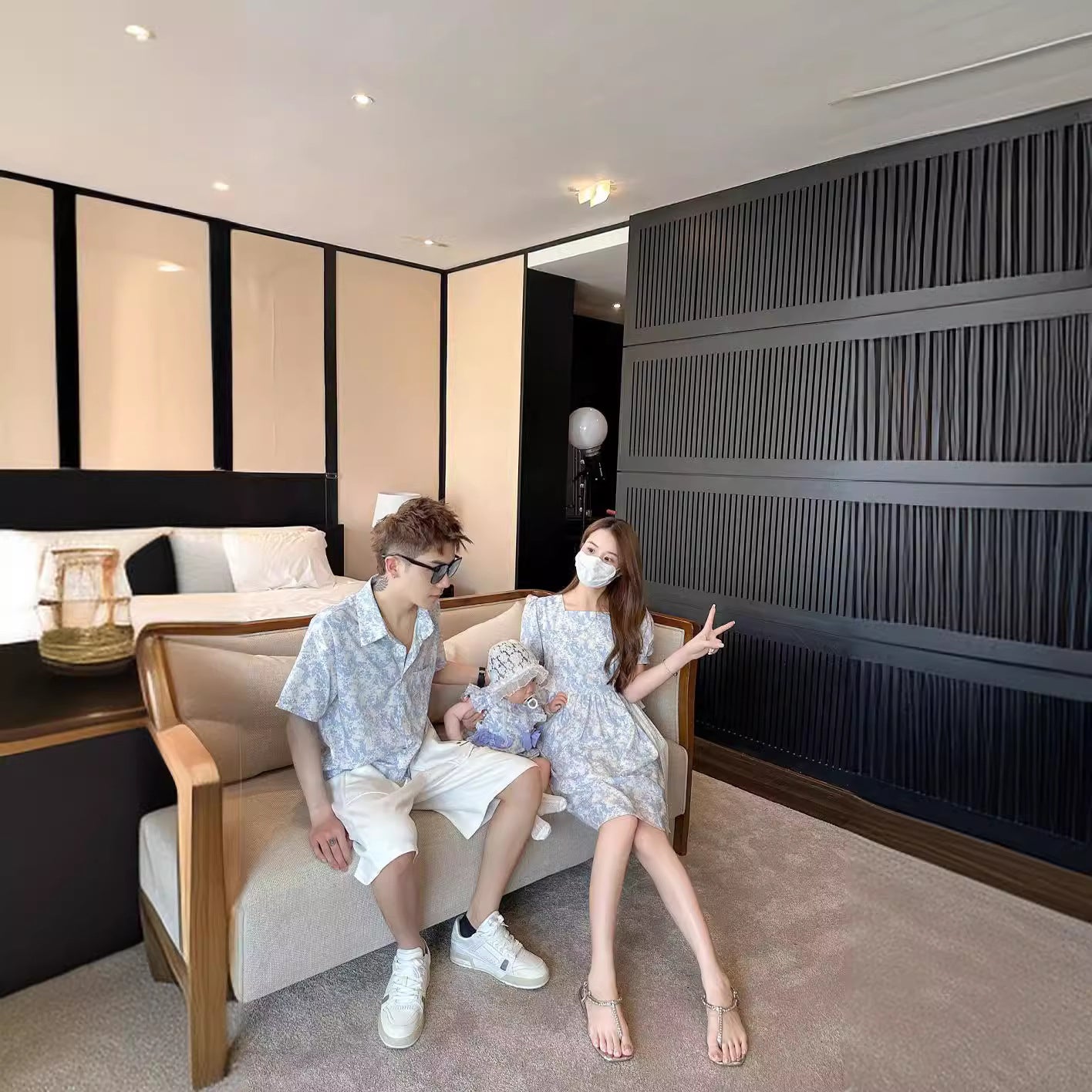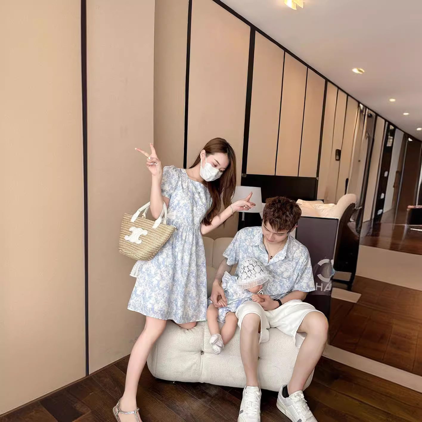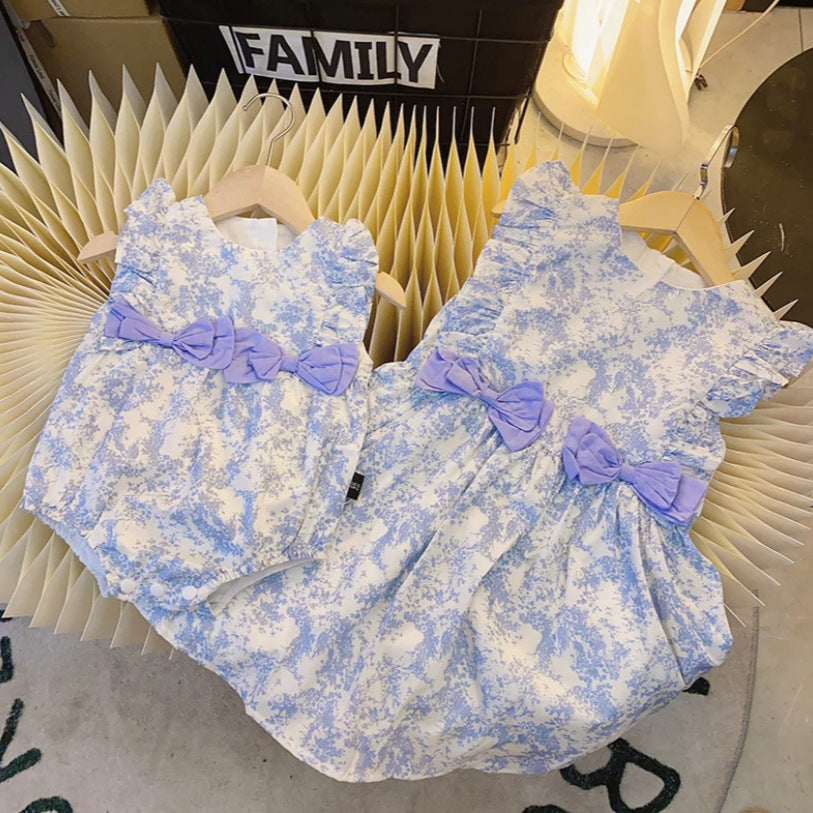 L24071402抖音同款韓版2024新品蝴蝶結小碎花親子下部青花瓷中國風童裝潮