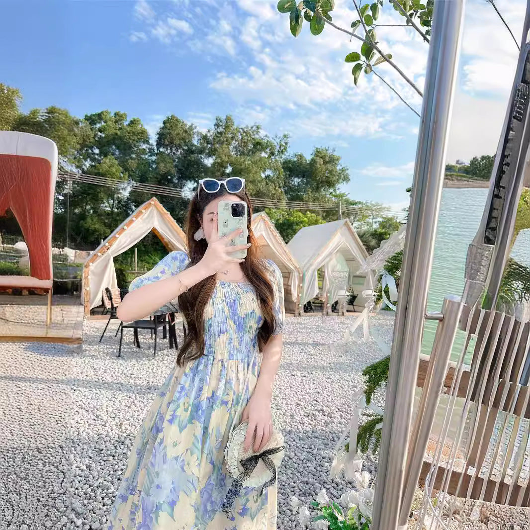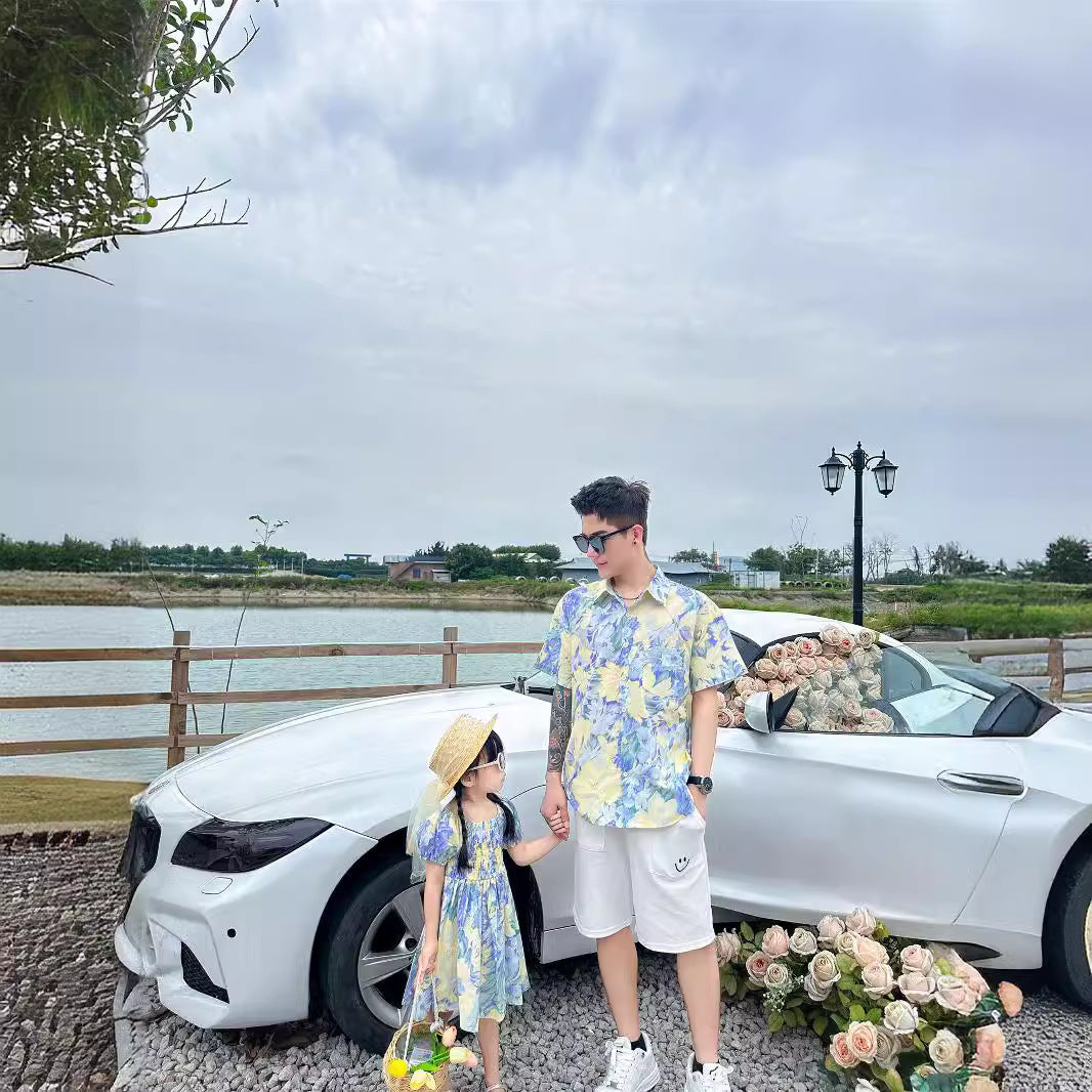 L24071405法式母女裝2024夏季時裝系列三口親子裝度假風夏裝碎花裙