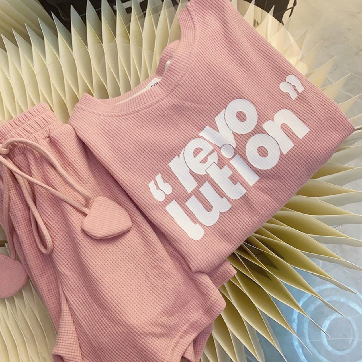 L24071412韓國版親子裝夏季時尚一家三口粉紅紫色短袖T恤母女洋氣兩件套裝
