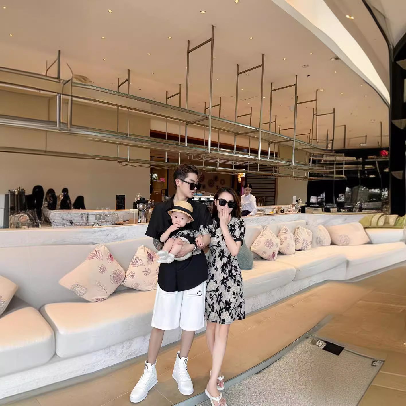 L24071415特別的親子裝夏裝中國風一家三口改良旗袍顯瘦高端洋氣母女連身裙