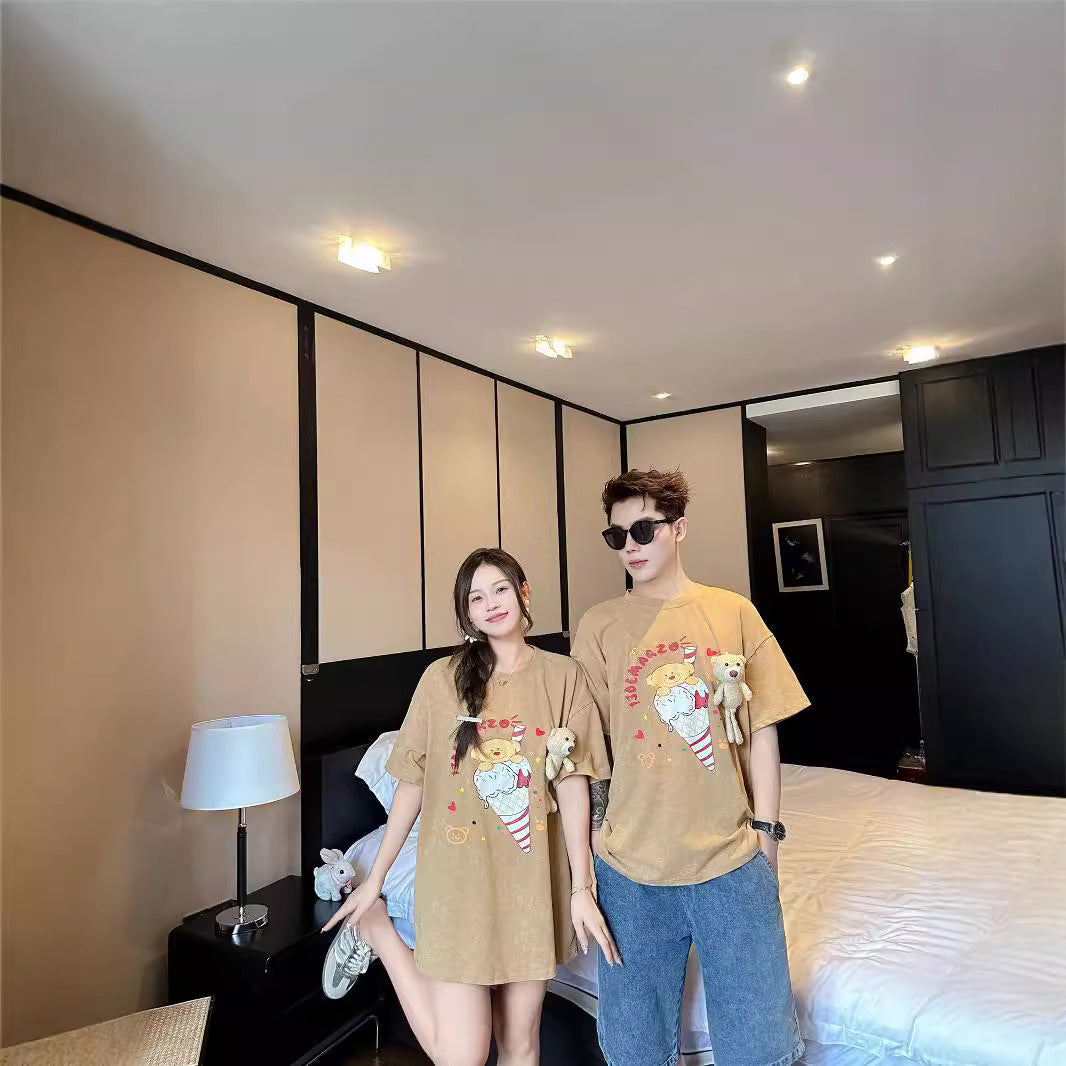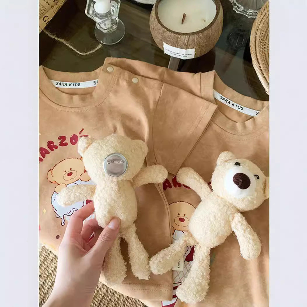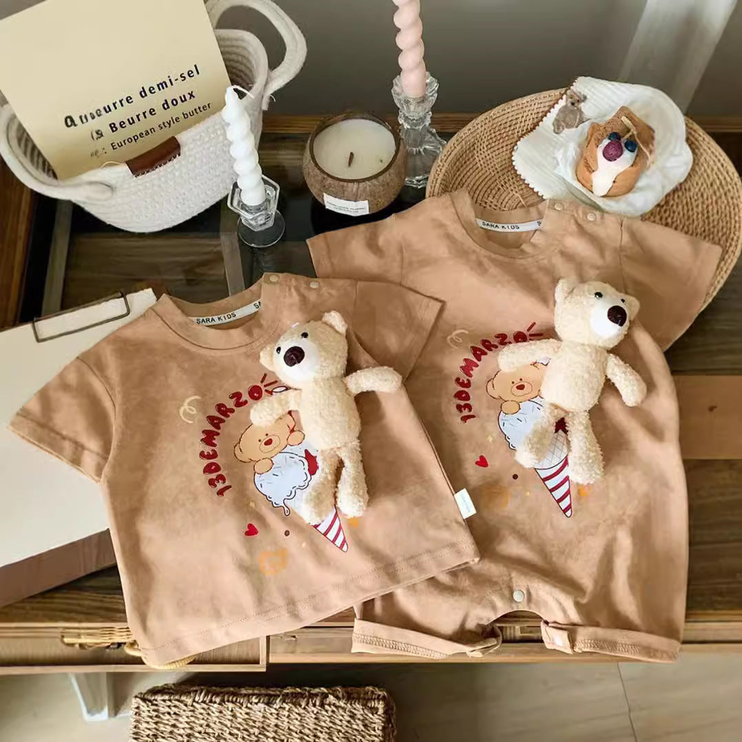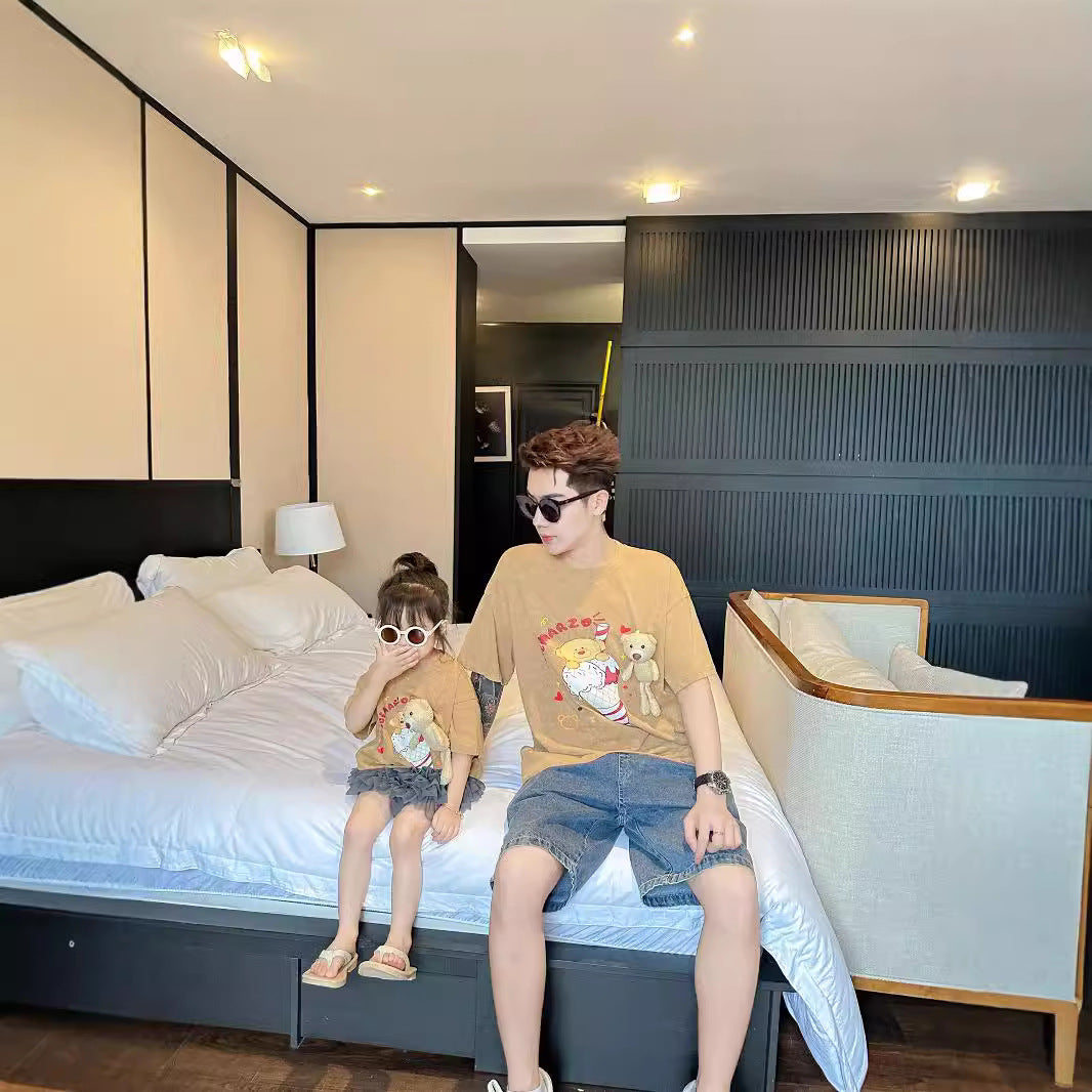 L25041702洋氣親子裝一家三四口短袖2025新款夏母子母女可拆卸小熊親子裝潮