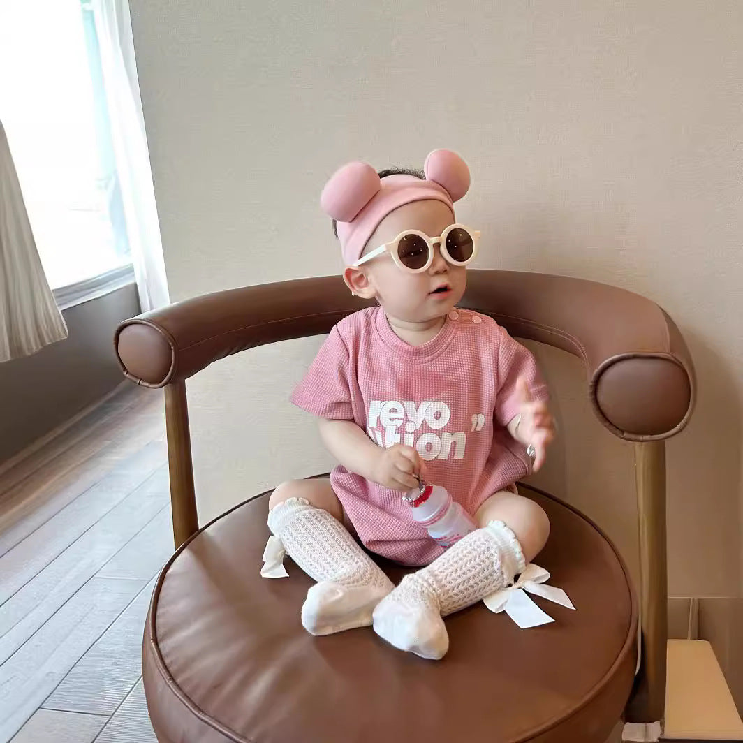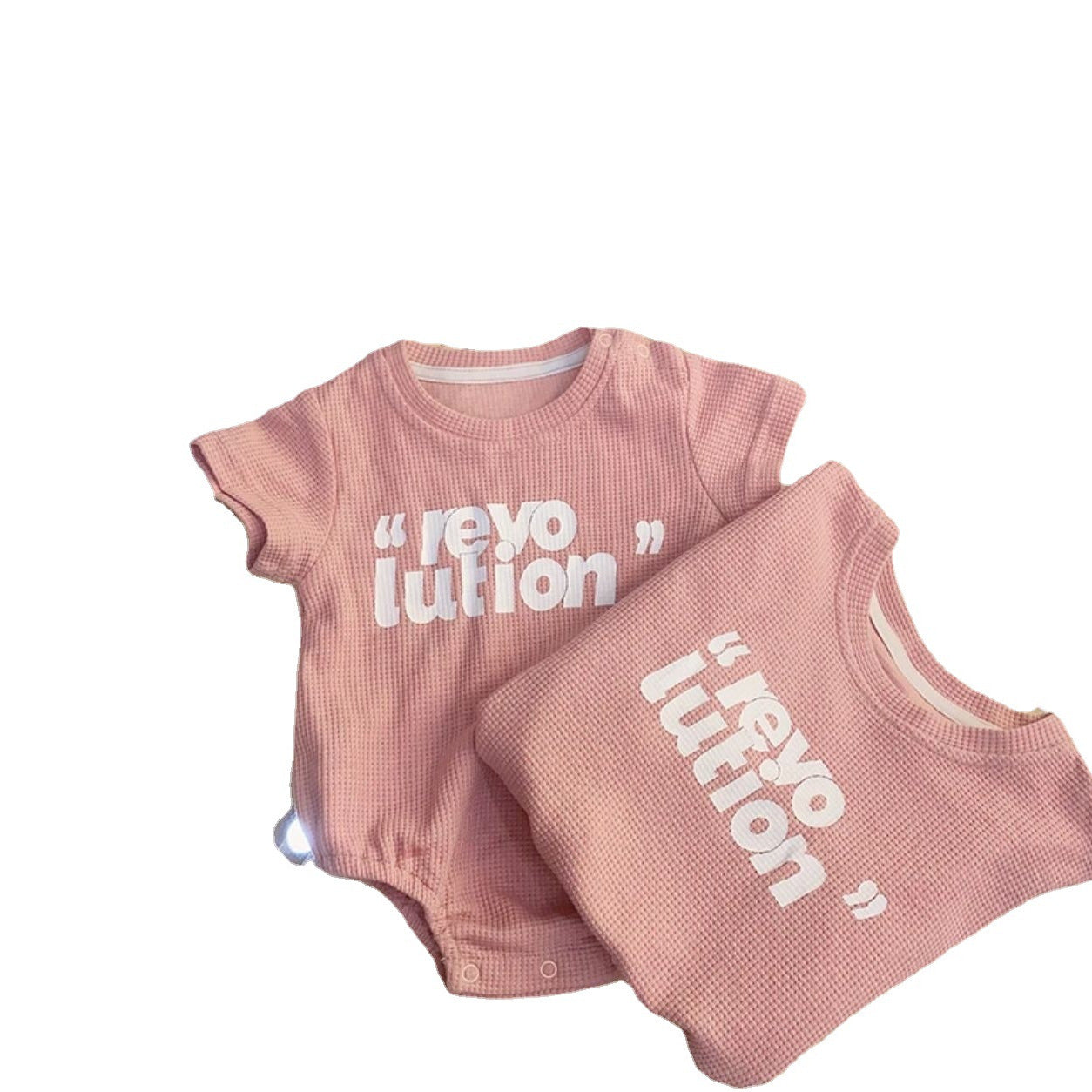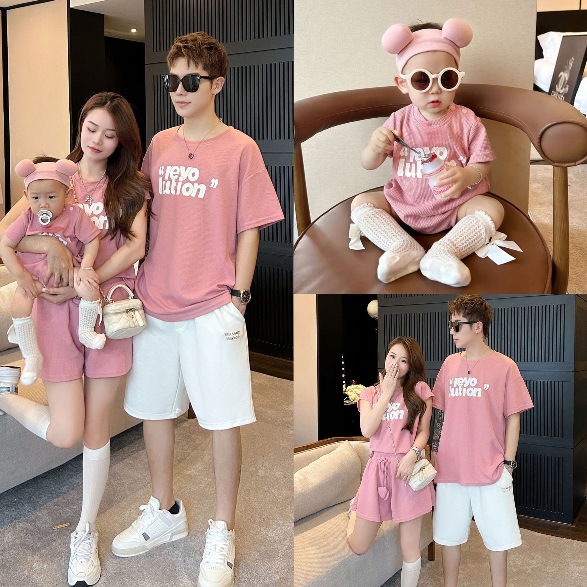 L25041703韓版親子裝夏新款一家三口嬰兒粉紅字母短袖T恤母女洋氣兩件套裝