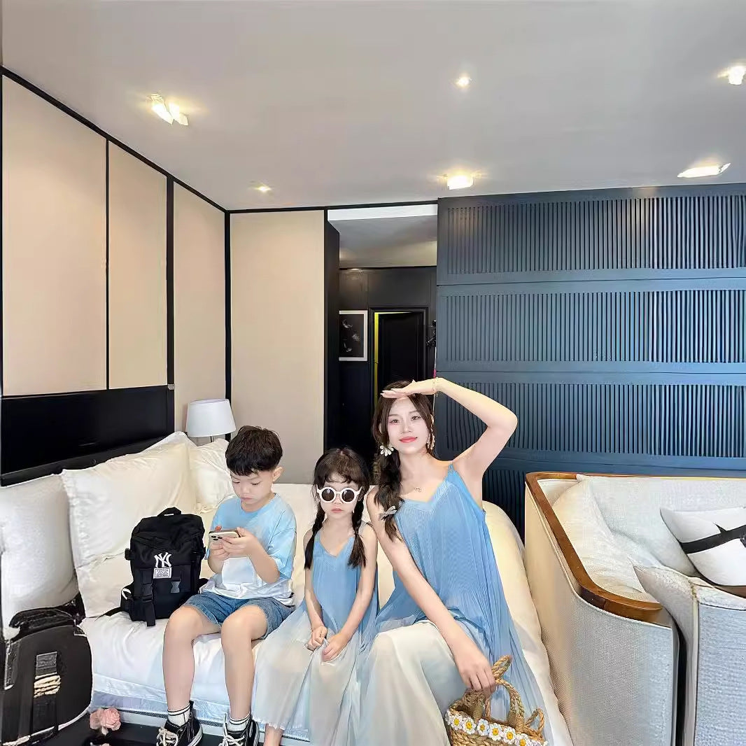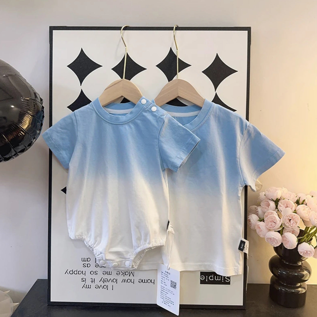L25041705海邊度假風漸層母女吊帶洋裝女夏季新款小清新一家三口短袖T恤