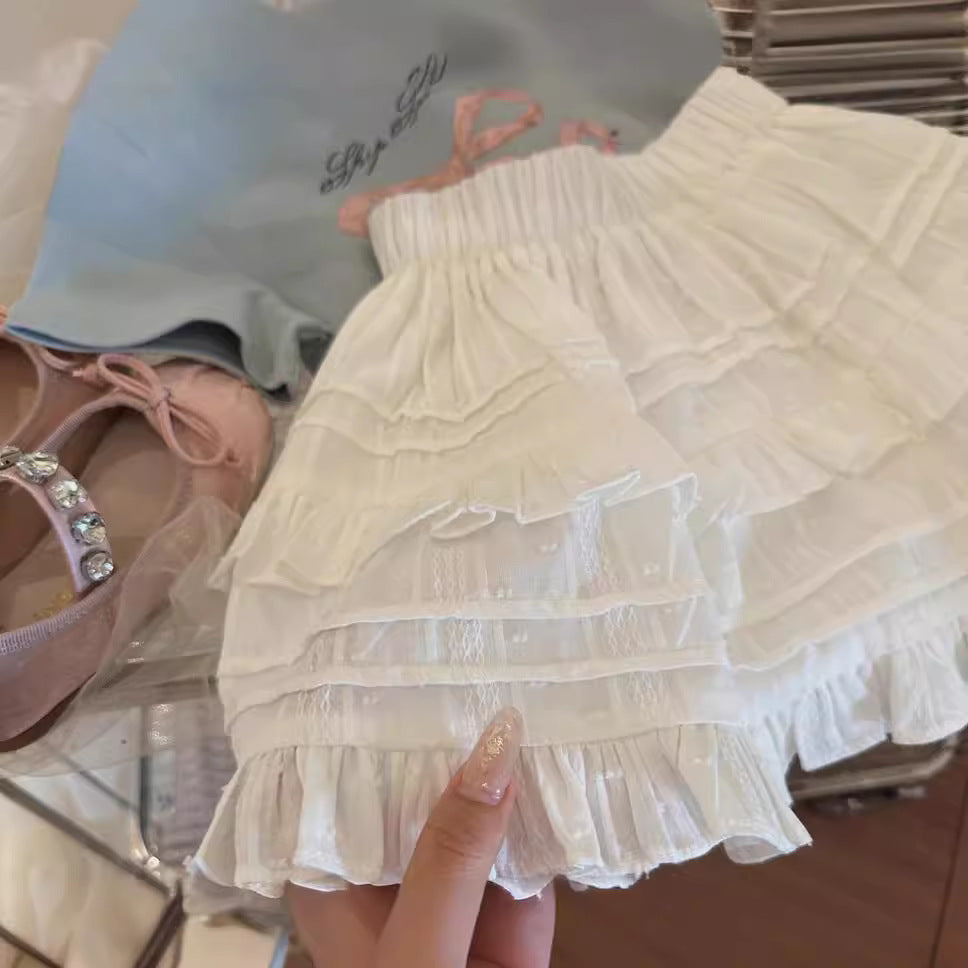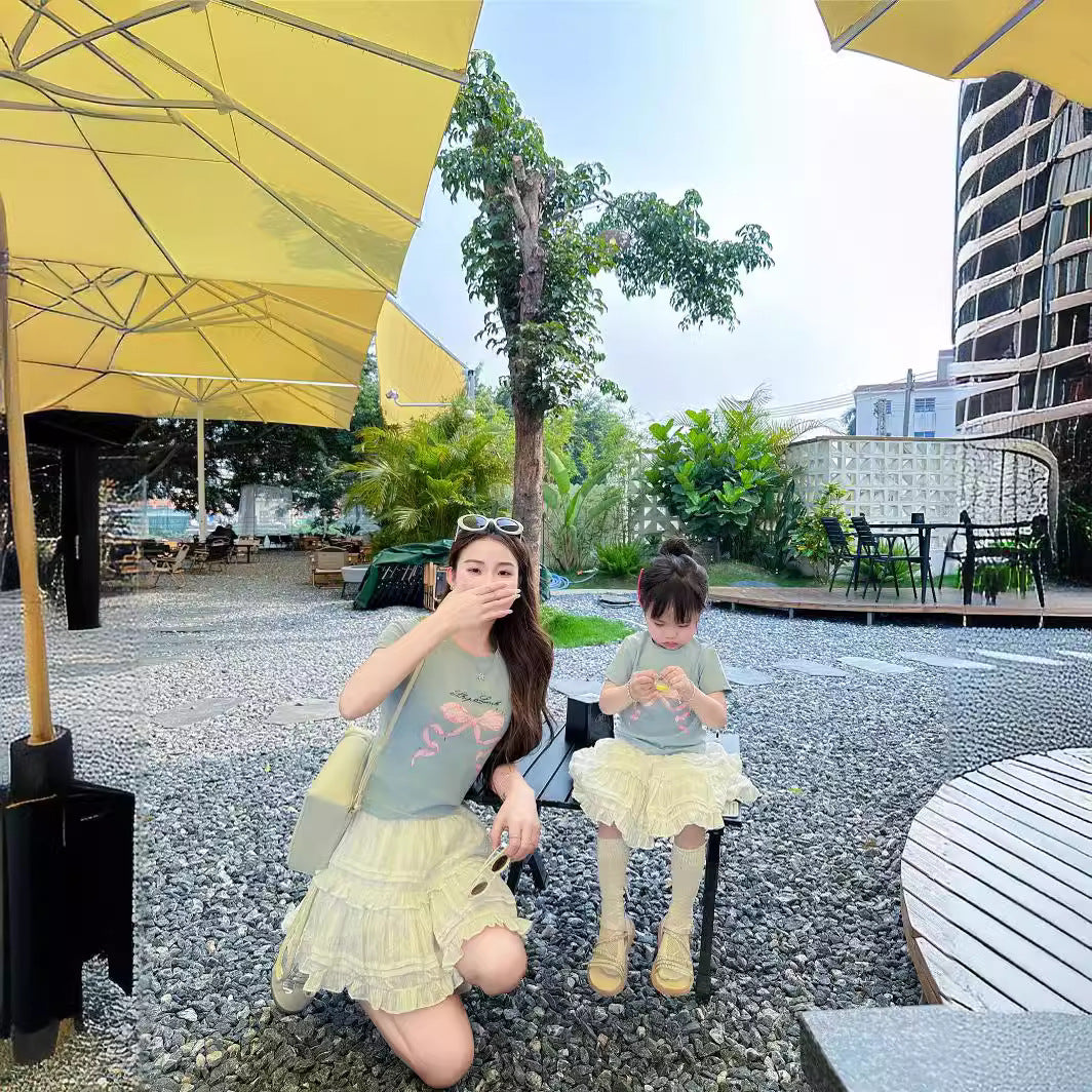 L25041707親子裝2025夏季潮短袖套裝蕾絲短裙幼兒園親子活動家庭裝潮母女裝