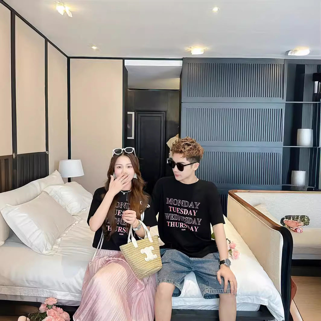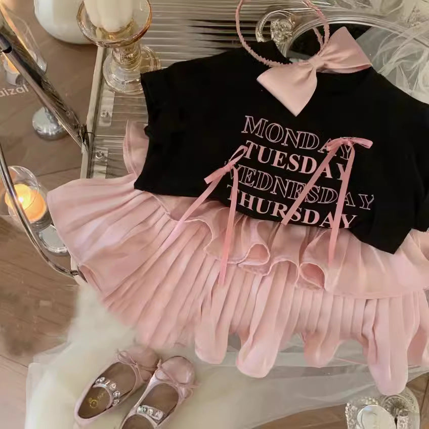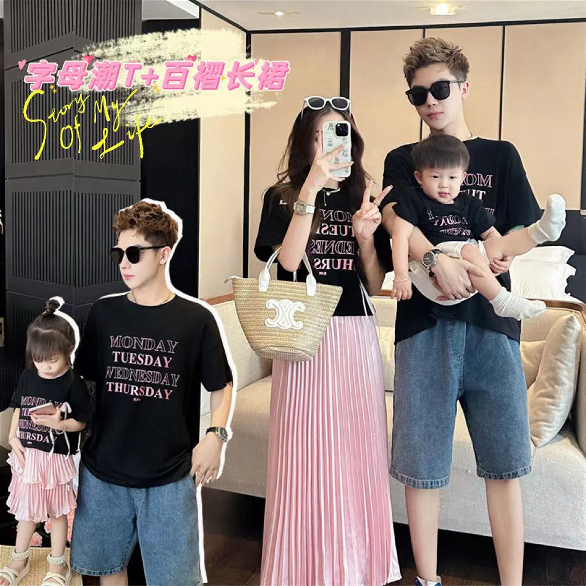 L25041711度假炸街親子裝夏季一家三四口手工蝴蝶結短袖T恤母女半身裙套裝