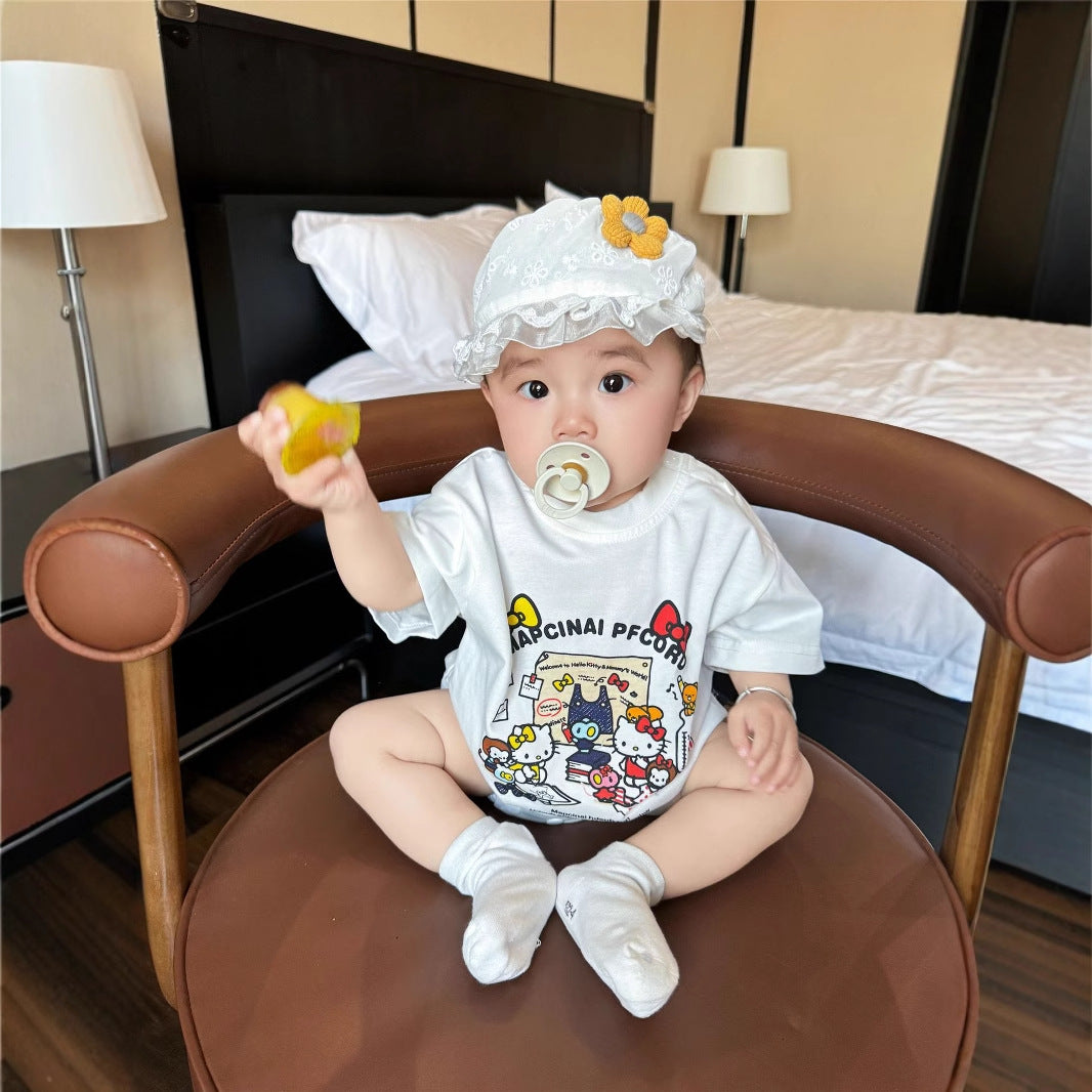 L25041716炸街親子裝卡通短袖t恤2025夏季新款高級感百搭親子母女嬰兒裝潮