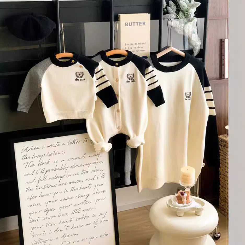 L25120401親子毛衣2025秋冬媽媽女母子學院風幼兒小熊寶寶爬服洋氣針織衫