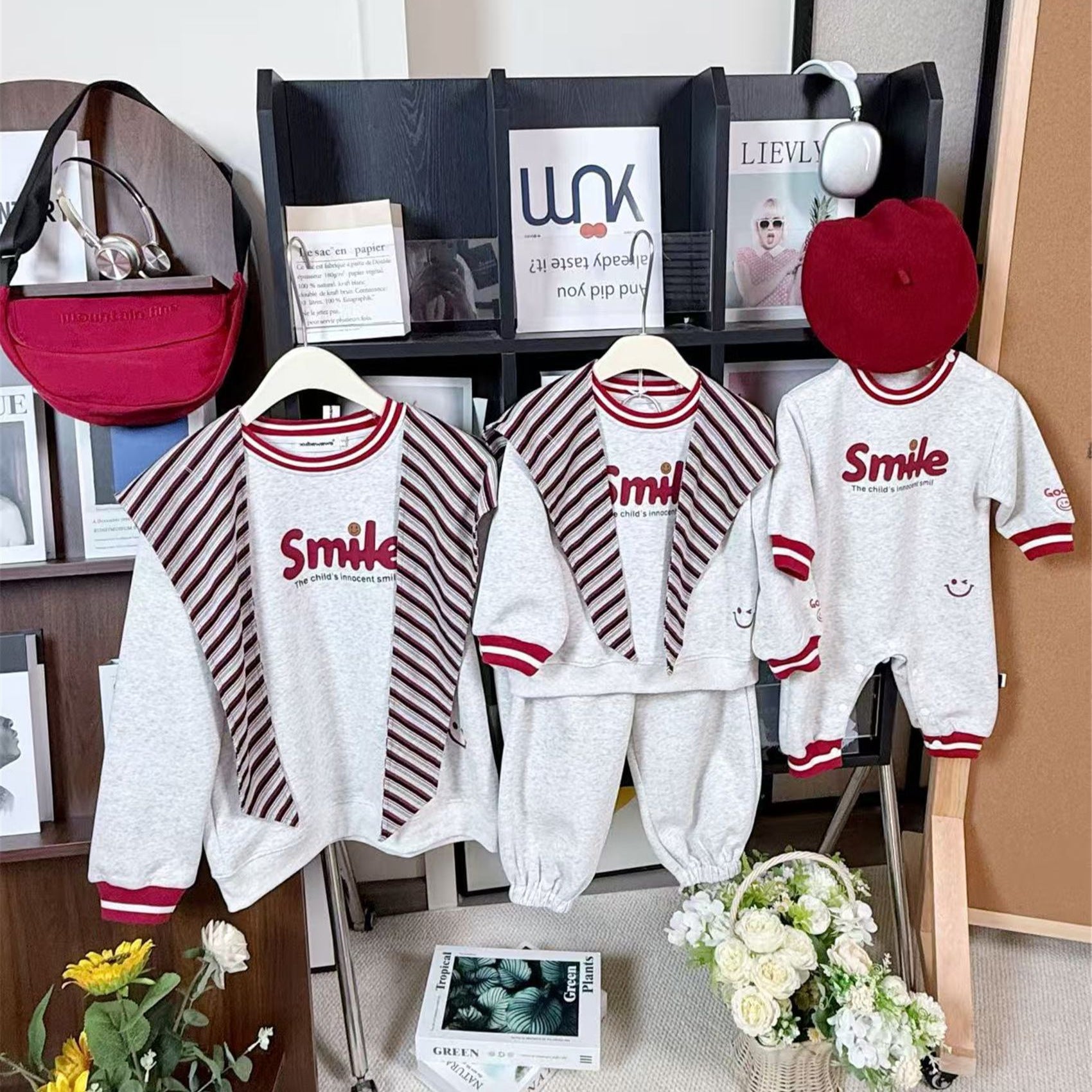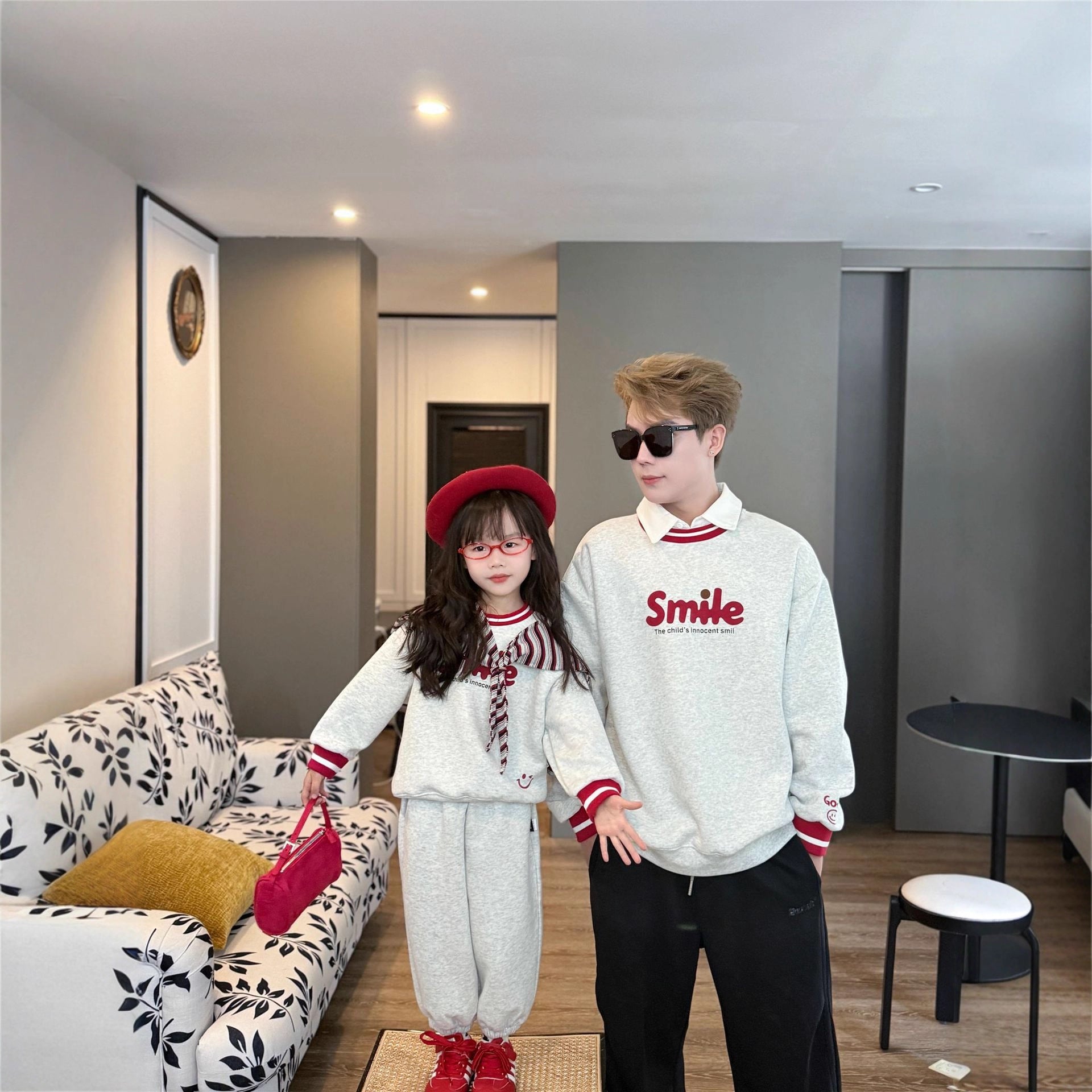 L25120403親子裝秋冬一家三口新生上班服洋氣媽媽女裝字母加絨衛衣套裝潮