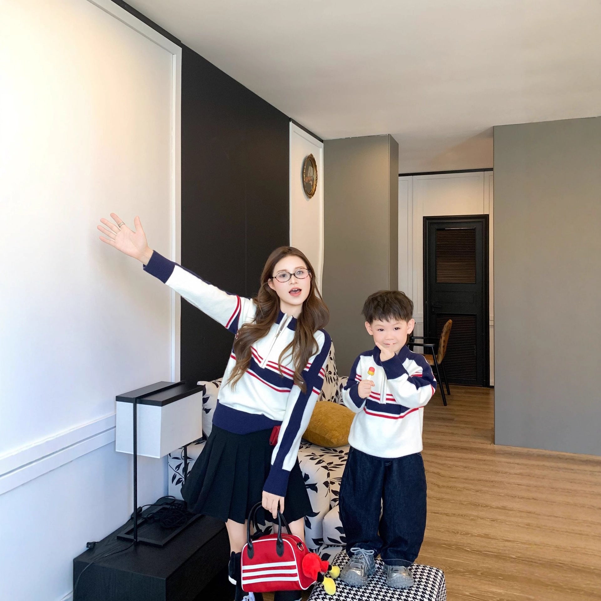 L25120411高級感親子裝2025潮秋冬毛衣一家三口小月齡母子針織衫男女童裙子
