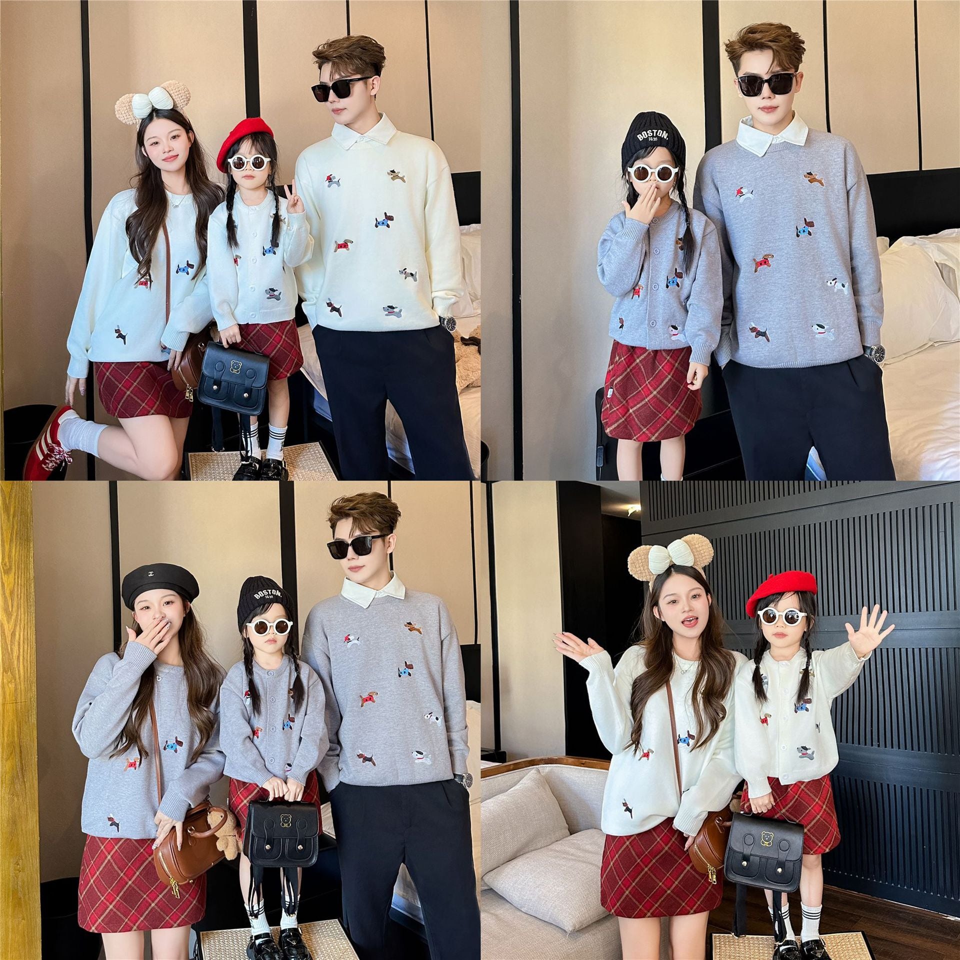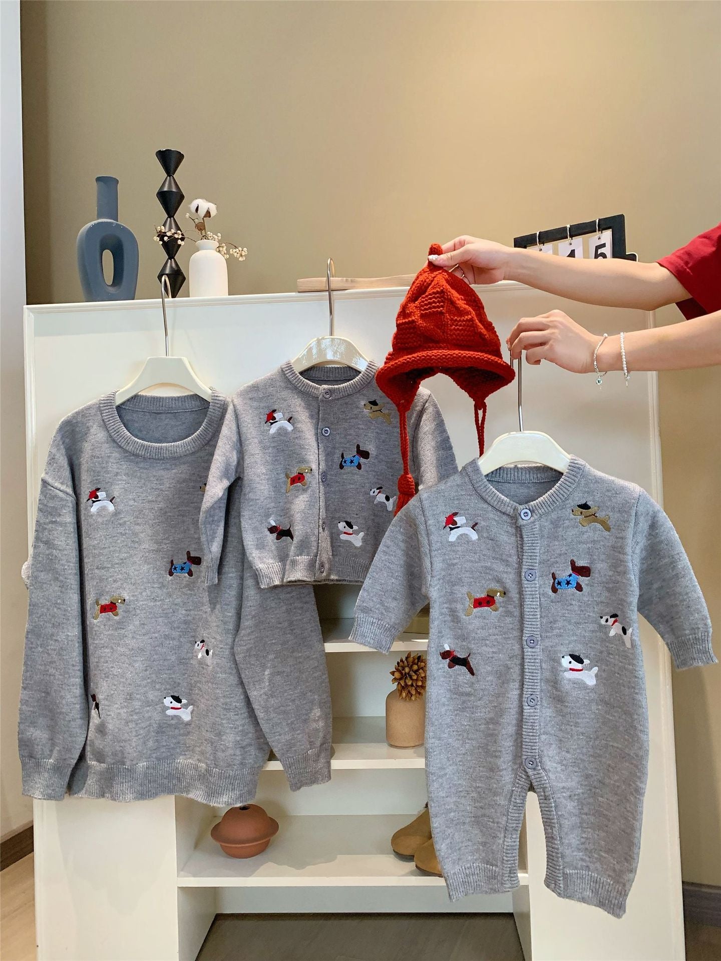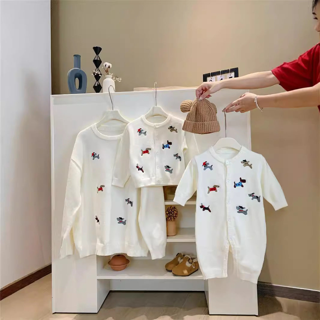 L25120413韓國版親子裝一家三口針織開襟衫女母子毛衣小孩純棉嬰兒爬服潮