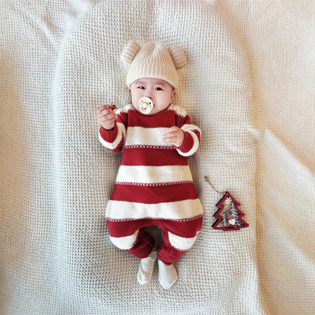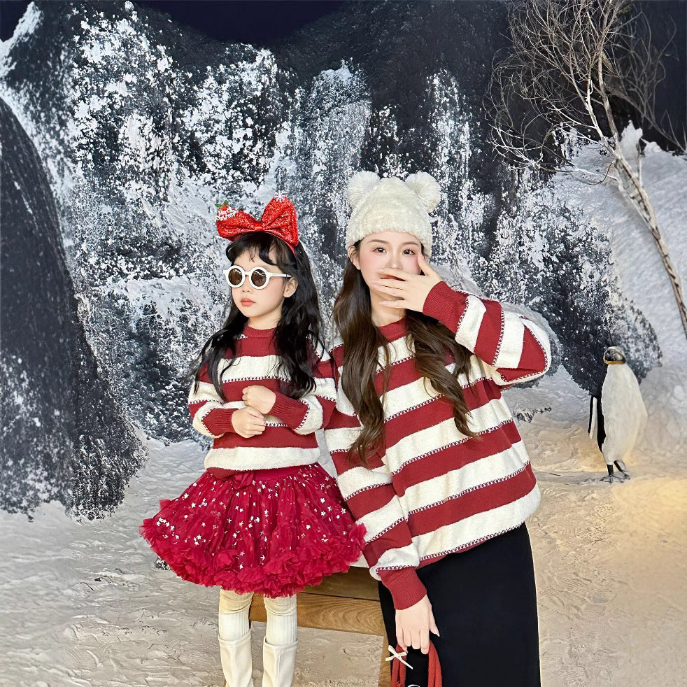 L26010601過年親子裝秋冬新款三口新年親子母女裝寶寶條紋紅色喜慶毛衣