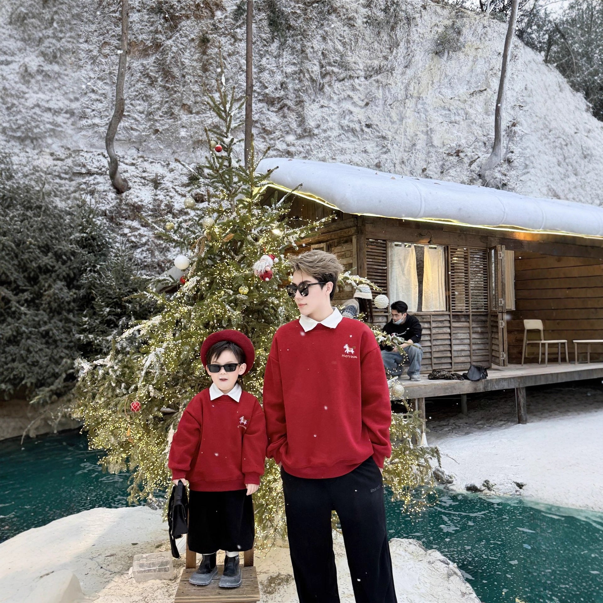 L26010602馬年親子裝冬一家三四口小月齡男童紅色小孩加絨衛衣過年拜年服