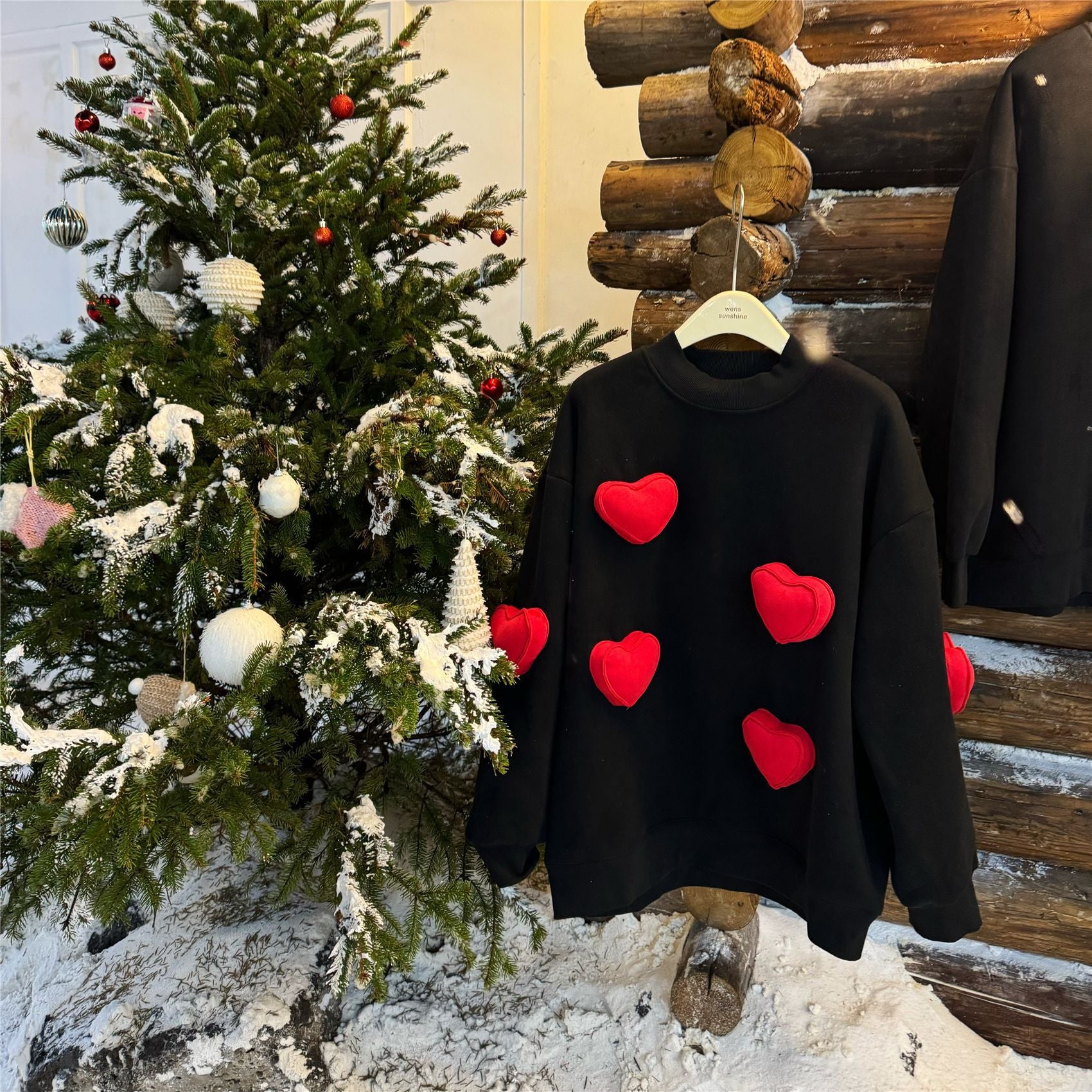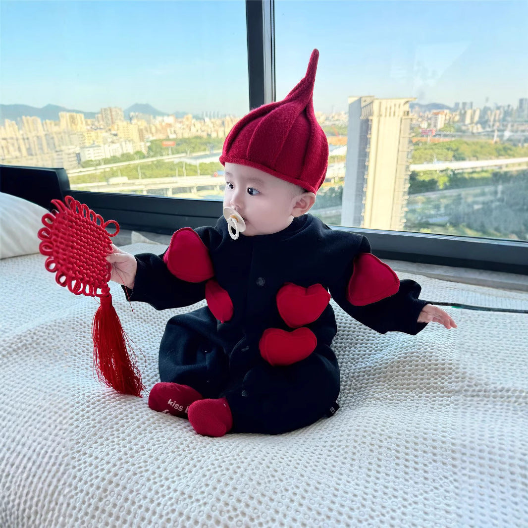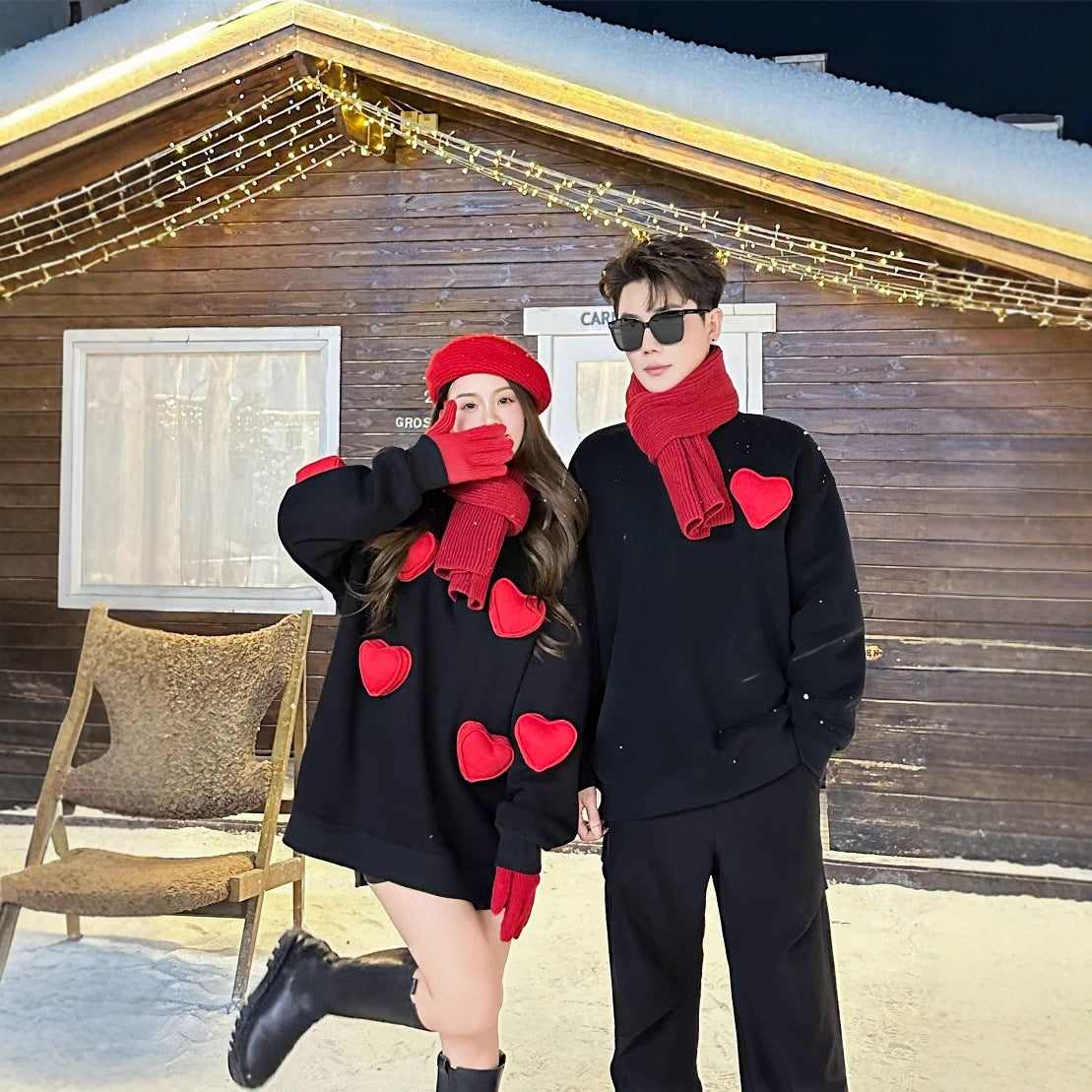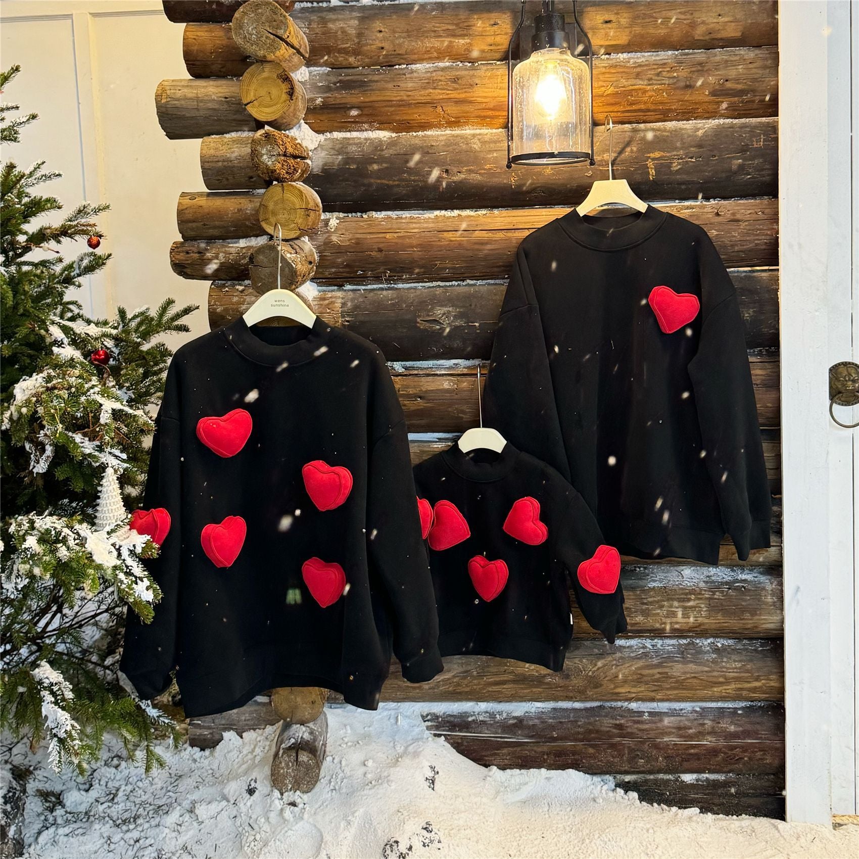 L26010603過年親子裝新款三口嬰兒爬服母女加絨加厚紅色立體愛心衛衣潮