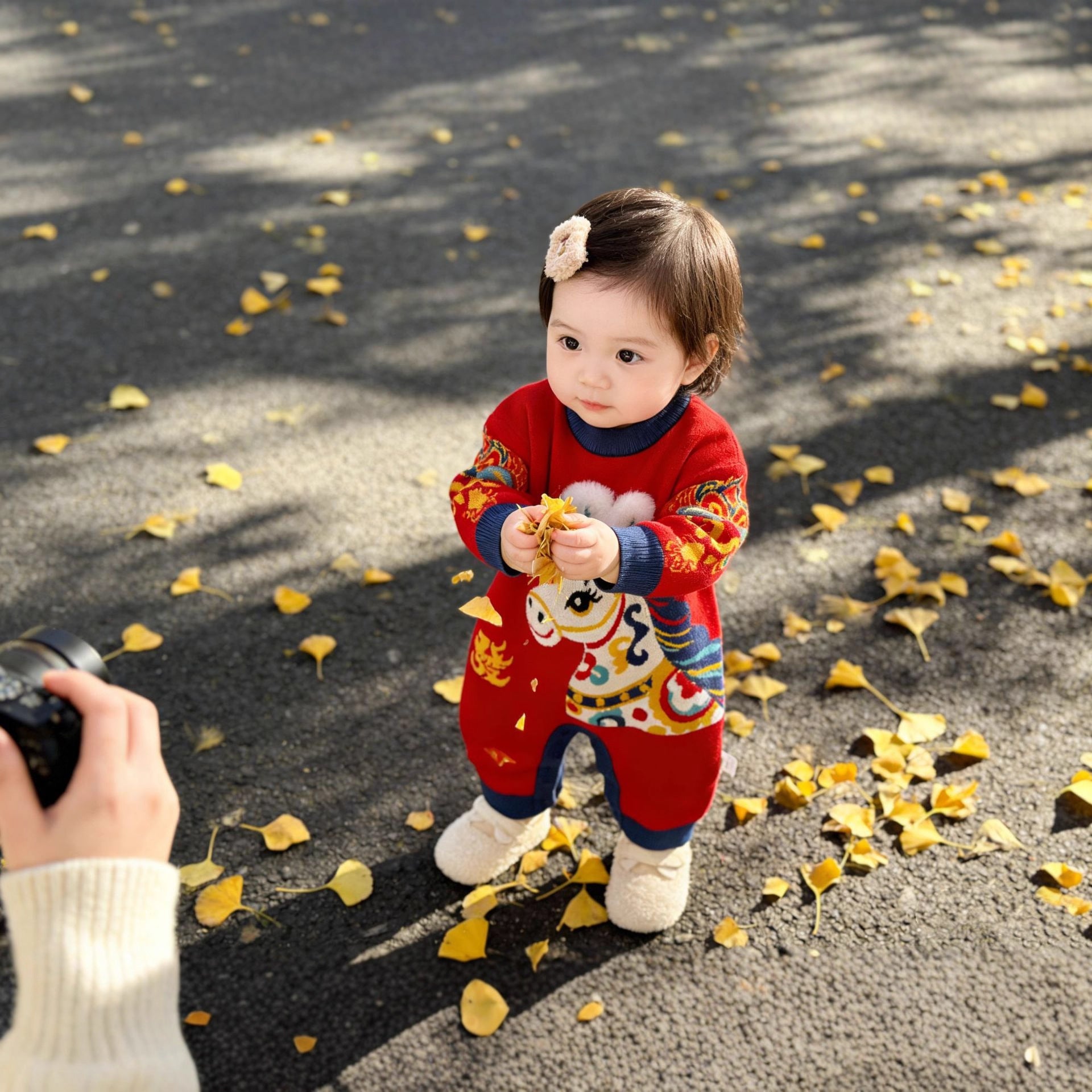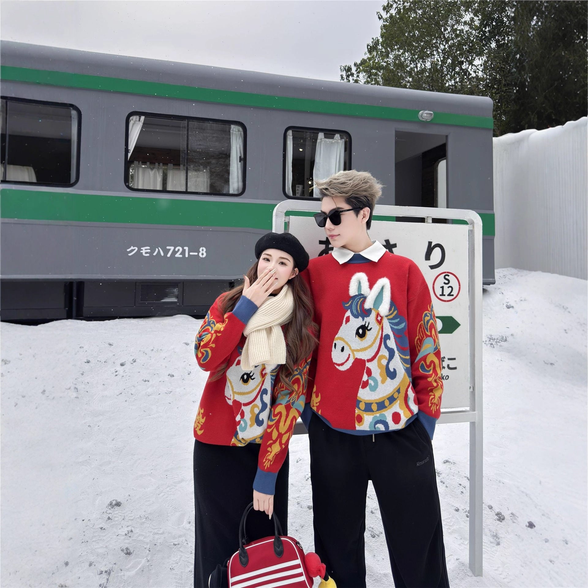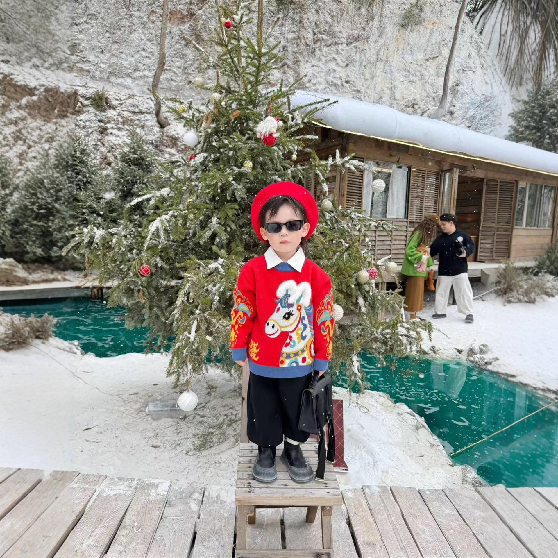 L26010608親子裝秋冬新款2026紅色針織衫一家三四口過年紅色親子毛衣潮