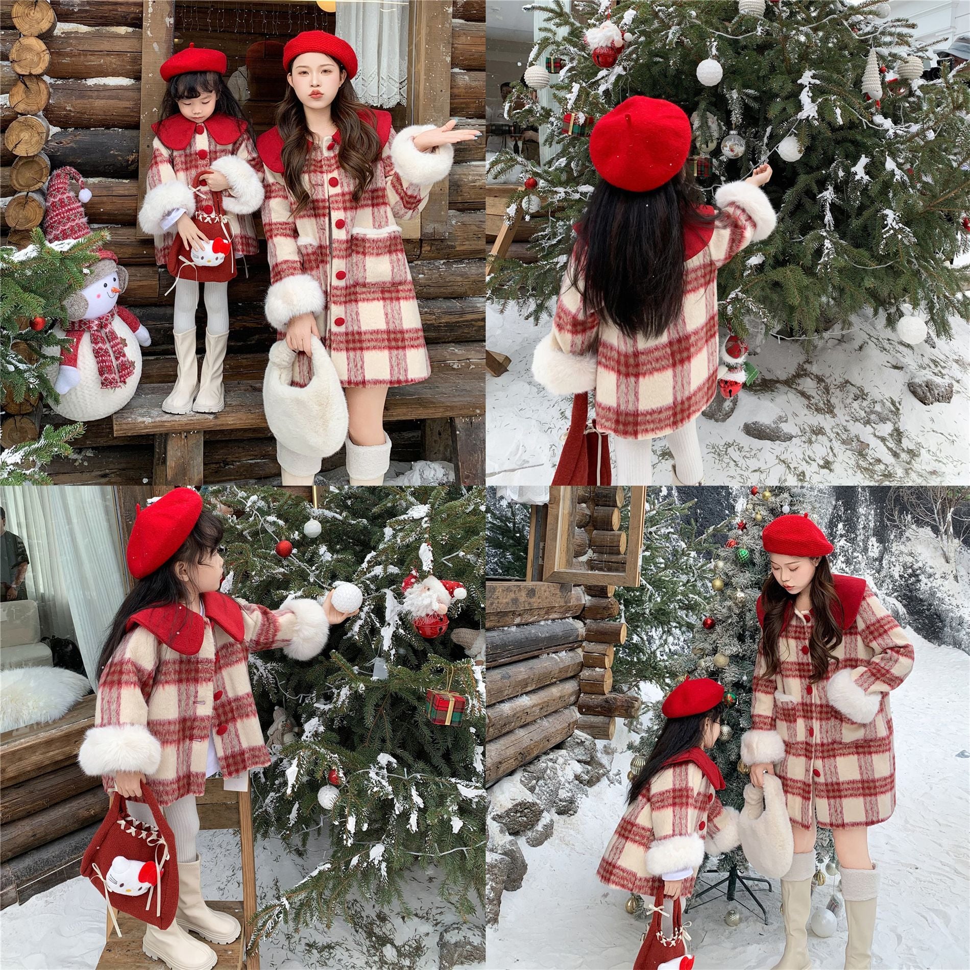 L26010609不一樣的親子裝冬季母女裝夾棉毛呢格子裙女童洋氣拜年服潮