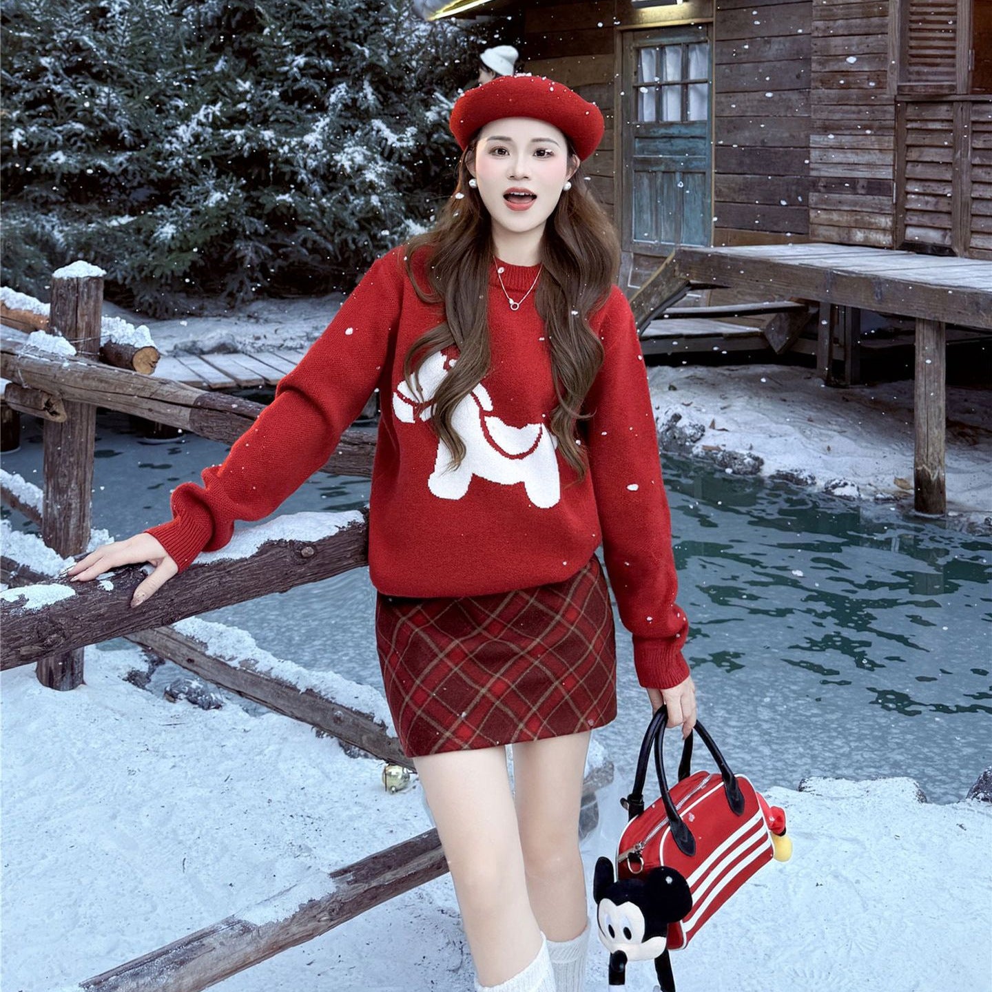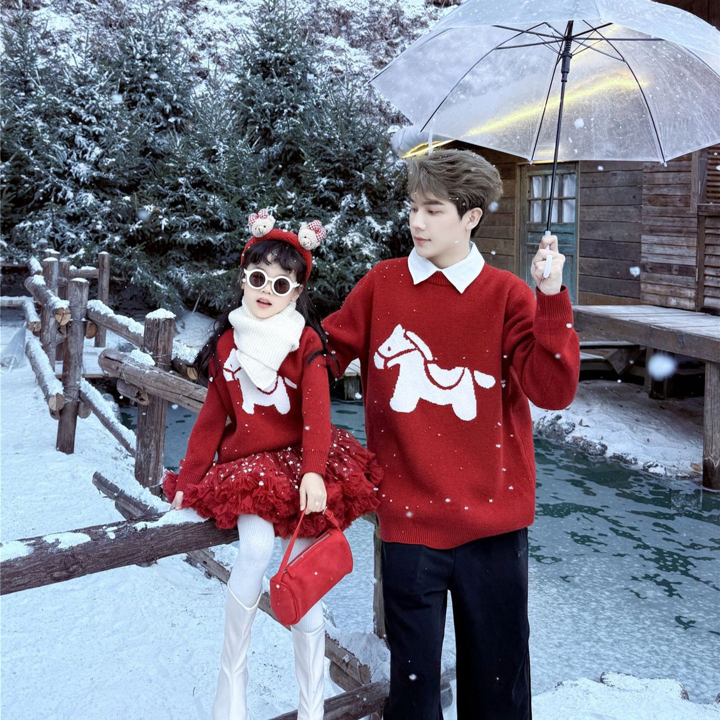 L26010613本命年毛衣親子裝一家三口四口母子母女裝2026年喜慶跨新年拜年服