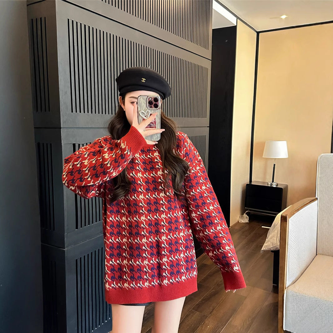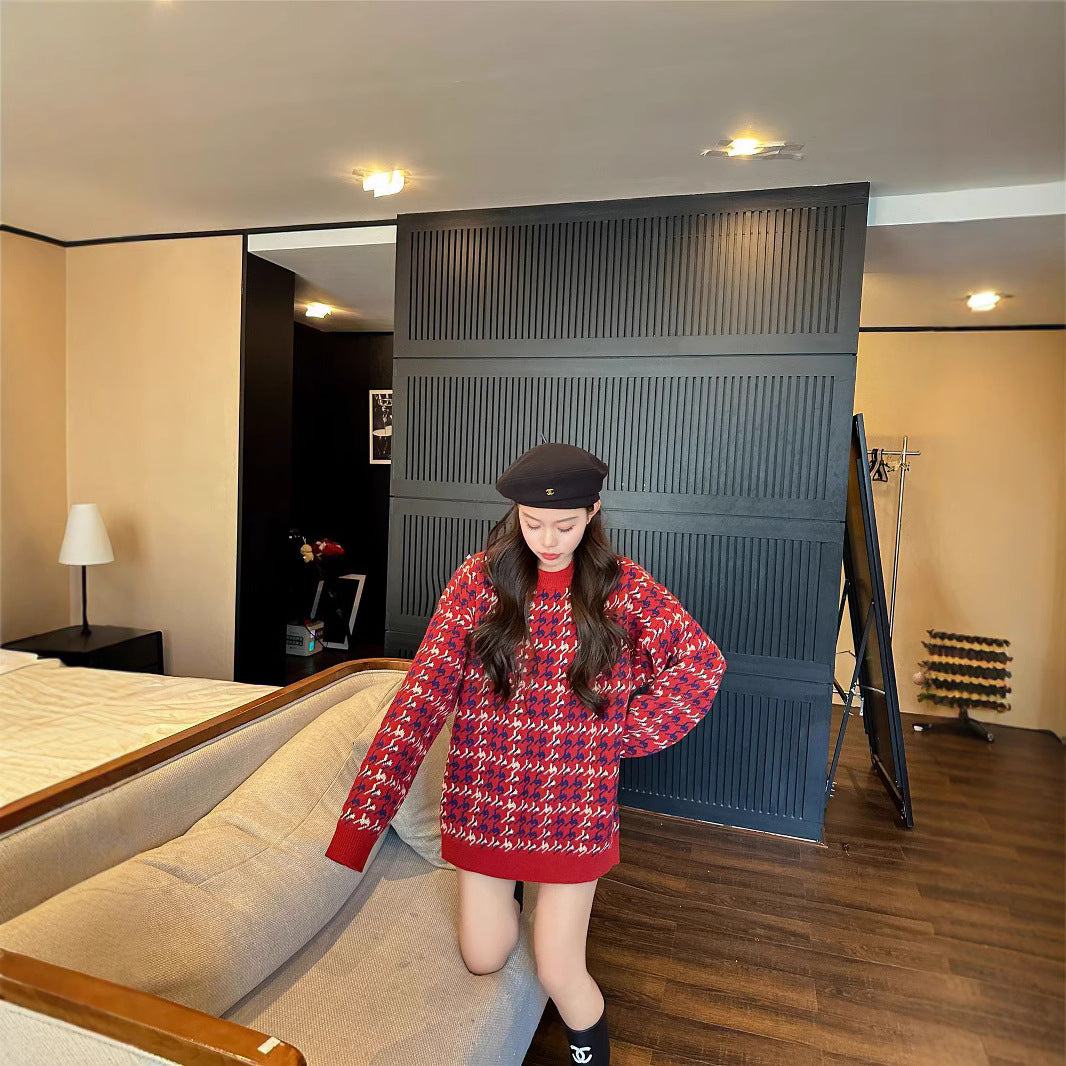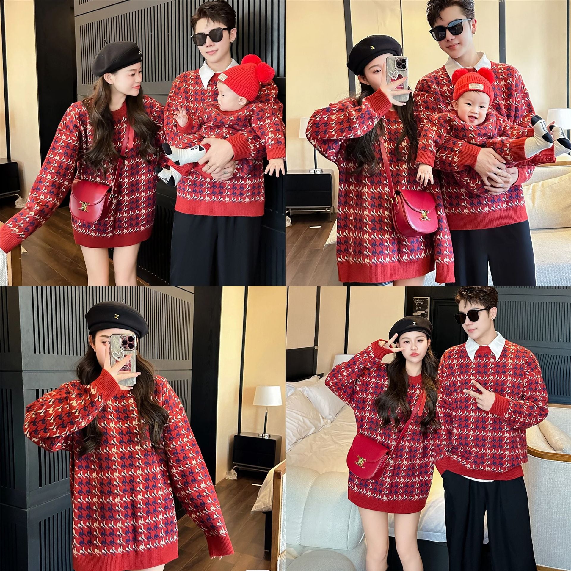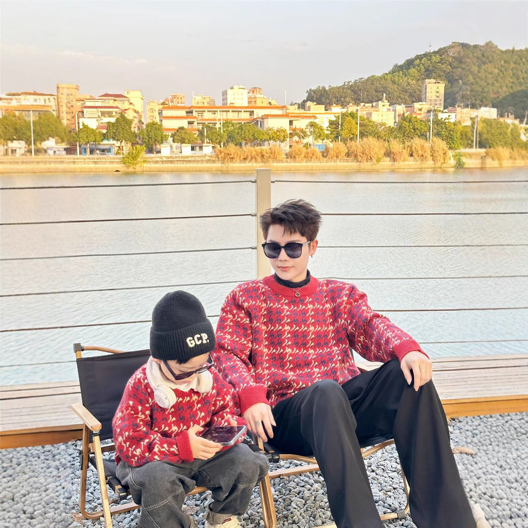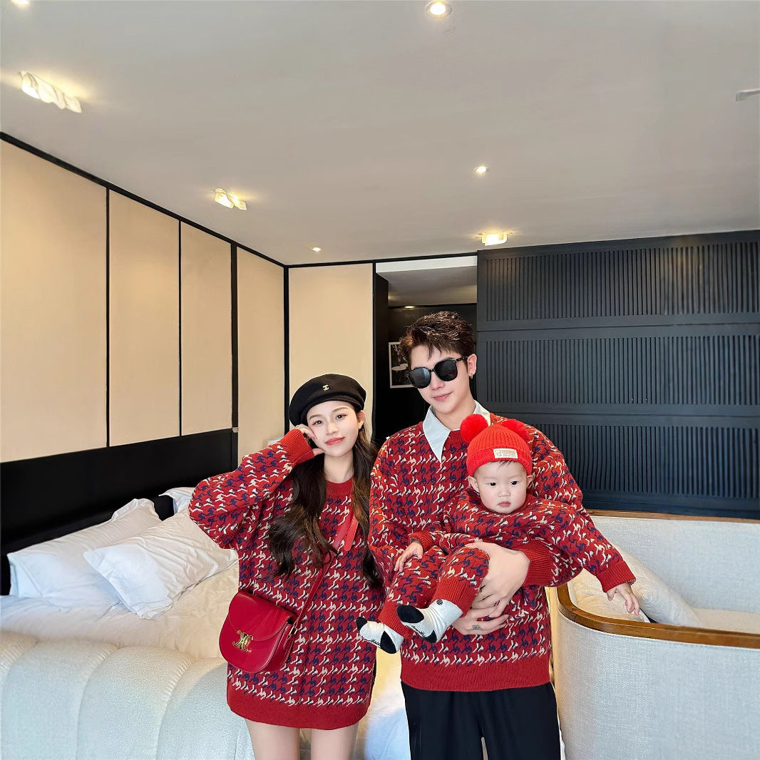 L26010614馬年親子裝秋冬毛衣2025新款紅色童裝三口針織衫母女拜年服潮
