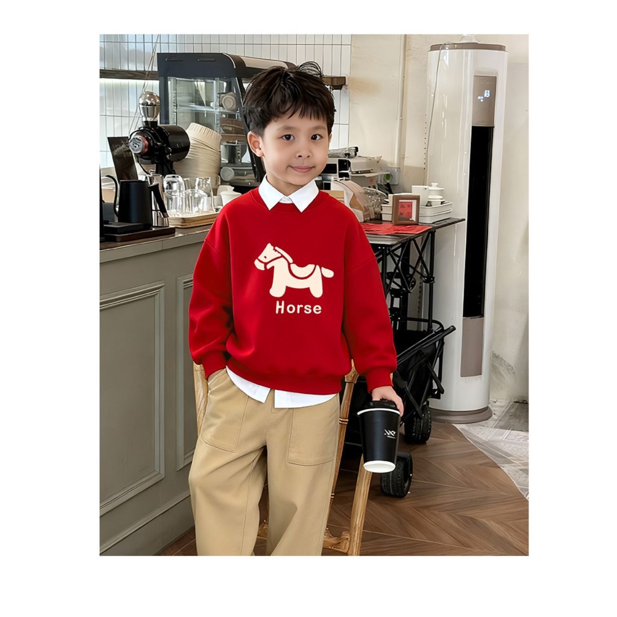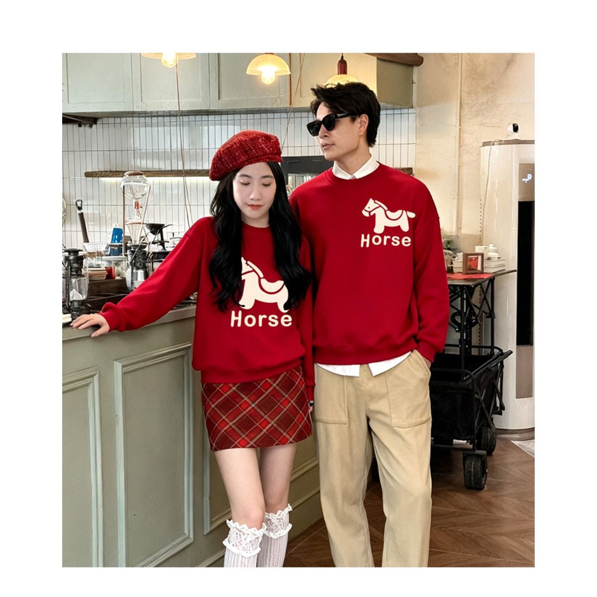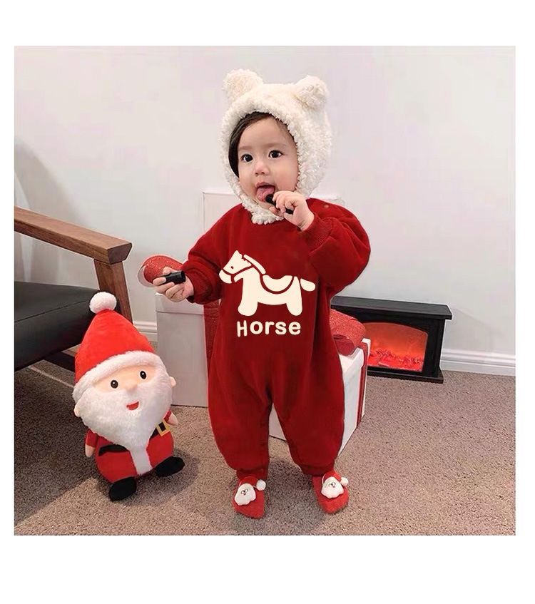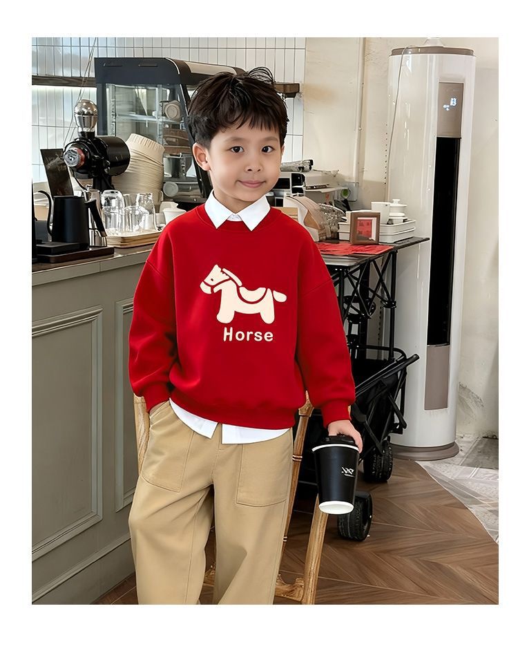 LA26011401親子裝秋冬新款圓領印花衛衣一家三口高端全家裝紅色喜慶拜年服潮
