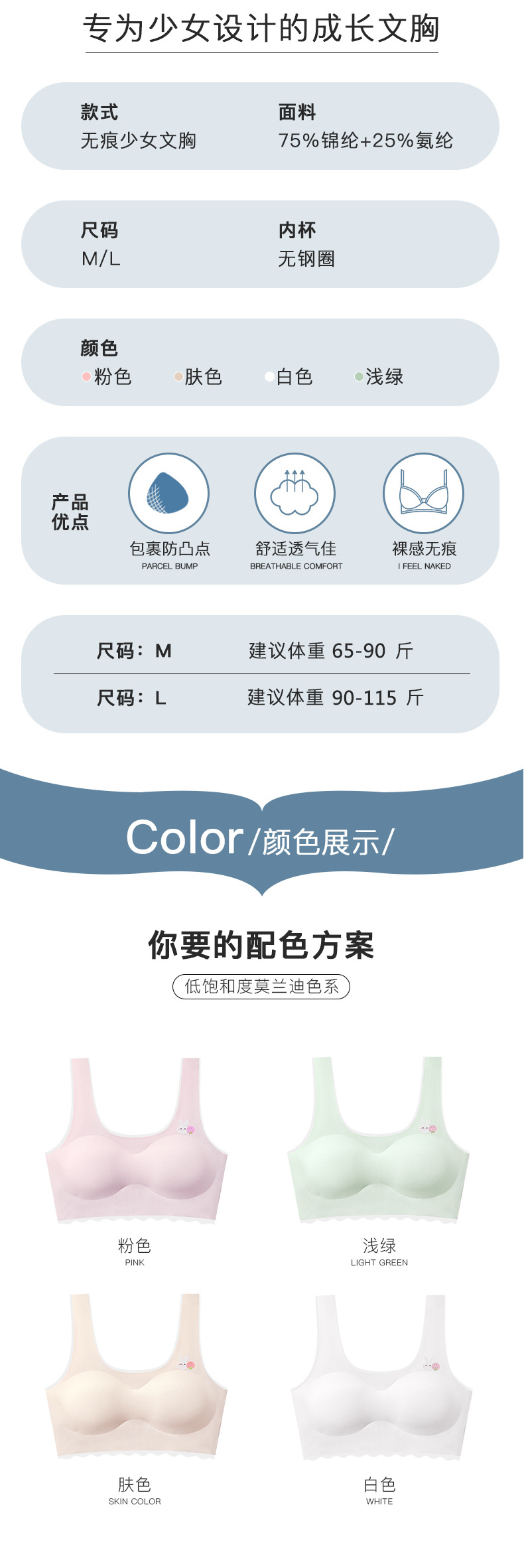 Z23122301無痕期青春期少女內衣無鋼圈防凸點可感知罩杯超薄胸罩學生青春期(3件起批)