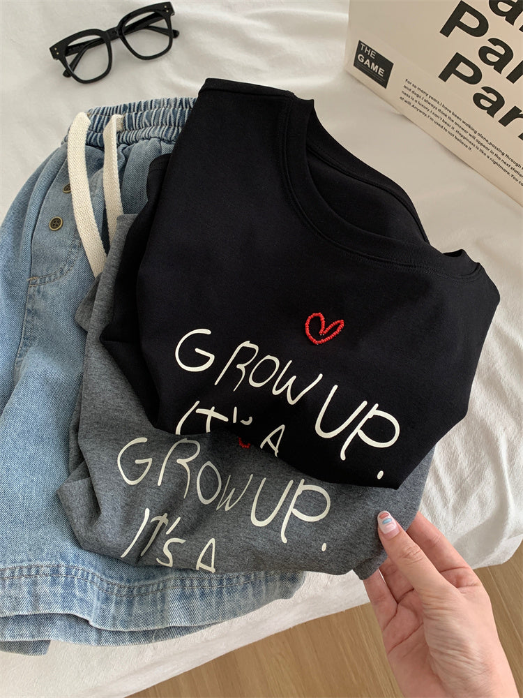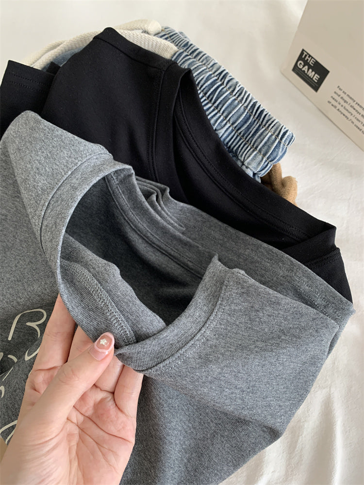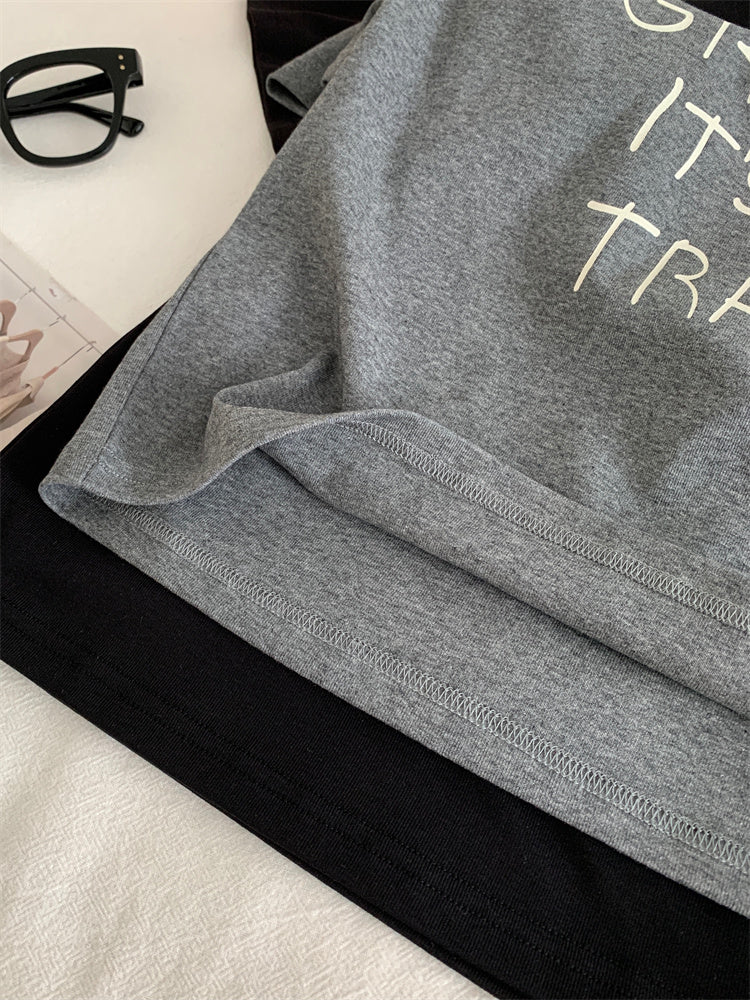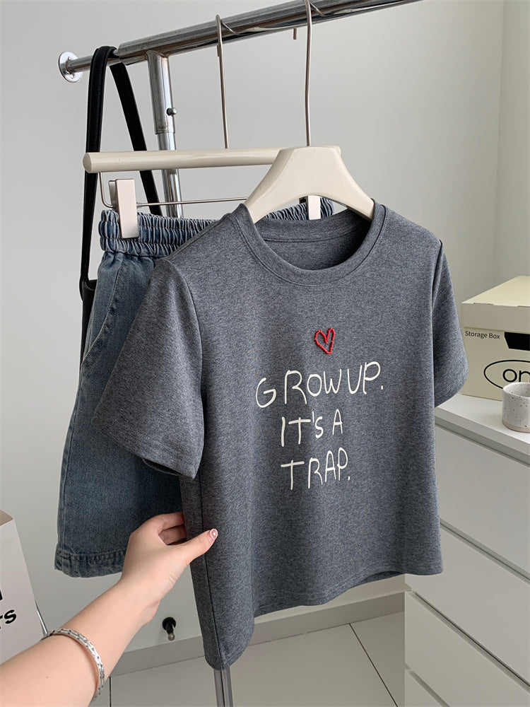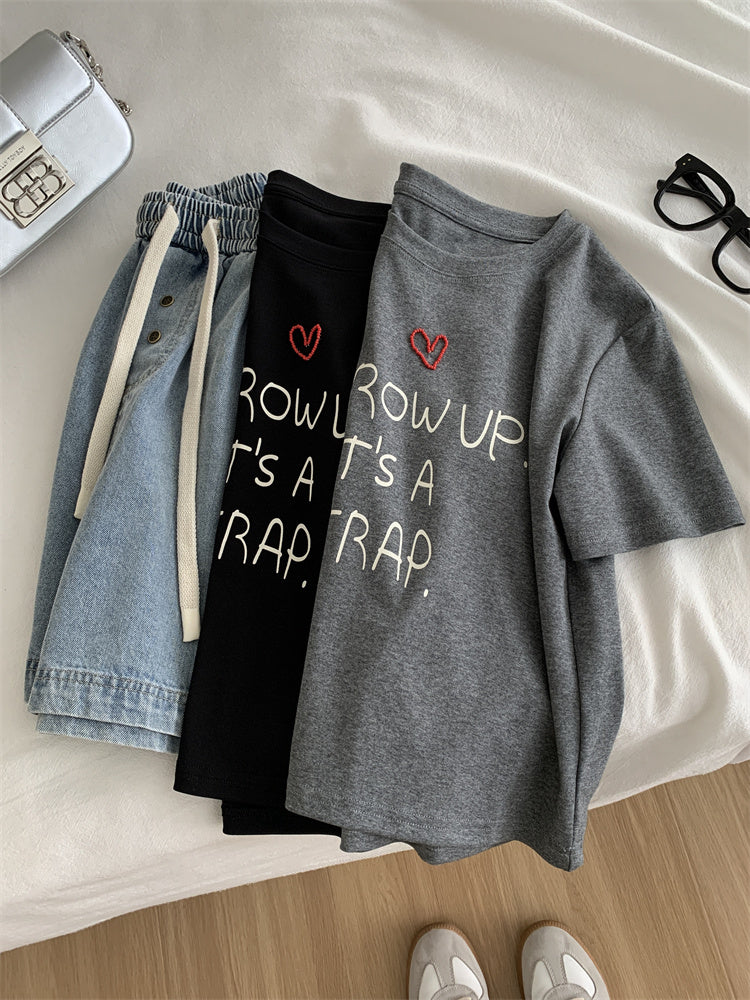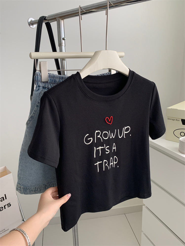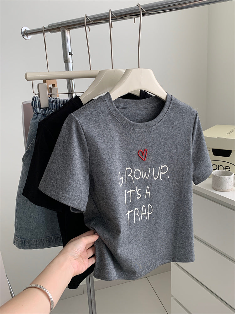 Z24070214美式復古釘珠字母短版印花T恤女流行顯瘦時尚百搭圓領正肩短袖夏