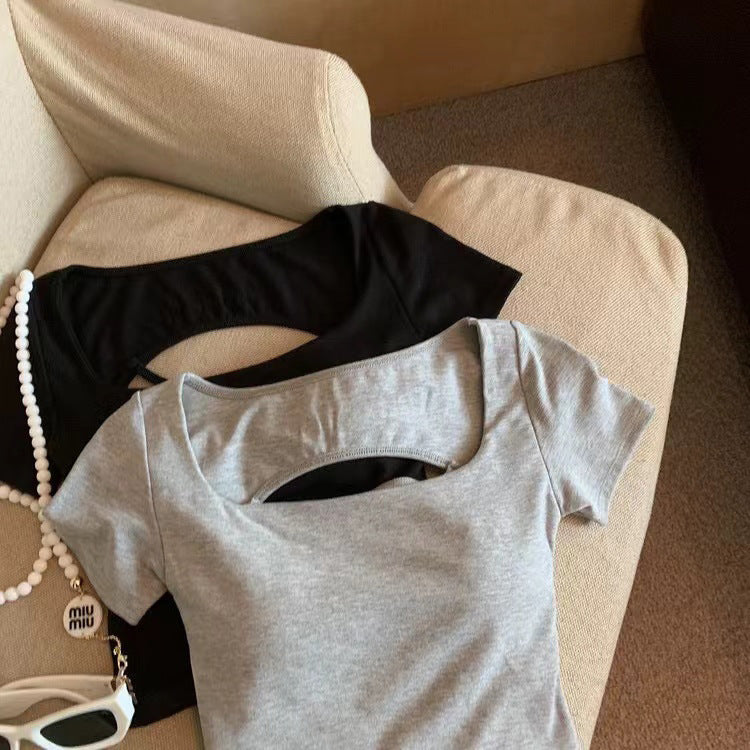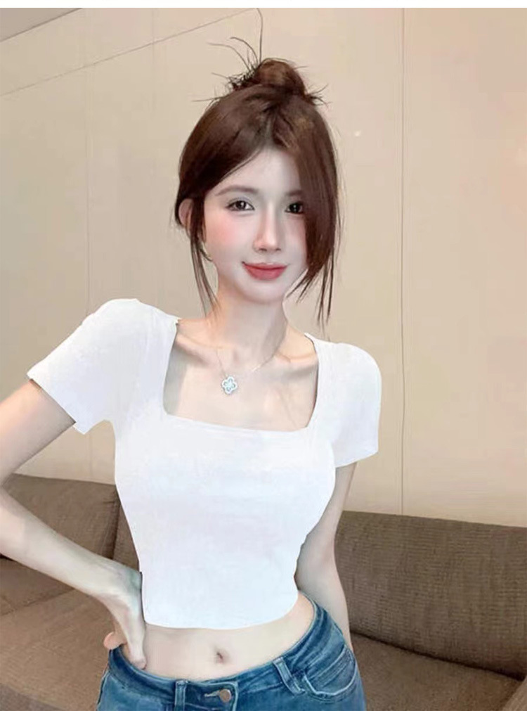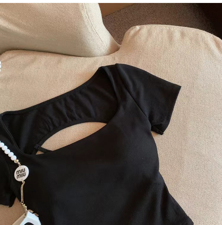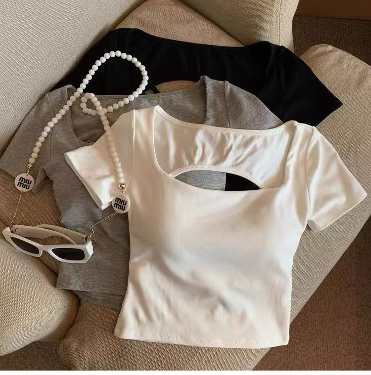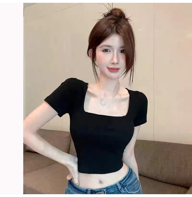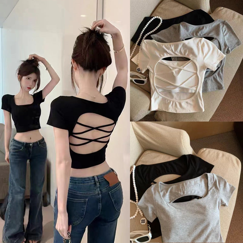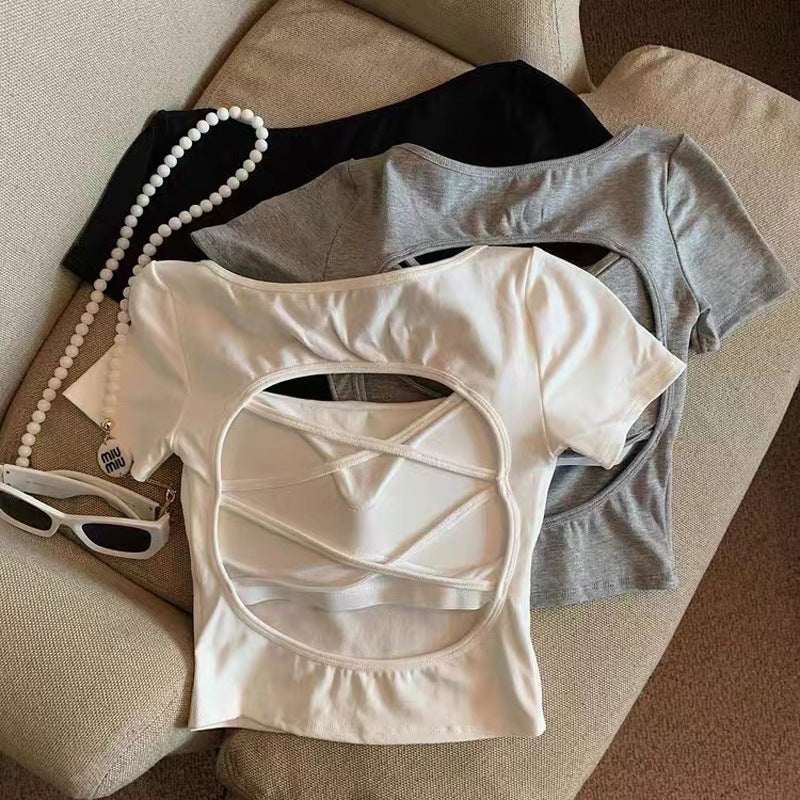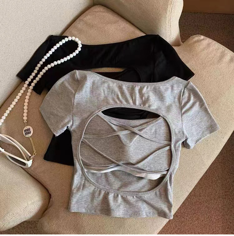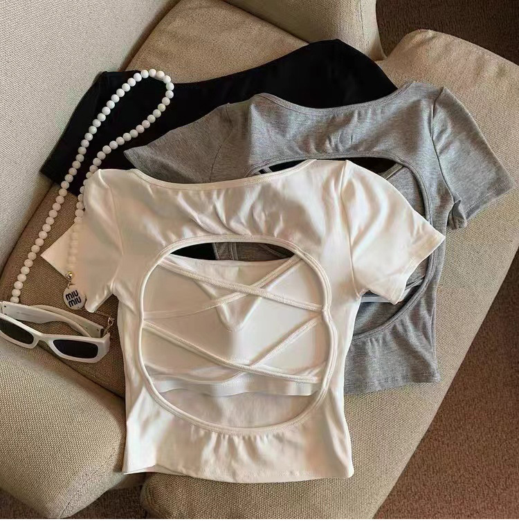 Z24070206時尚性感細帶交叉短袖帶胸墊修身顯瘦短袖女(2件起批)