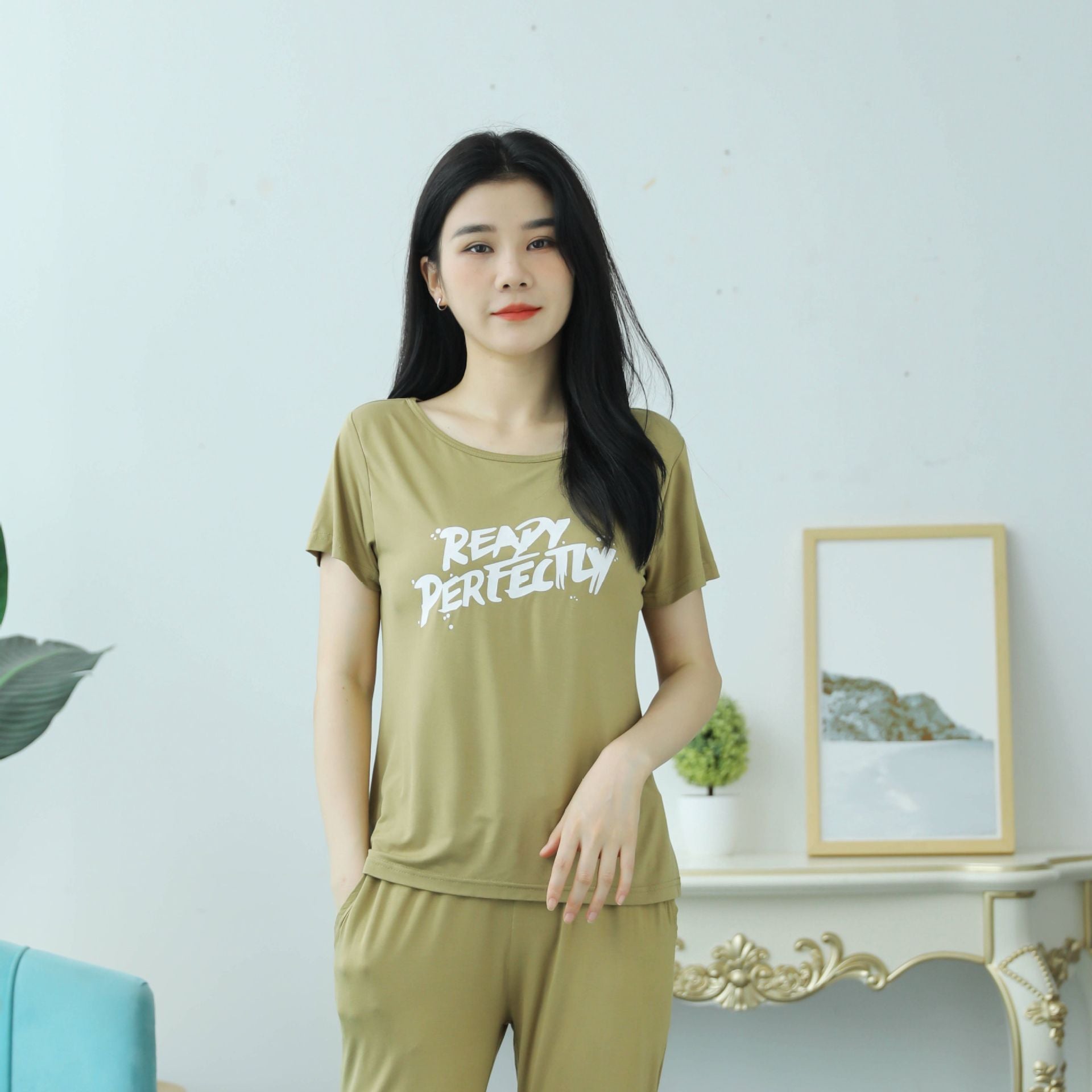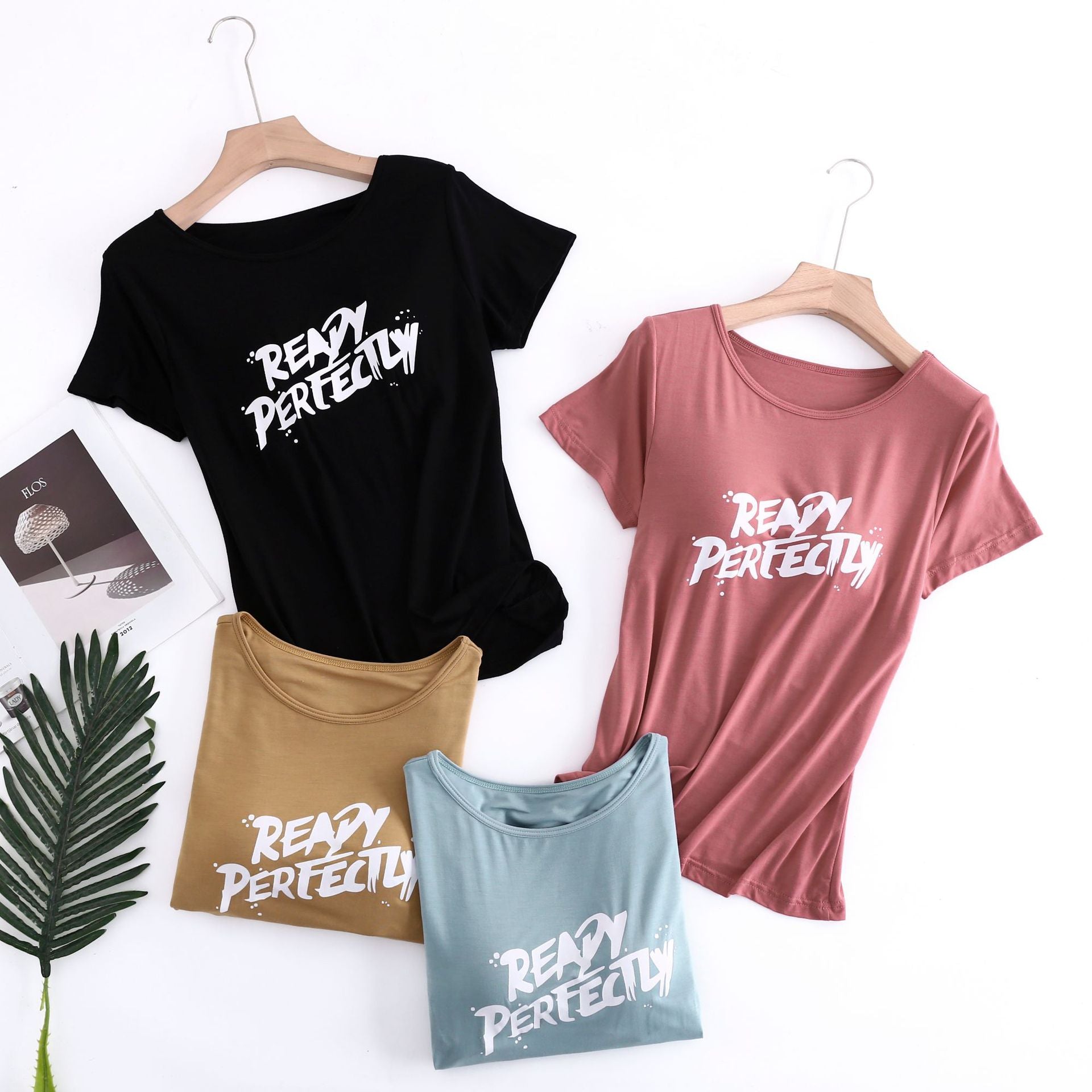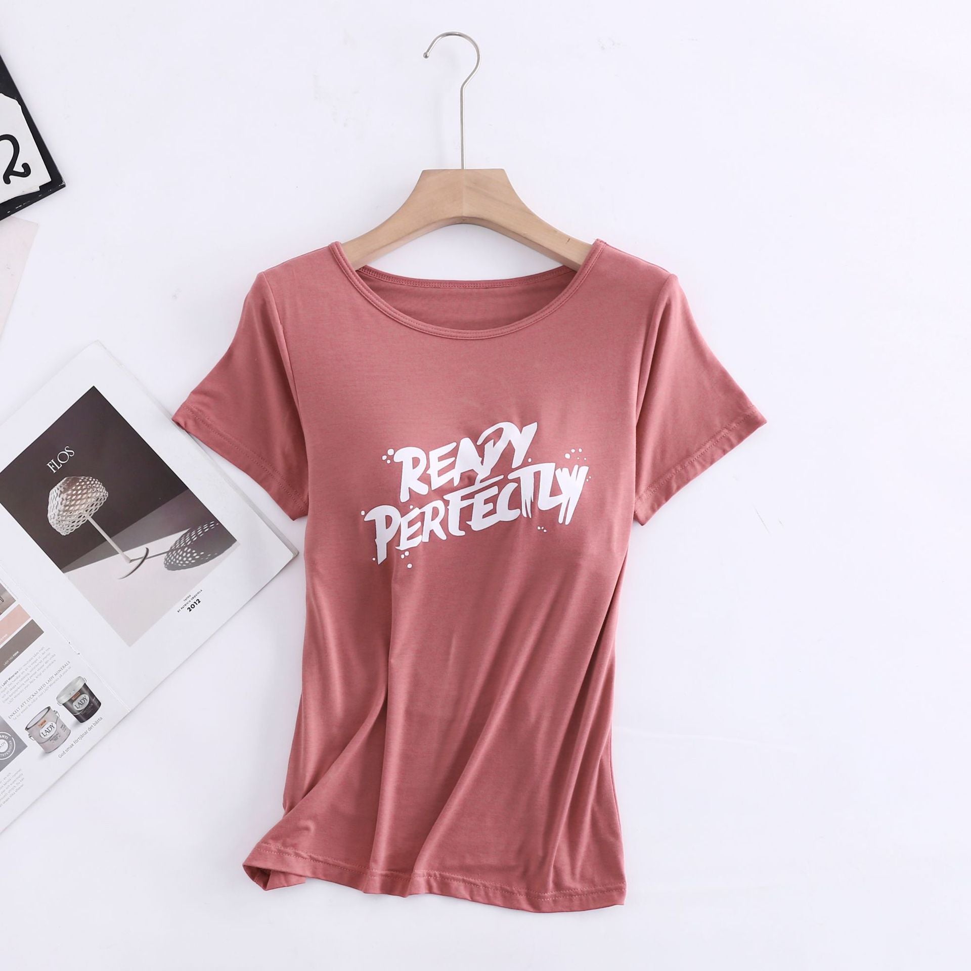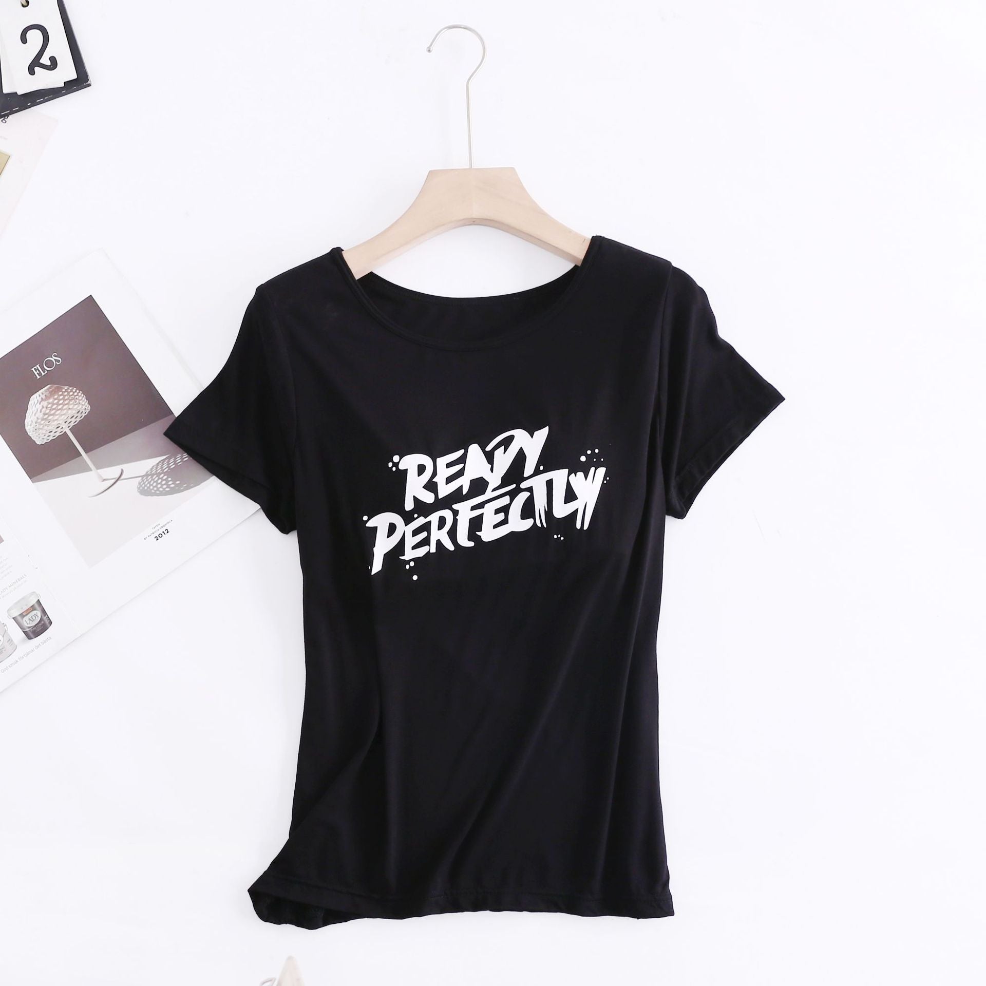 Z24070209莫代爾印花短袖女用胸墊無鋼圈大眾版短袖bra-t罩杯連身式半袖