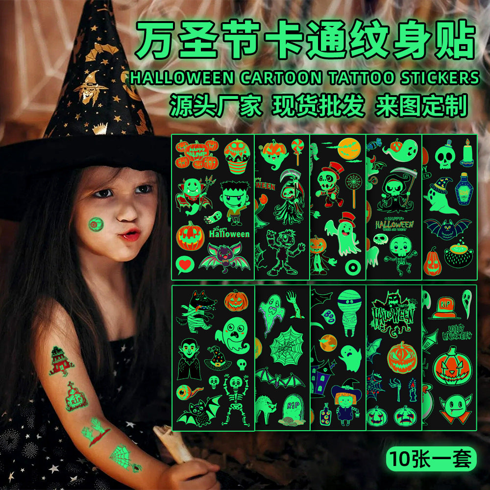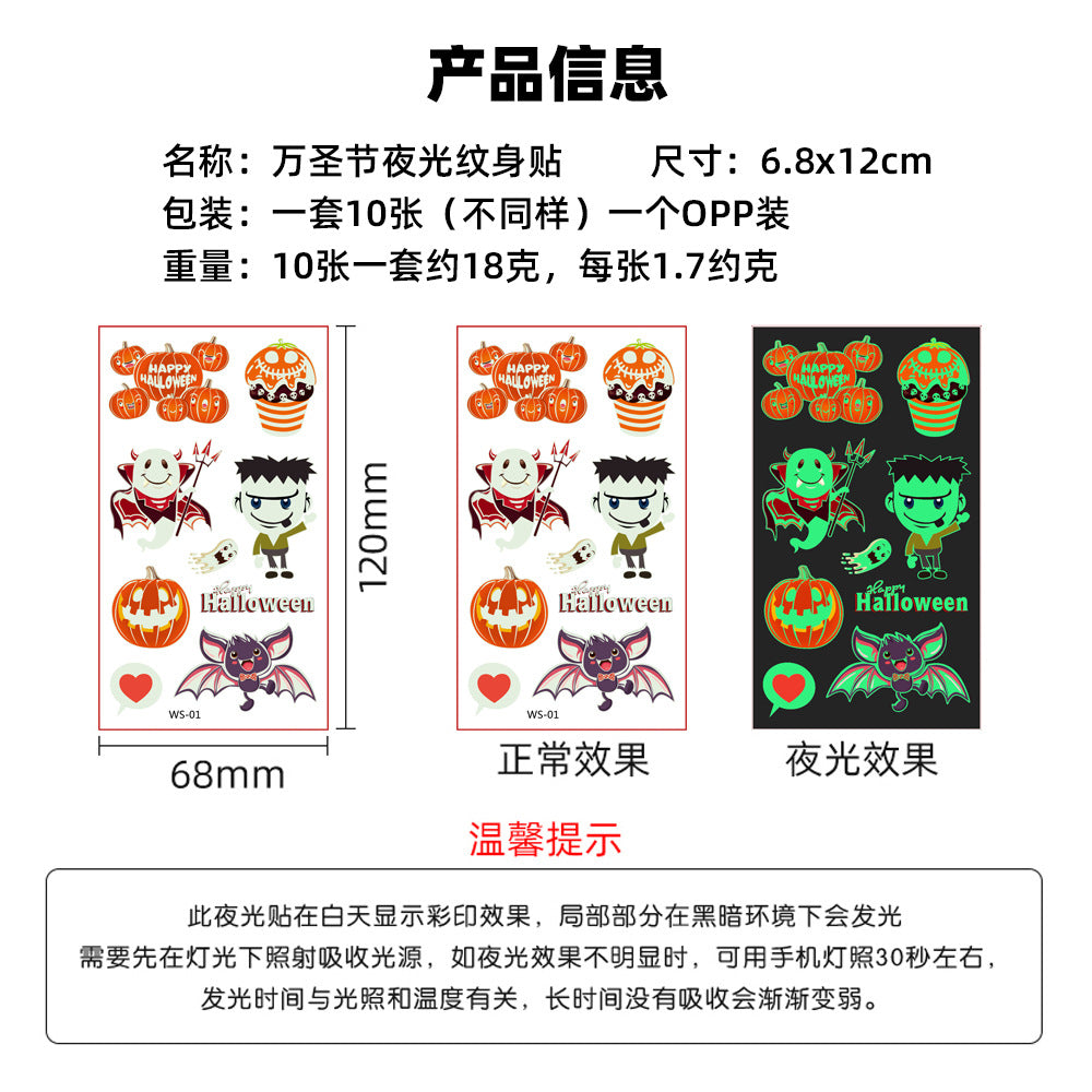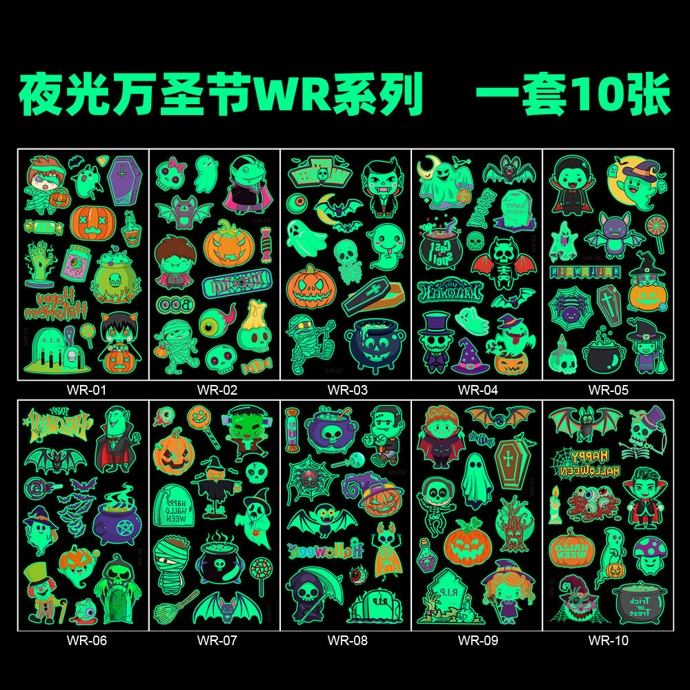 Z24081803創意兒童卡通夜光聖誕貼紙 派對節日活動禮物臨時貼紙(一組10張)