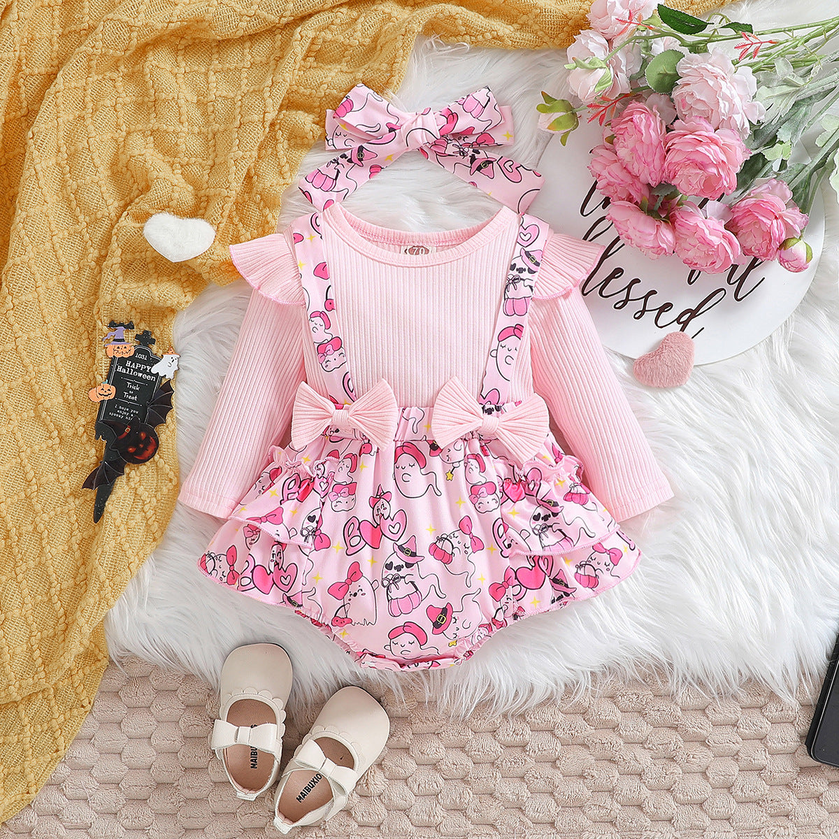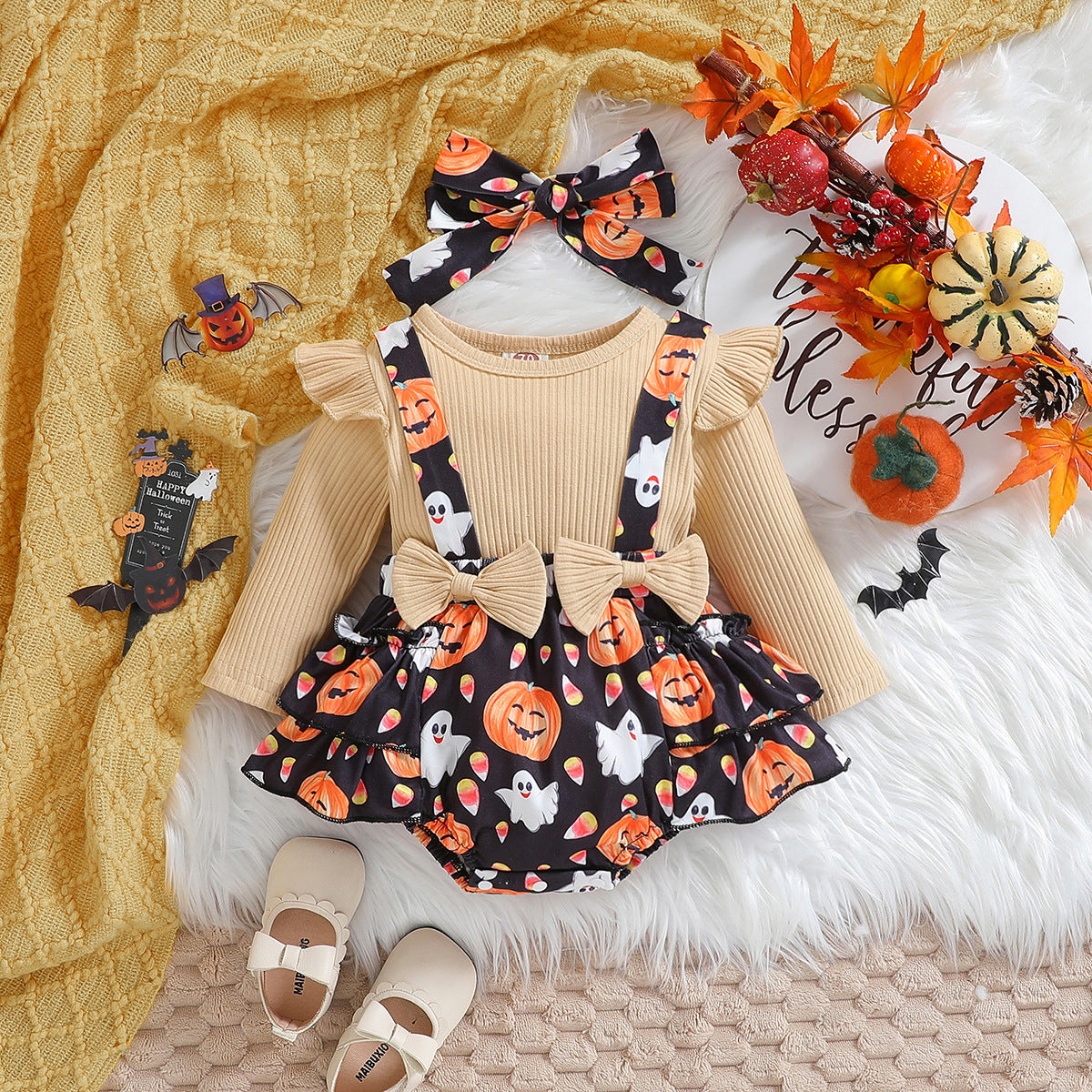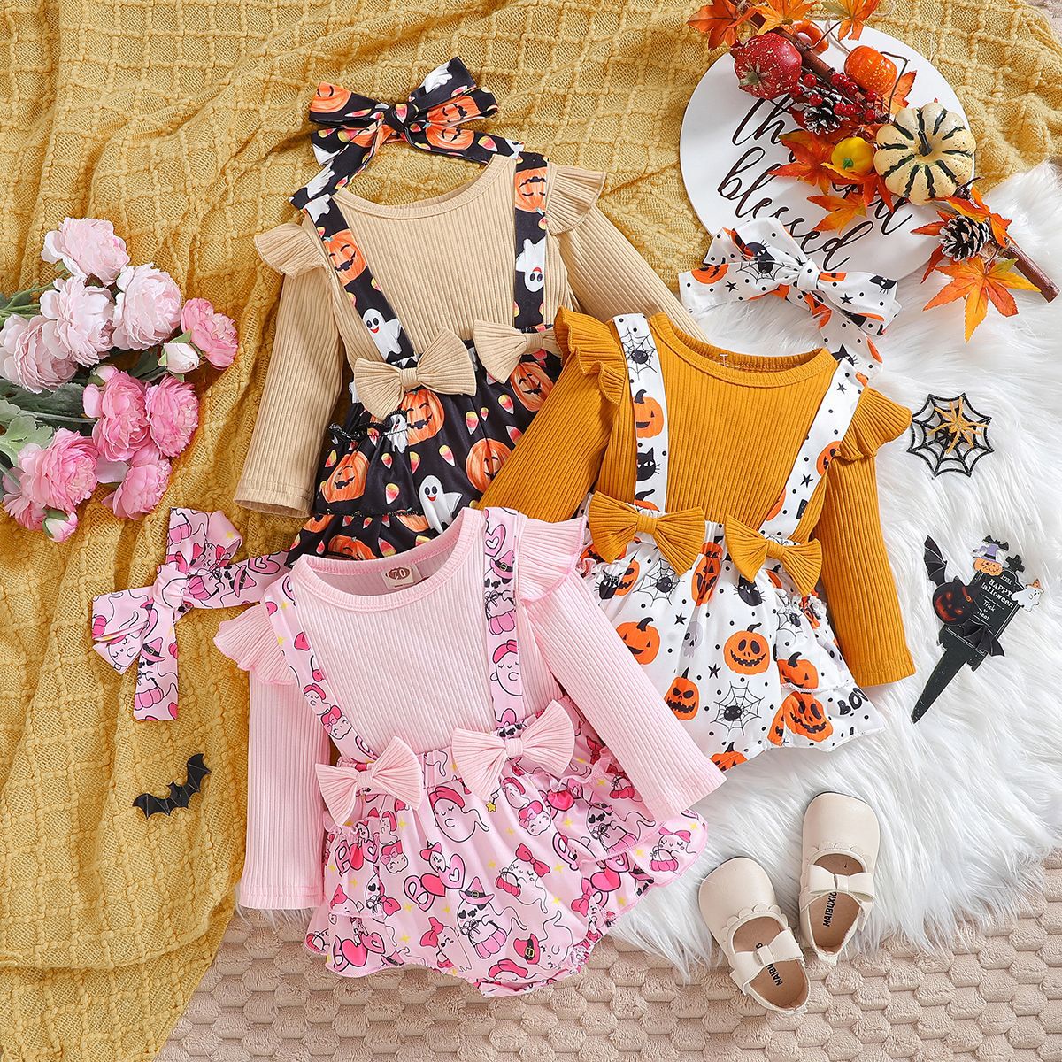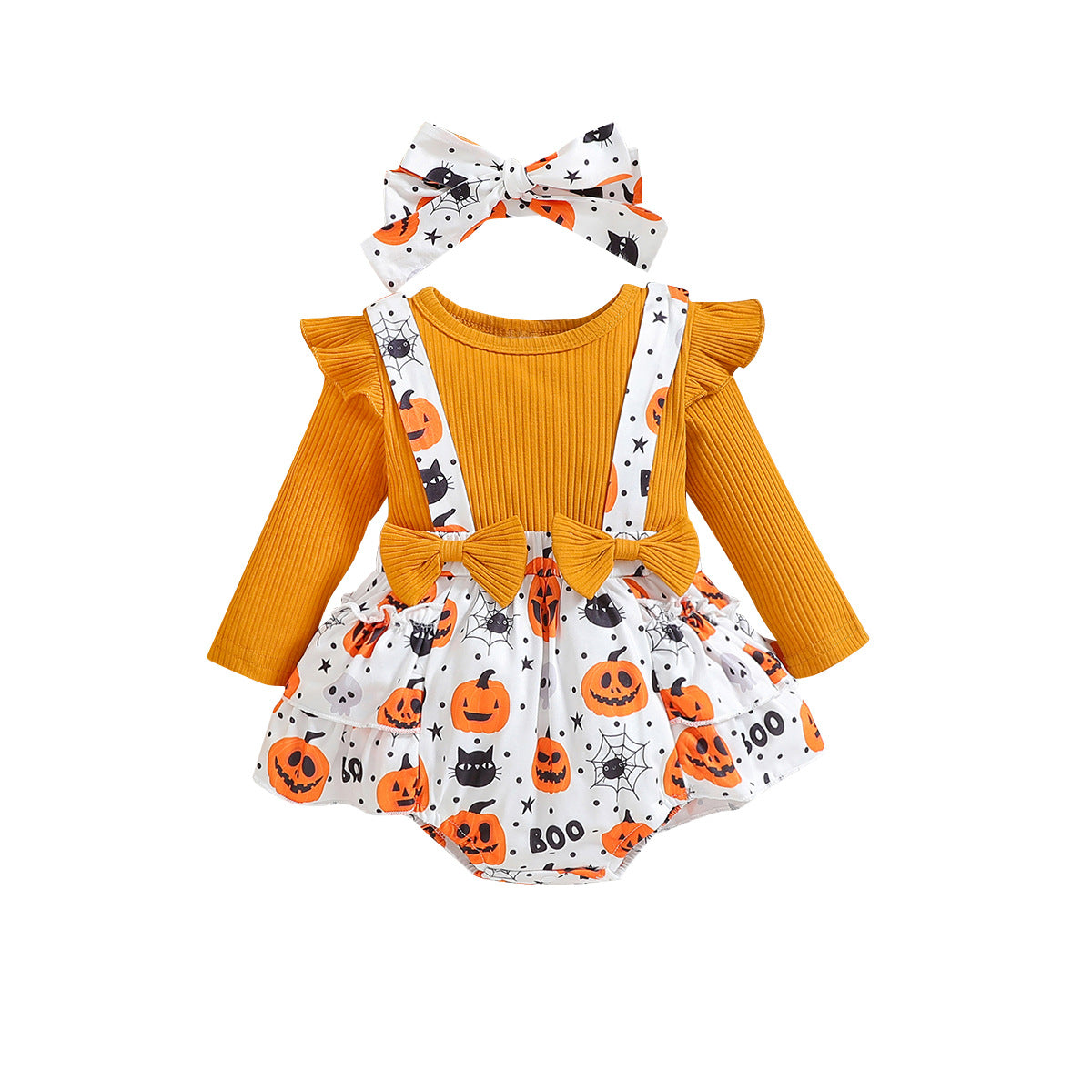 Z24081810跨國童裝萬聖節嬰兒連身衣新款寶寶衣服長袖裙擺哈衣南瓜女孩哈衣