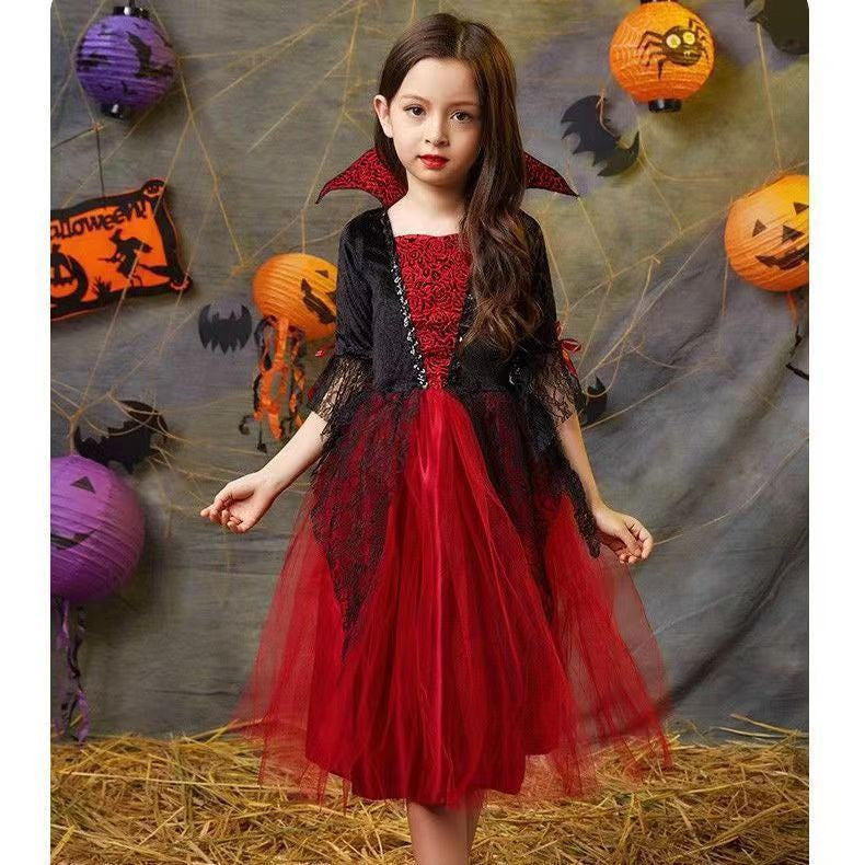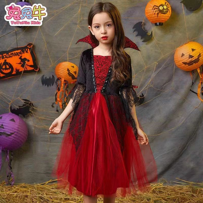 Z24081813兒童萬聖節服裝吸血鬼披風演出服女童公主裙鬼衣服男孩化妝恐怖