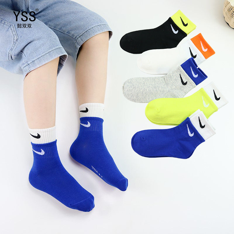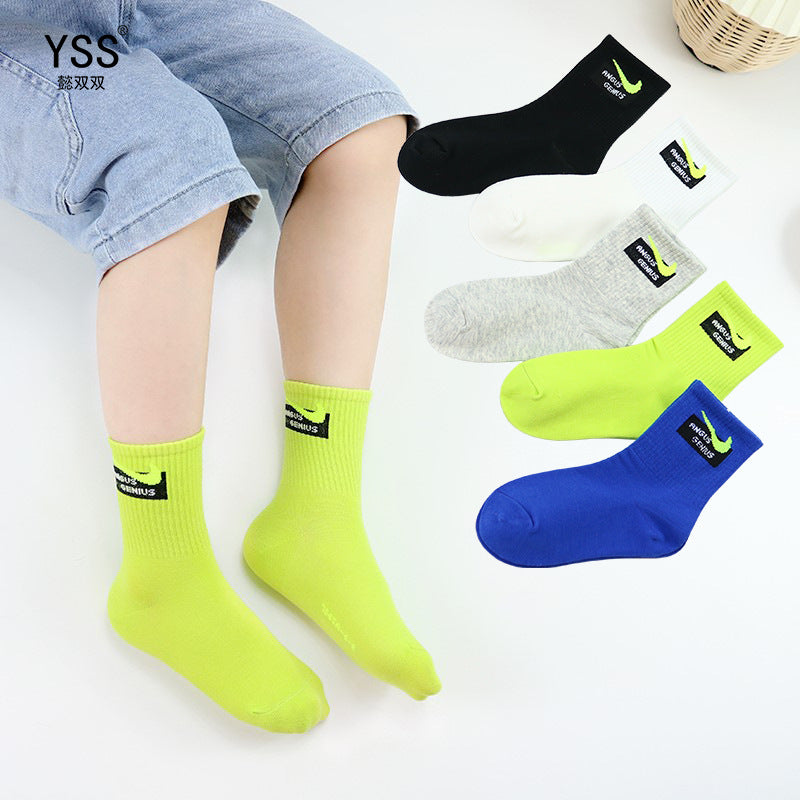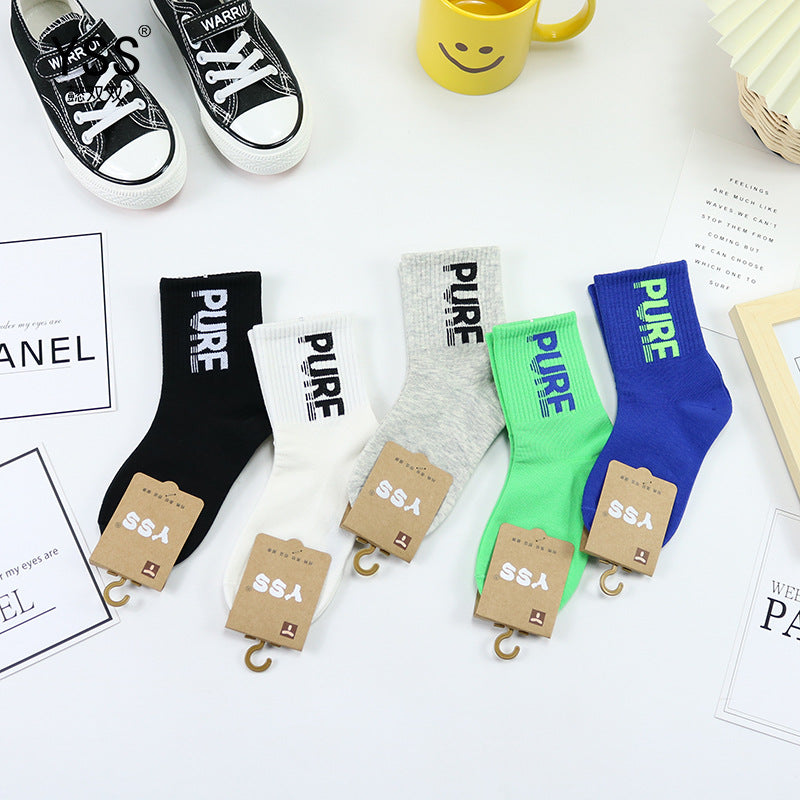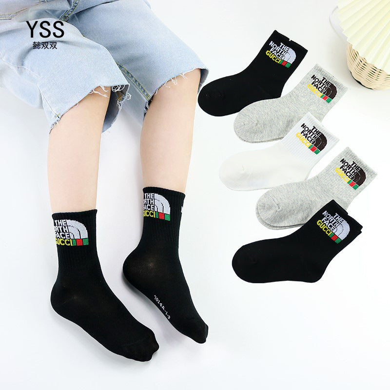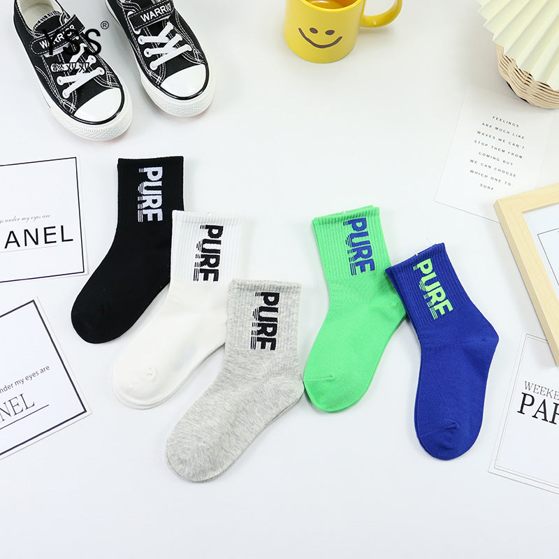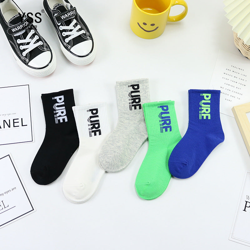 Z24090117兒童襪 秋冬新款韓版字母中筒襪精梳棉潮牌童襪男童運動襪(5雙)