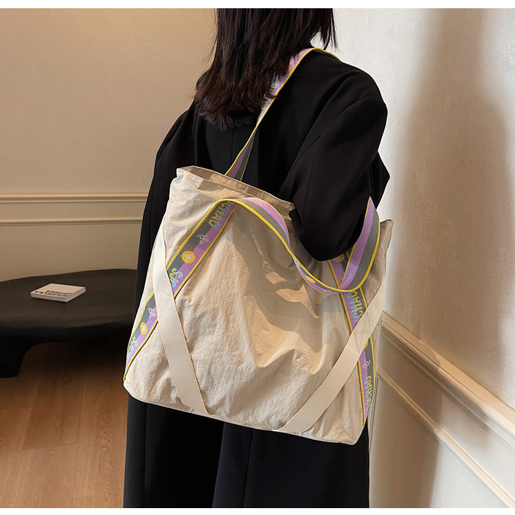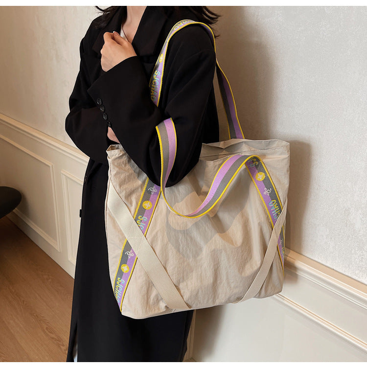 Z24110130帆布包女大容量2024新款秋冬百搭單肩購物袋簡約勤通托特包