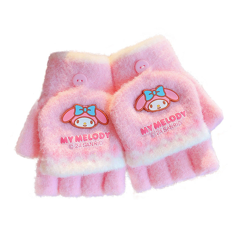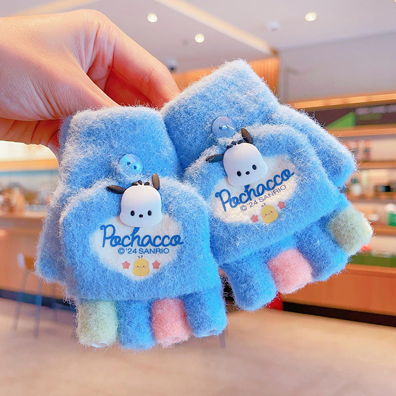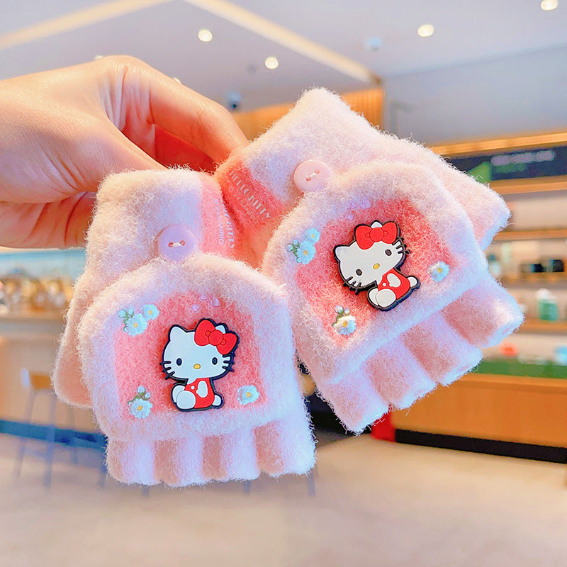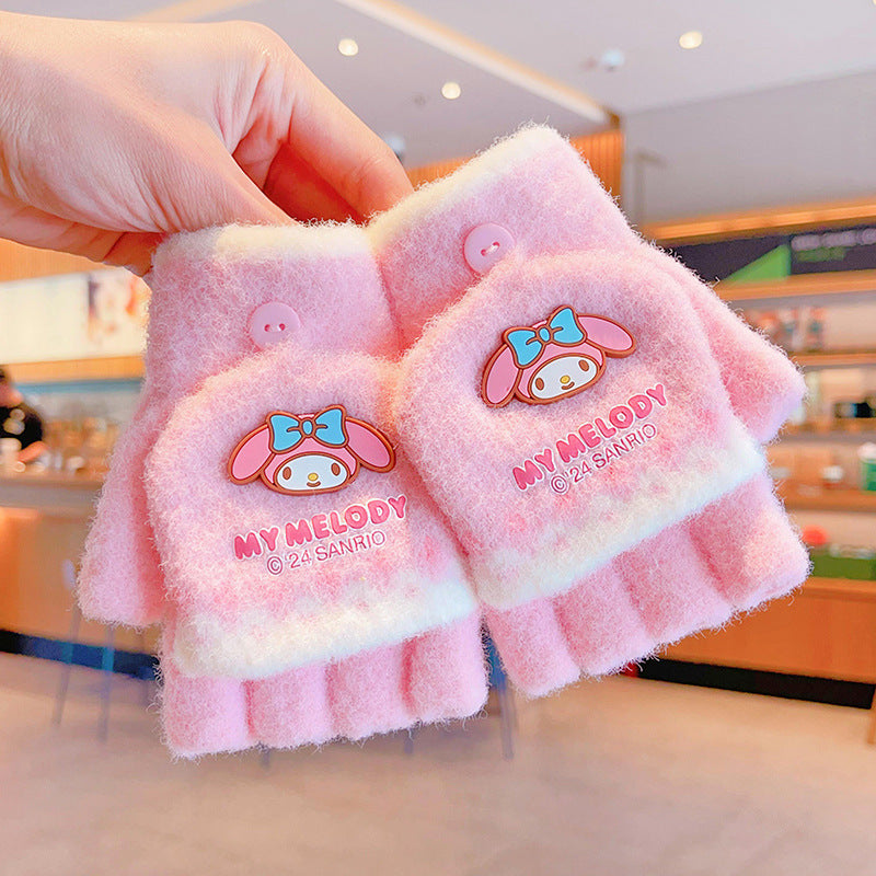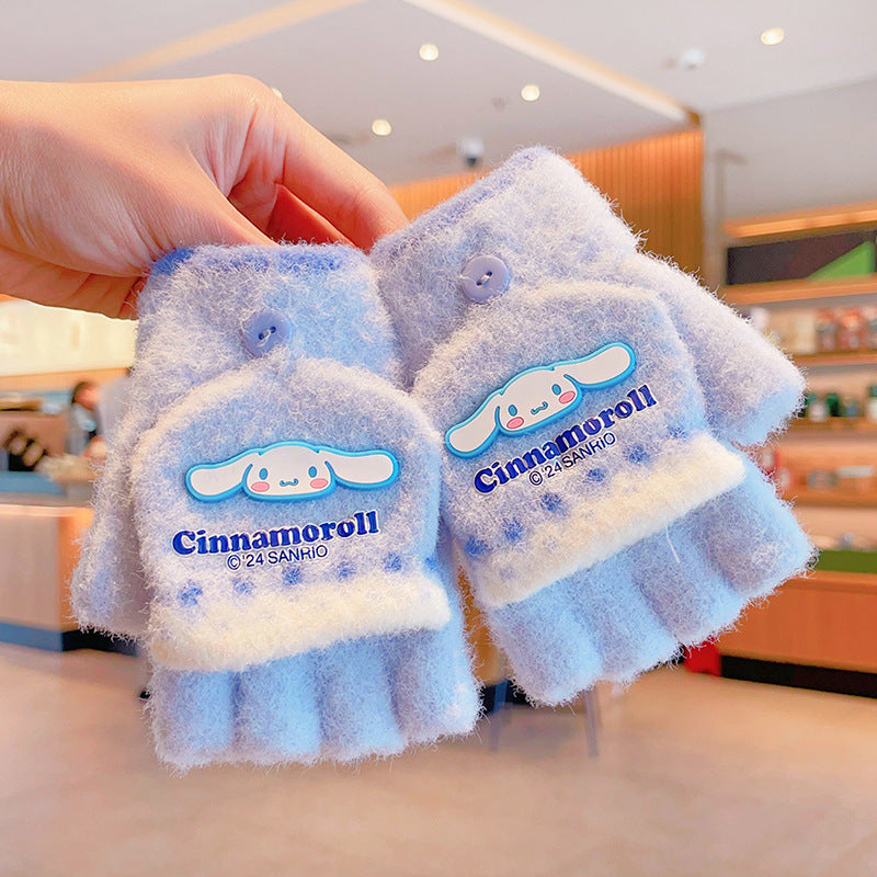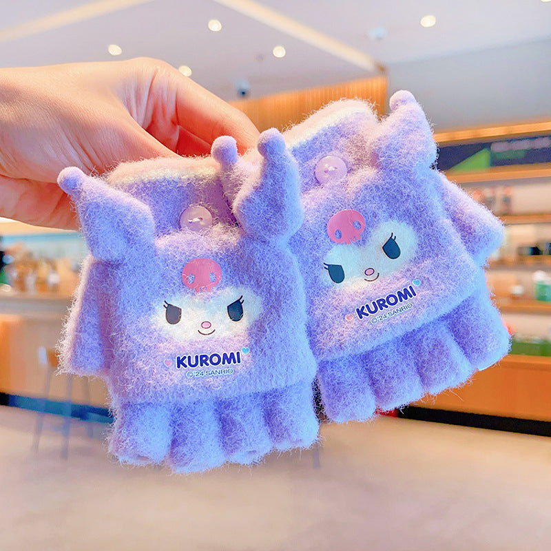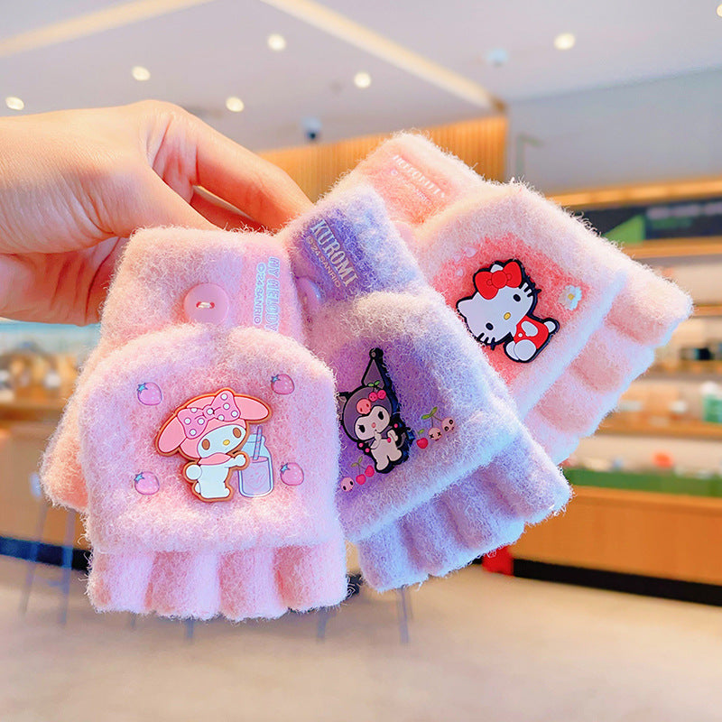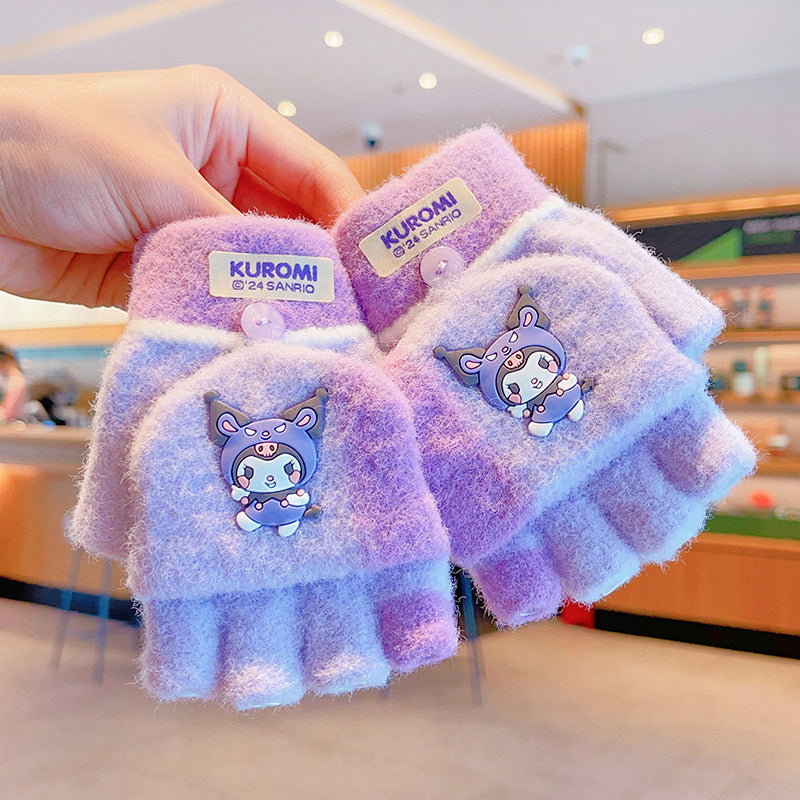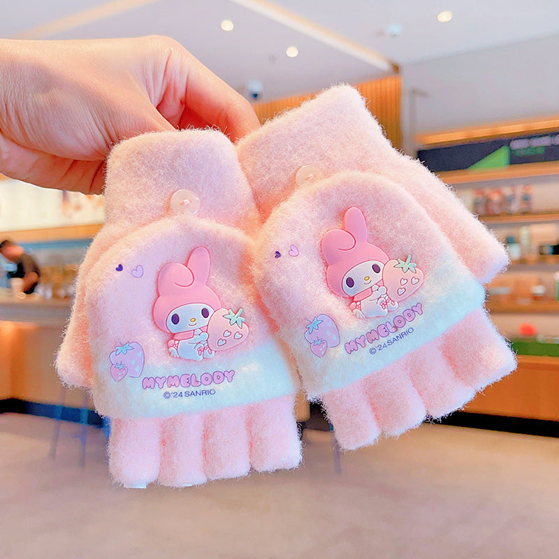 Z24120108庫洛米兒童翻蓋手套秋冬季可愛卡通加絨五指套女童防風保暖連指套