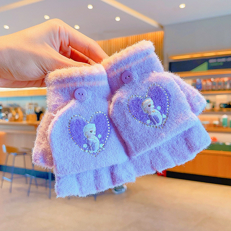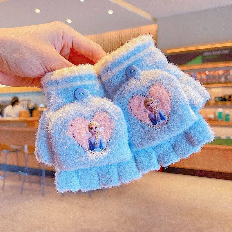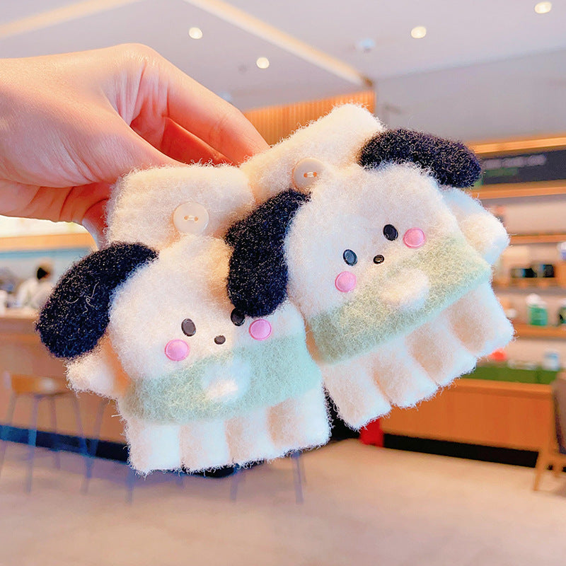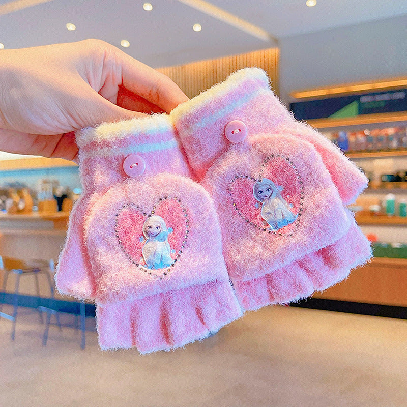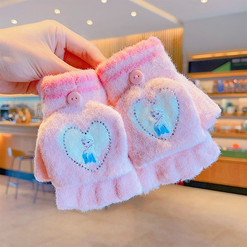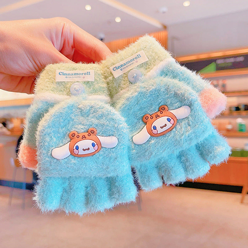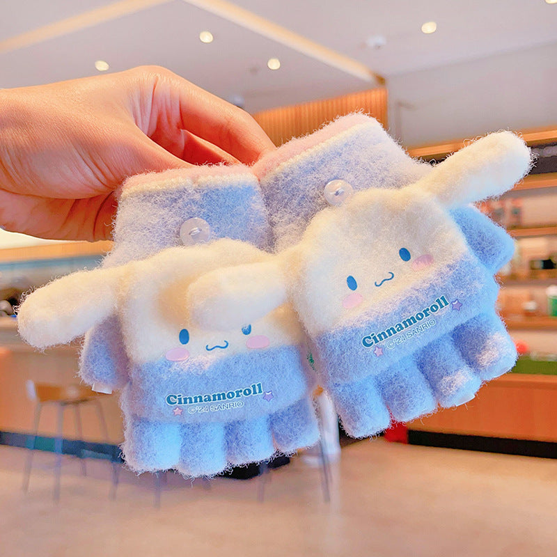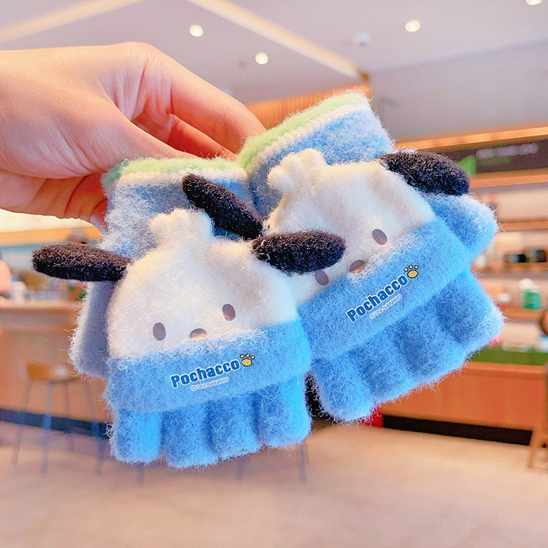 Z24120108庫洛米兒童翻蓋手套秋冬季可愛卡通加絨五指套女童防風保暖連指套