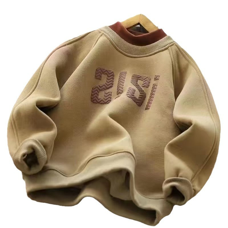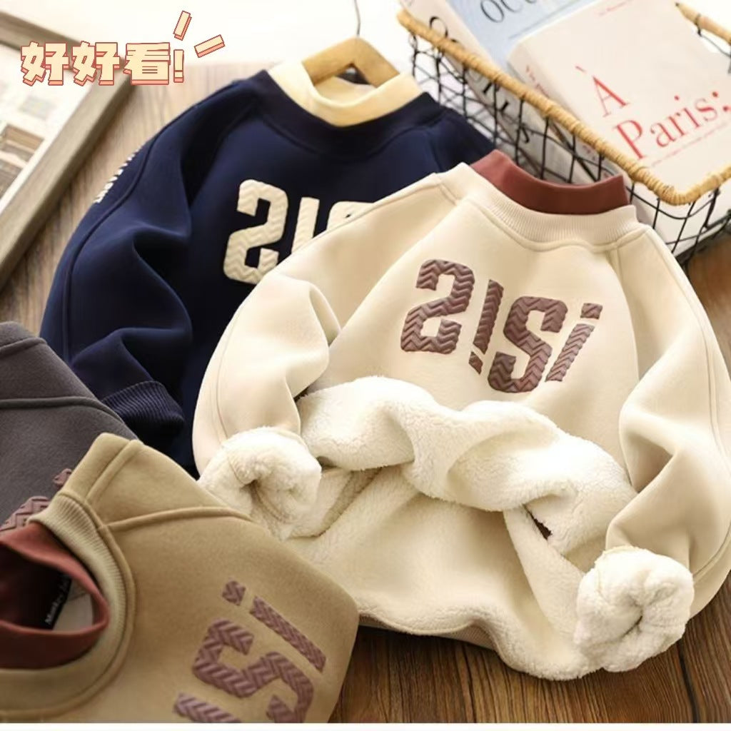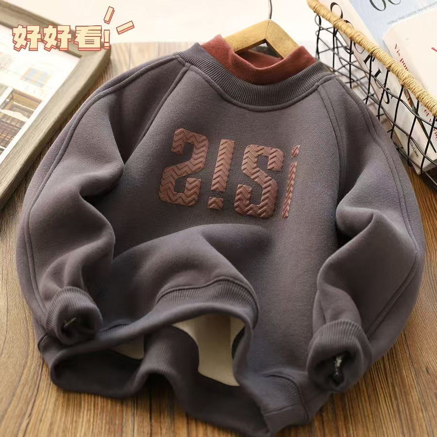 Z25010103冬季時尚中大童一體絨男孩保暖半高領韓版男童加絨衛衣打底衫