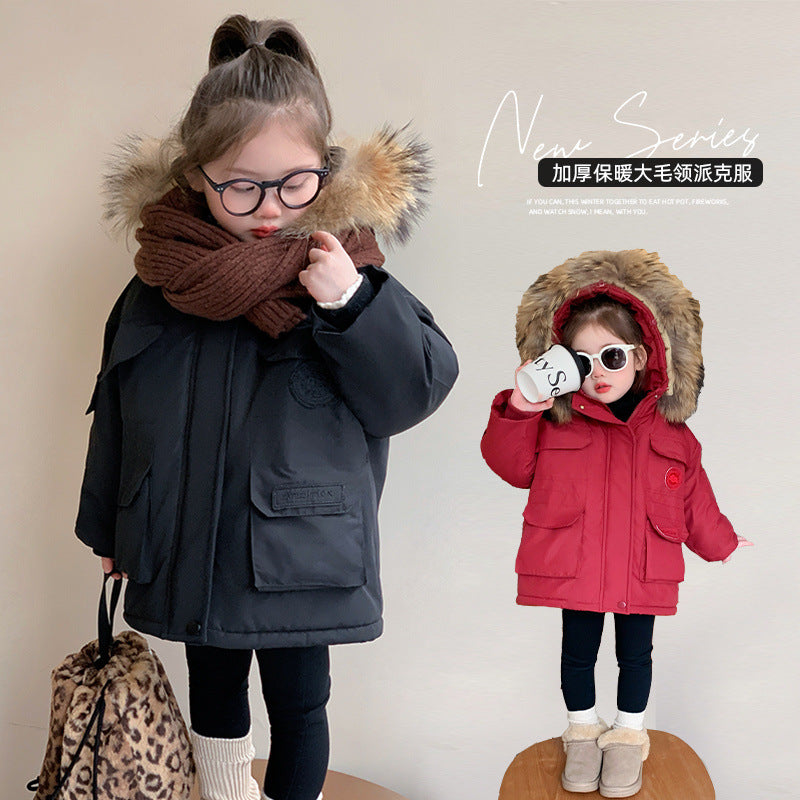 Z25010107兒童冬季棉服2024新款冬裝棉衣女童洋氣加厚加絨保暖派哥倫比亞潮