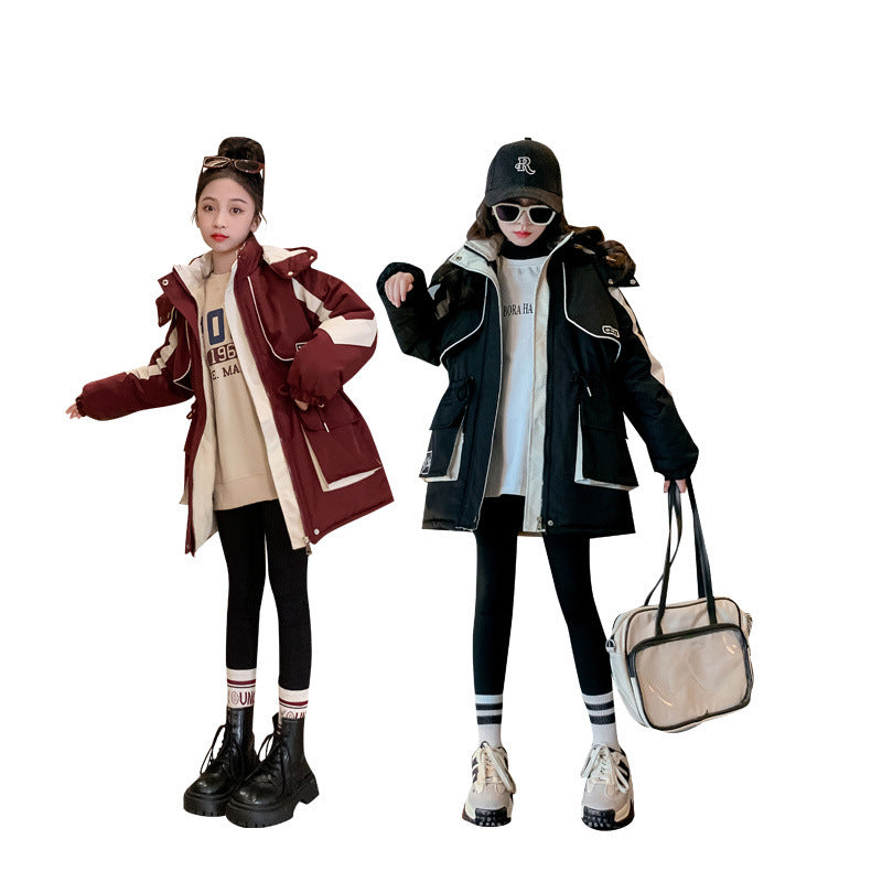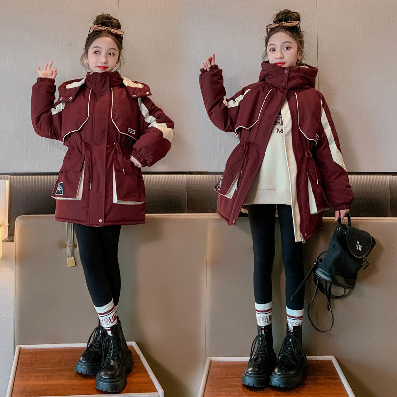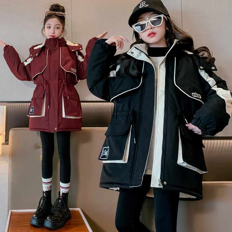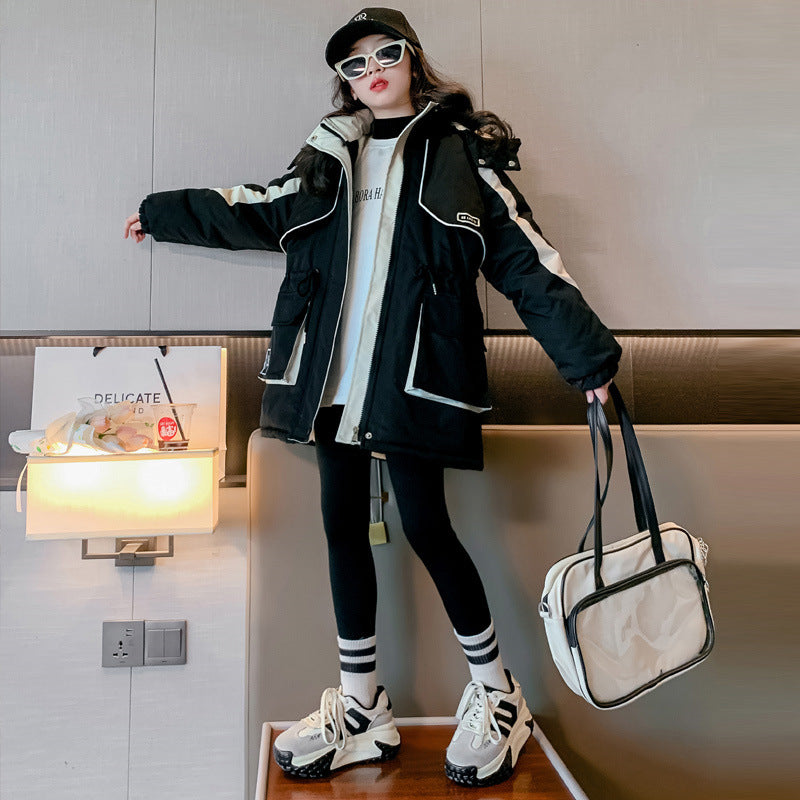 Z25010108女童4新款加厚大童派克服秋冬女童棉服衝鋒衣兒童棉衣