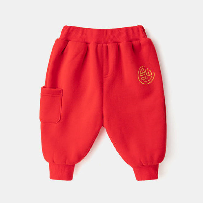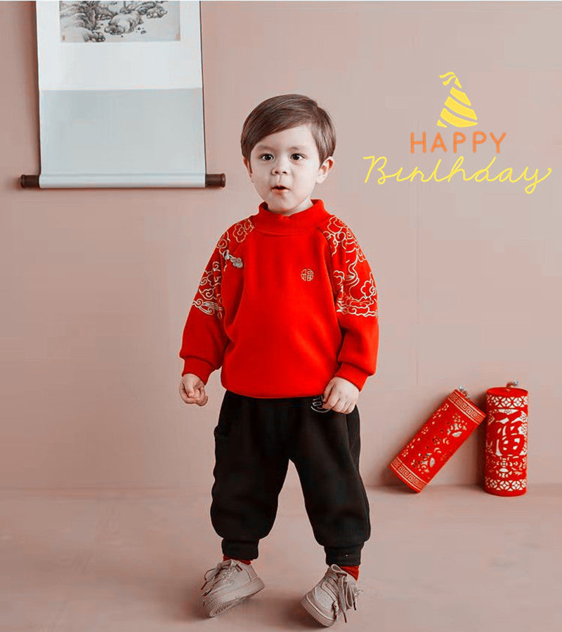 Z25010110寶寶衛衣加絨兒童冬季新年上衣女童紅色喜慶過年服嬰兒加厚上衣潮