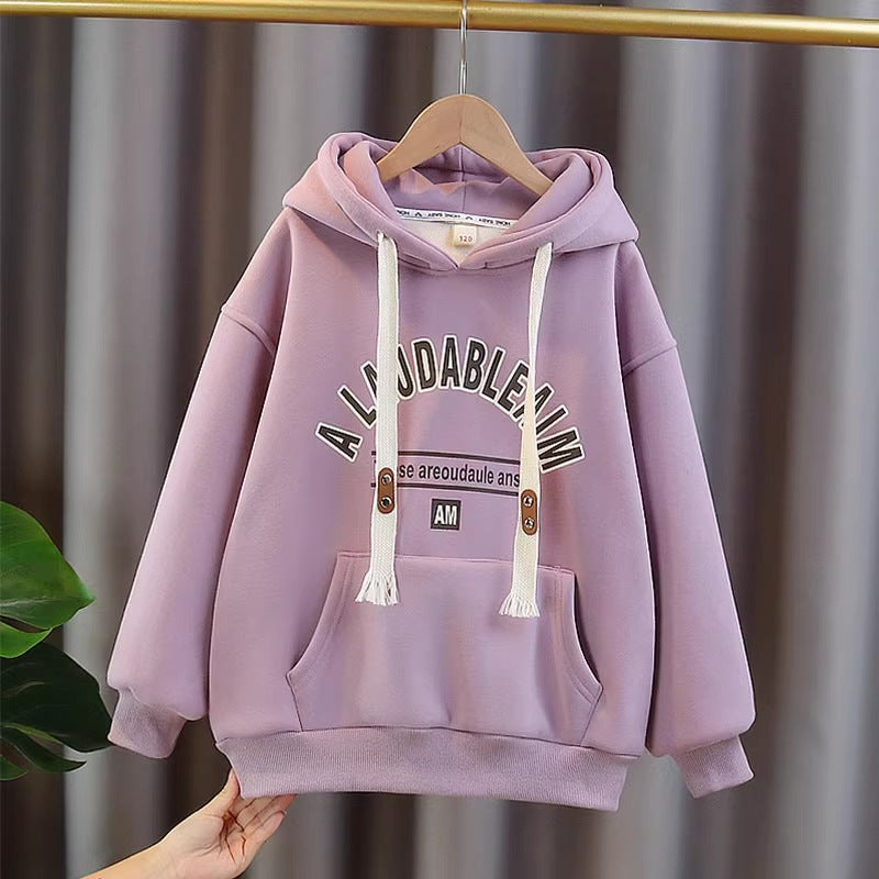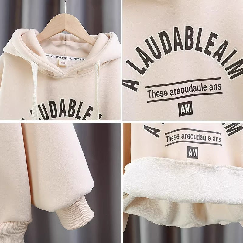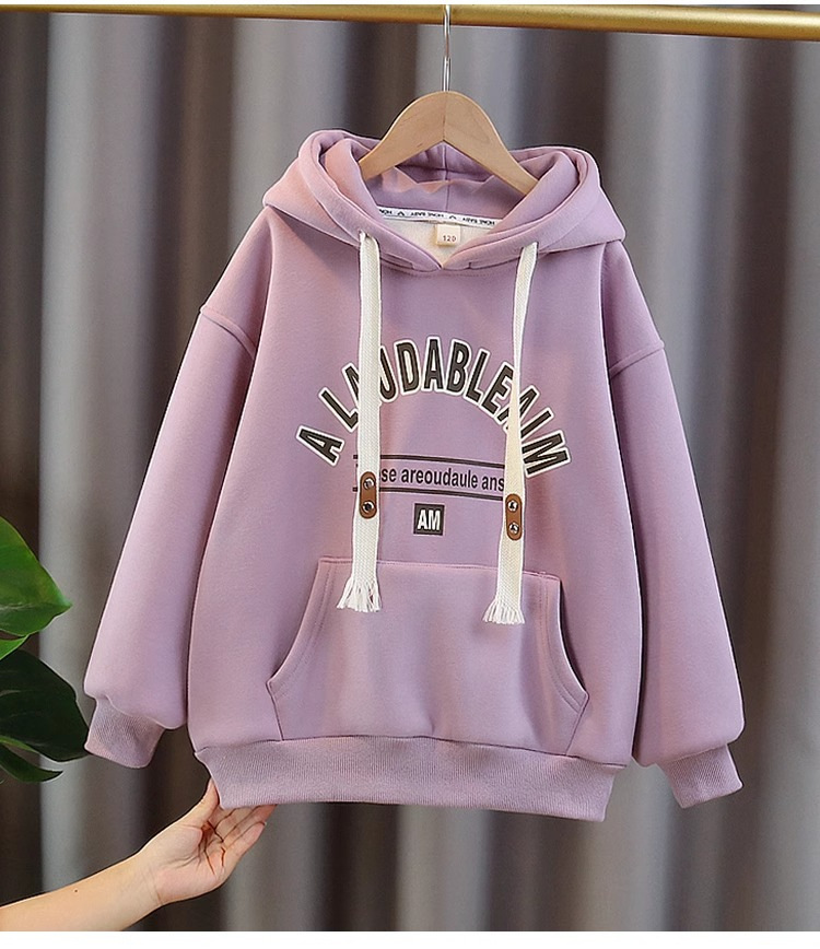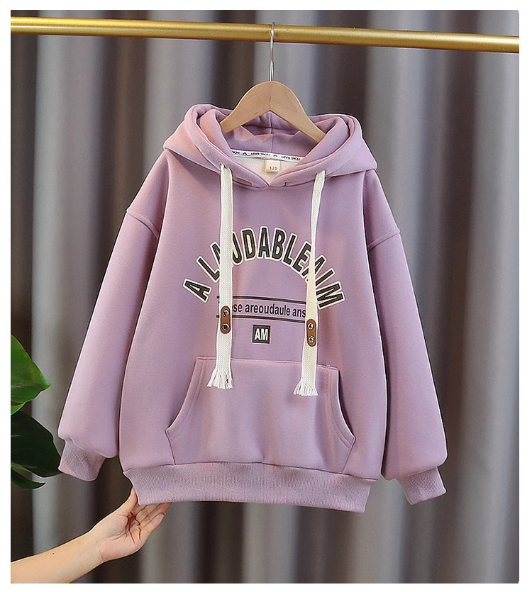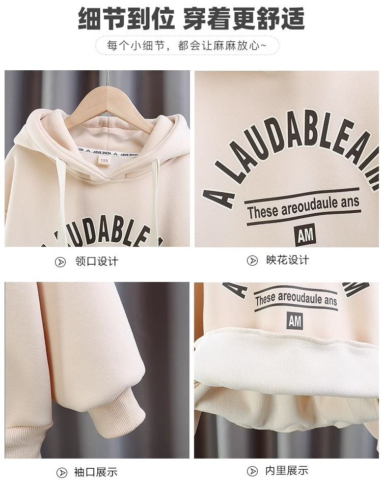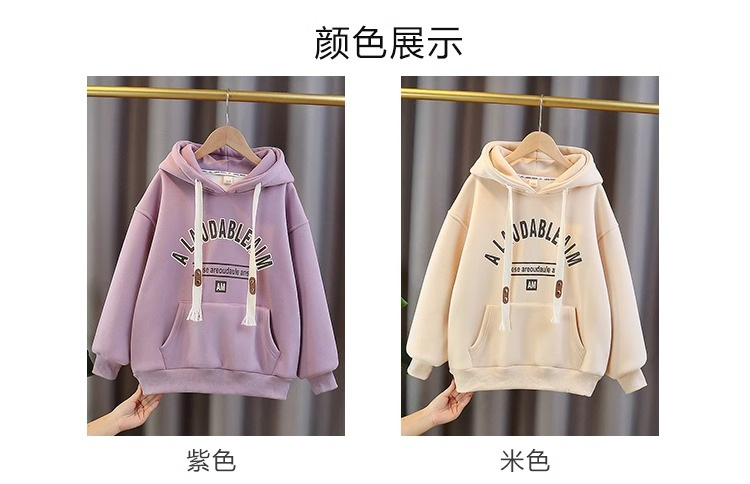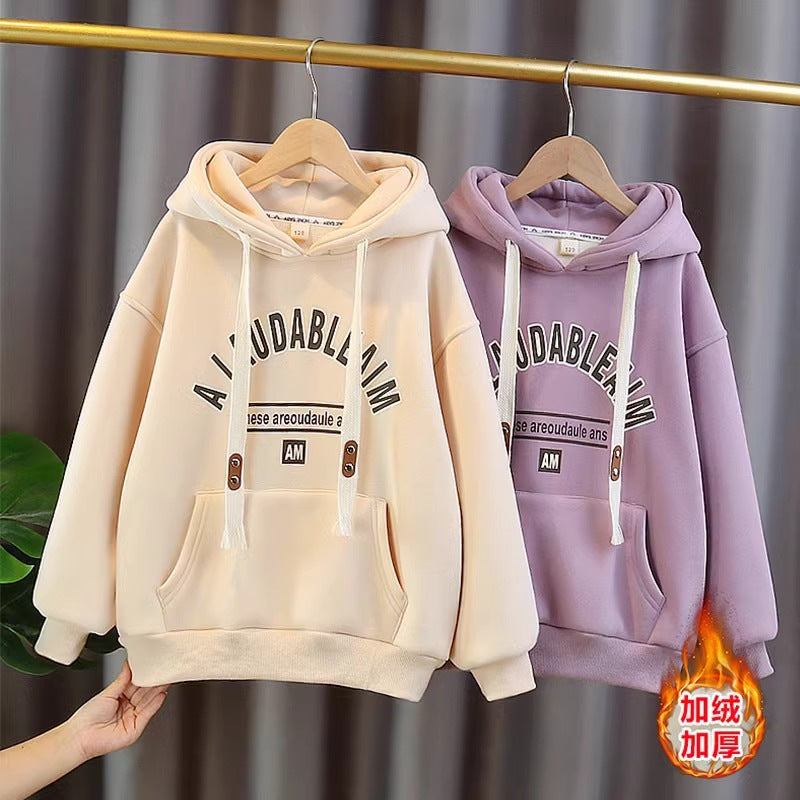 Z25010132衛衣秋冬新款2024女童加絨連帽中大童女孩保暖一體絨時尚裙上衣