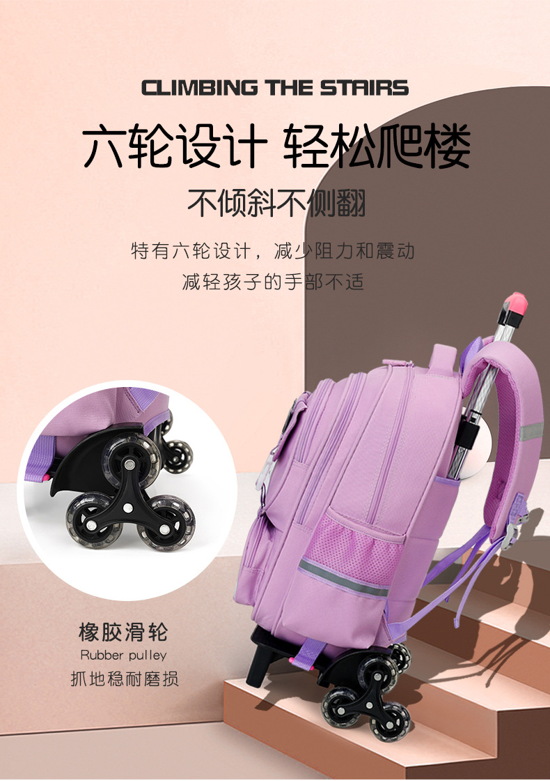 Z25022303兒童拉桿書包女生小學生一二三到六年級防水爬樓女童拉桿式大容量