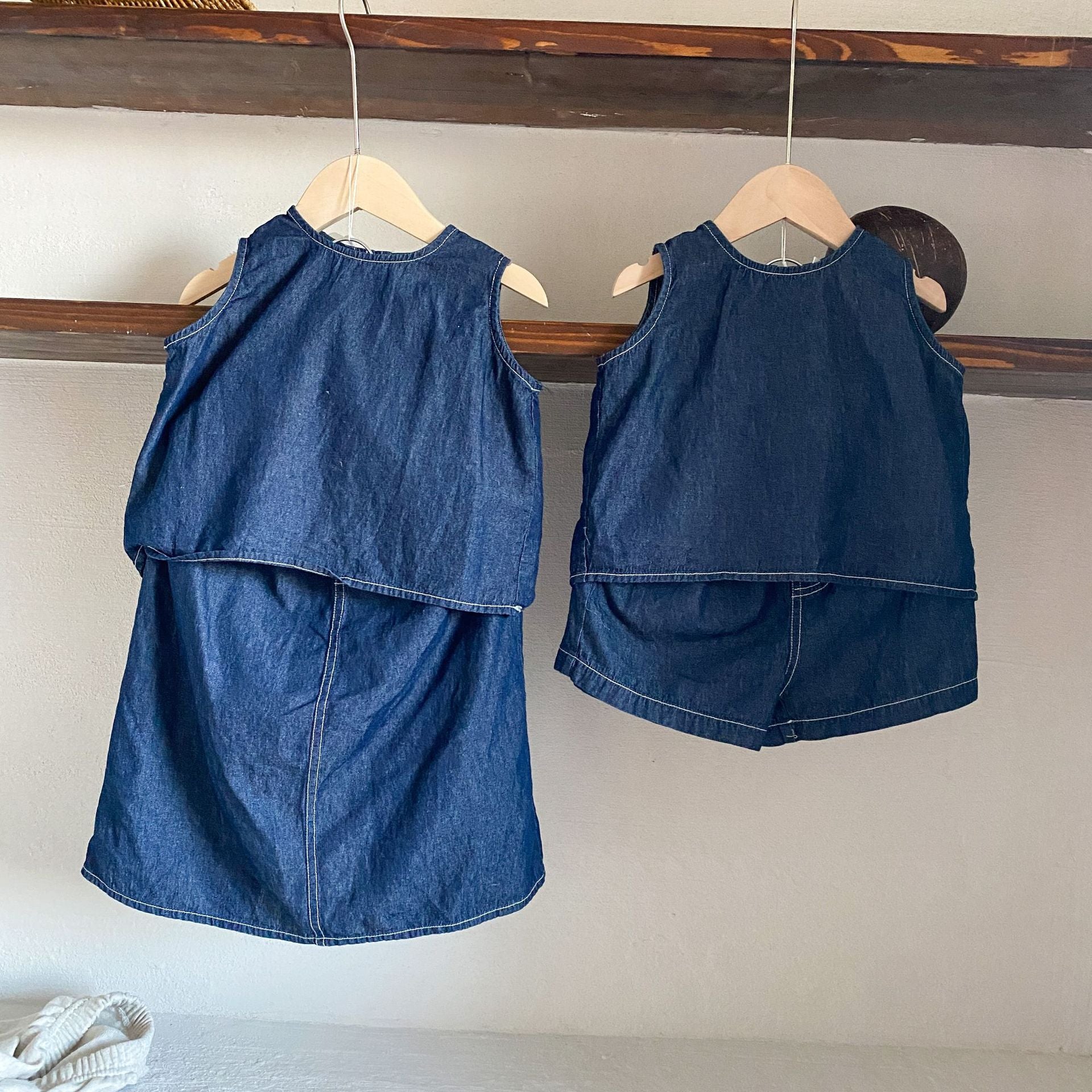Z25020904兒童夏季牛仔套裝男童-新款休閒寶寶背心女童姐弟妹夏裝
