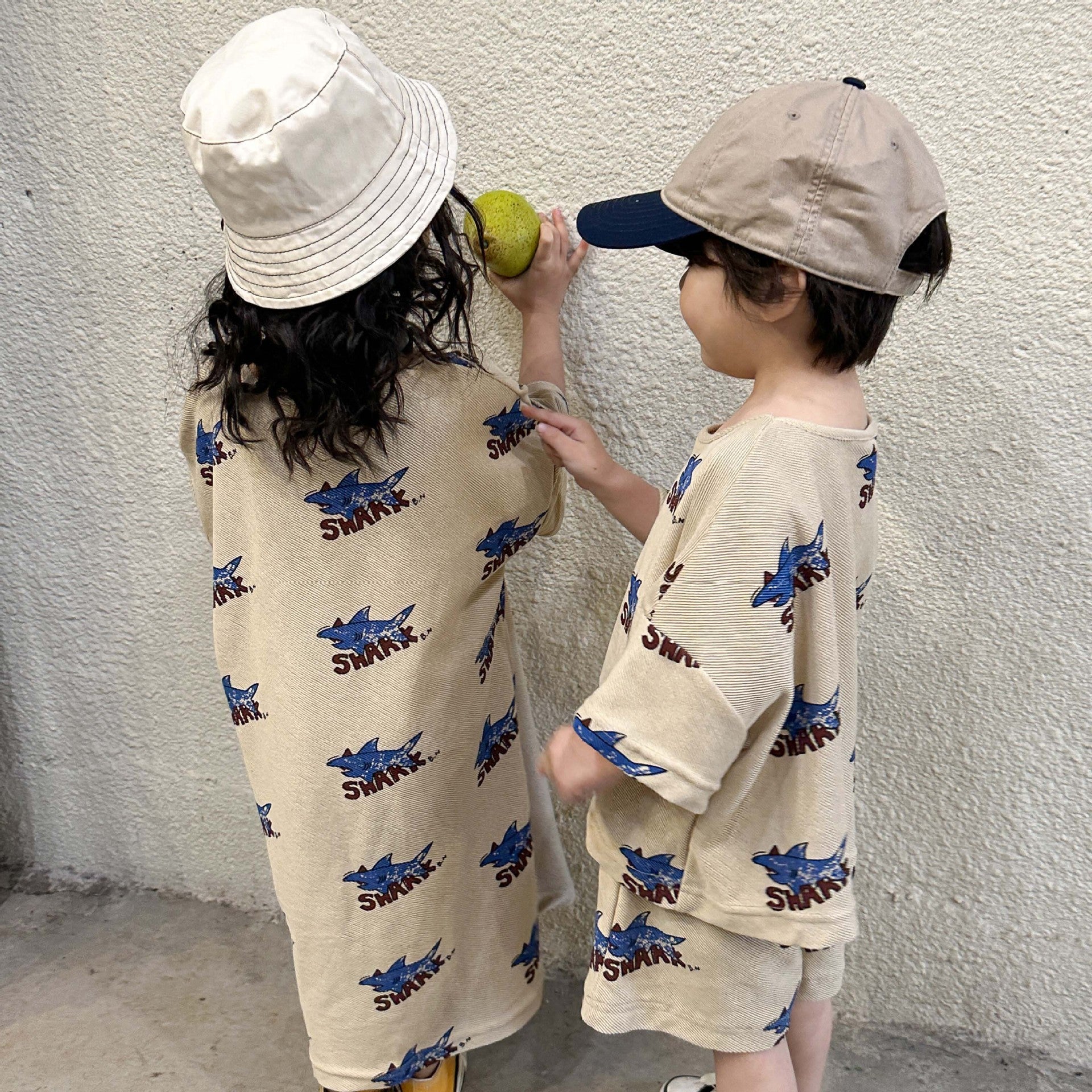 Z25020920兒童夏季套裝男童2025新寶寶短袖夏裝洋氣女童連身裙姐弟兄妹裝