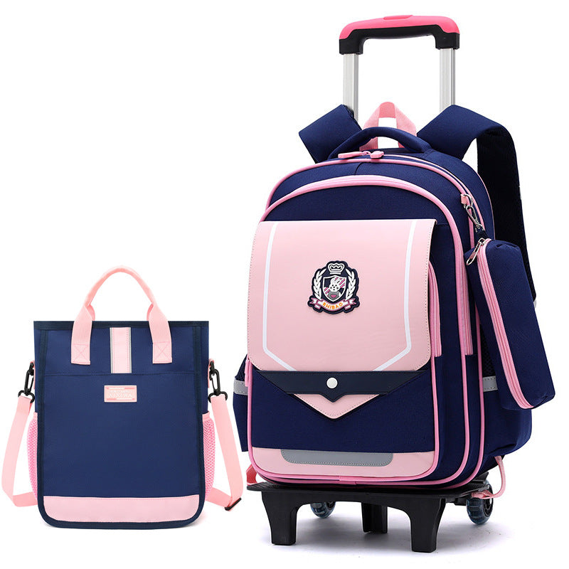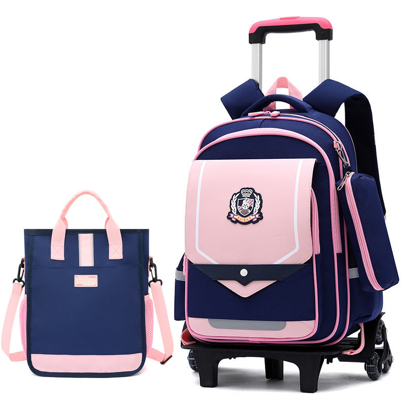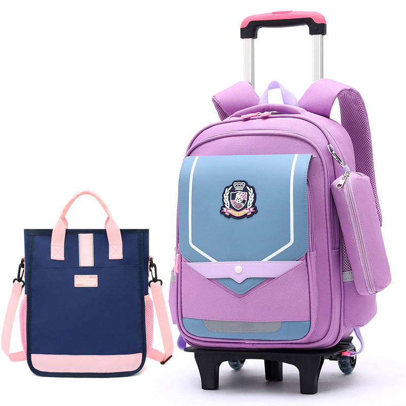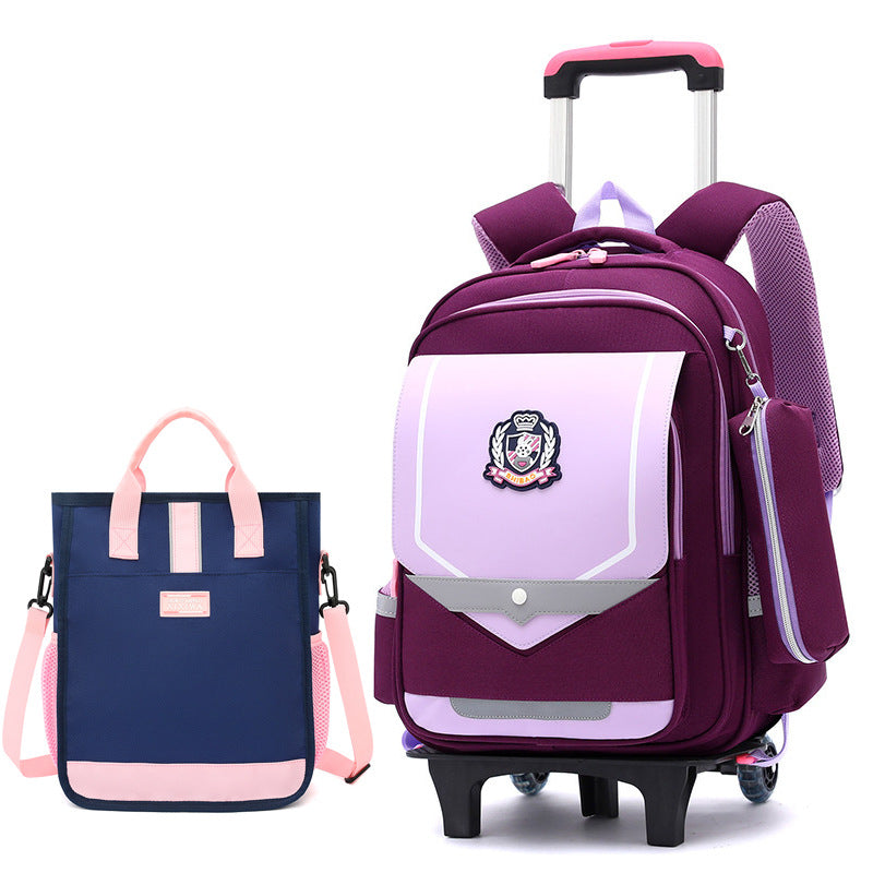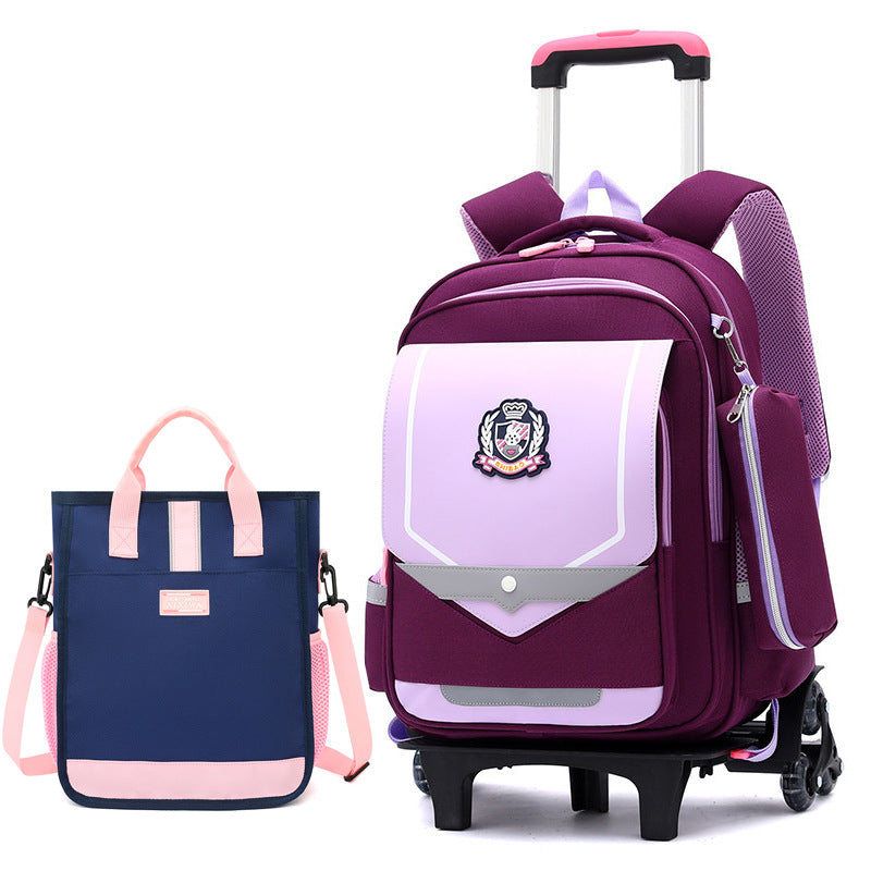 Z25022311兒童拉桿書包小學生防水女男拉桿式拖拉爬樓一二三到六年級大容量