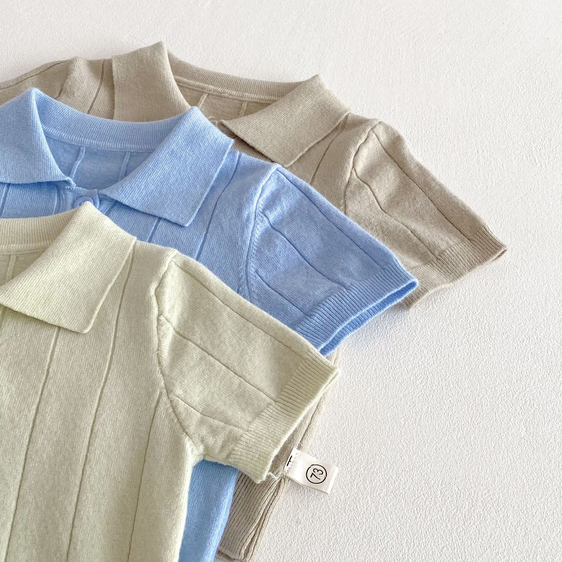 Z25022327 ins韓版春夏款嬰幼兒寶寶針織衫薄款夏日上衣翻領兒童套頭衫