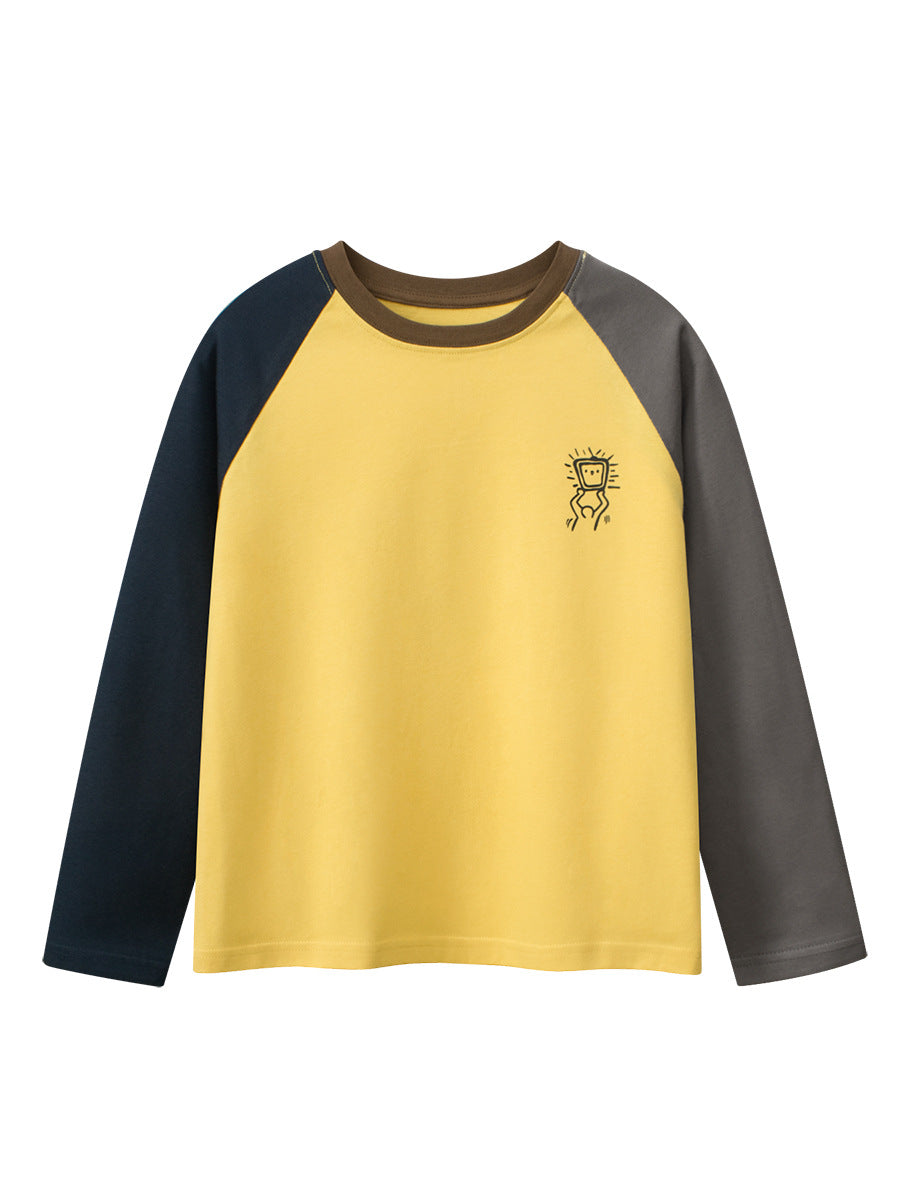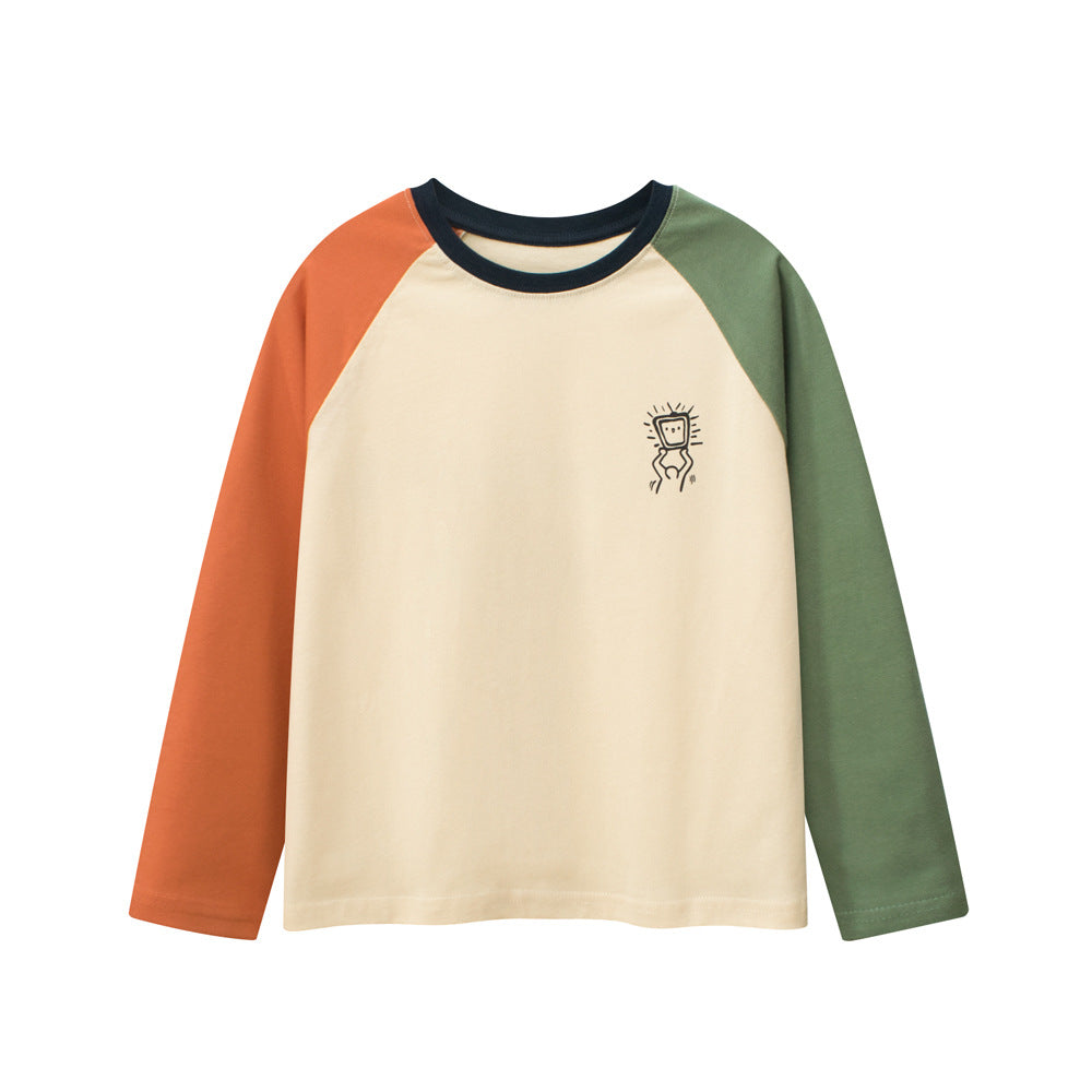 Z25030401春裝新款兒童韓版長袖T恤批發 中大童拼袖卡通打底衫跨國童裝